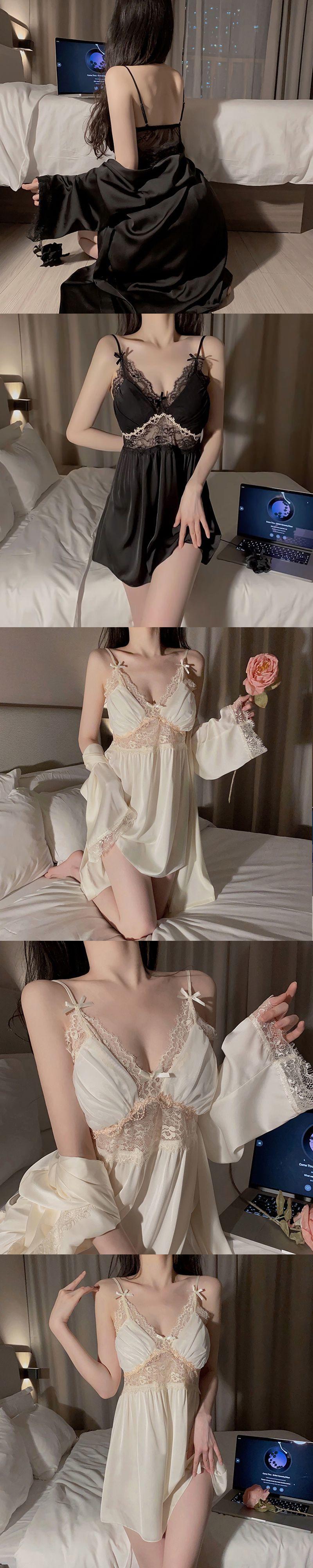 Pijama sexy de primavera y verano con almohadilla para el pecho y tirantes franceses, camisón de encaje para mujer.