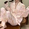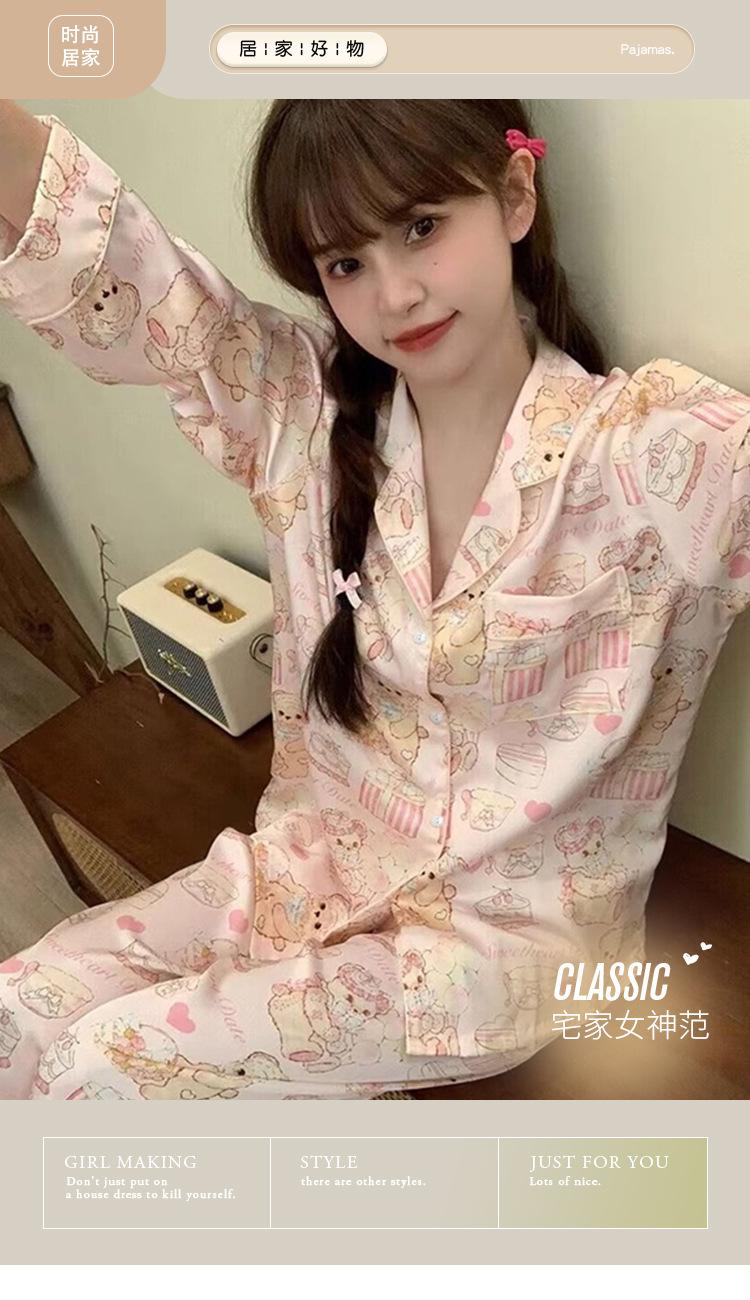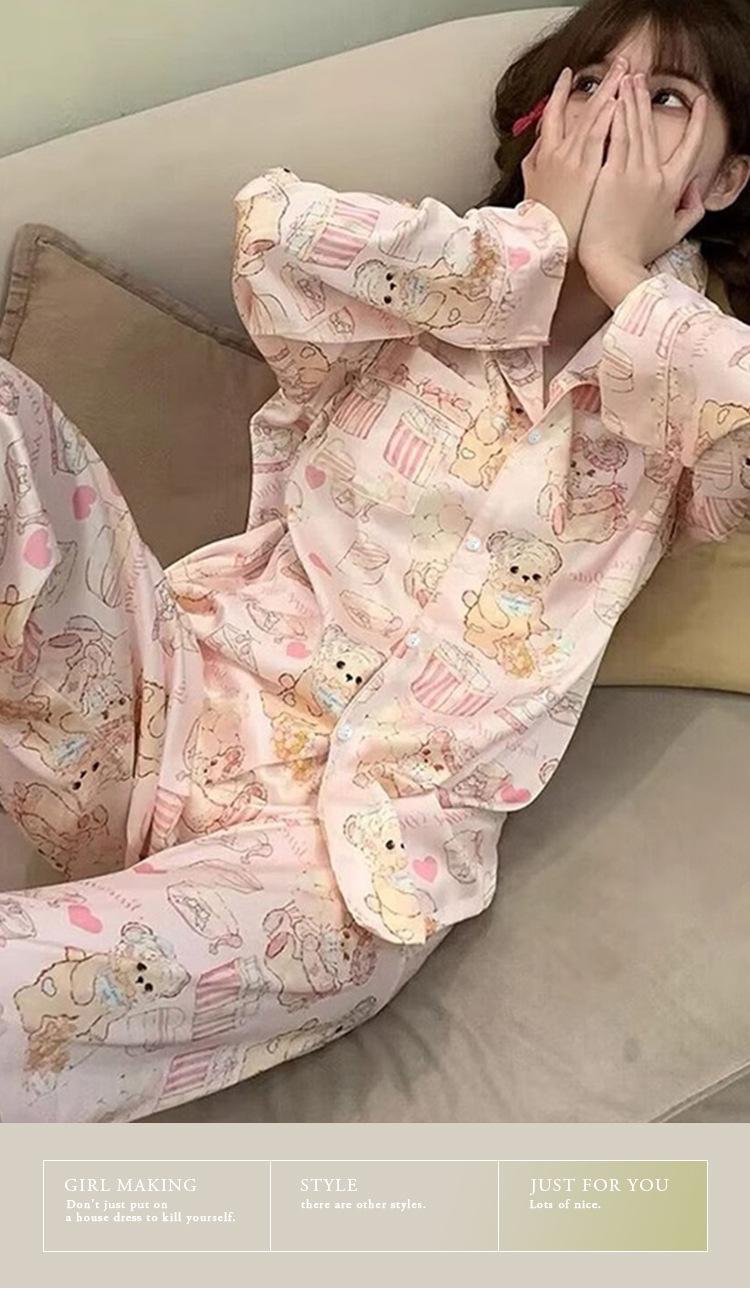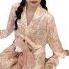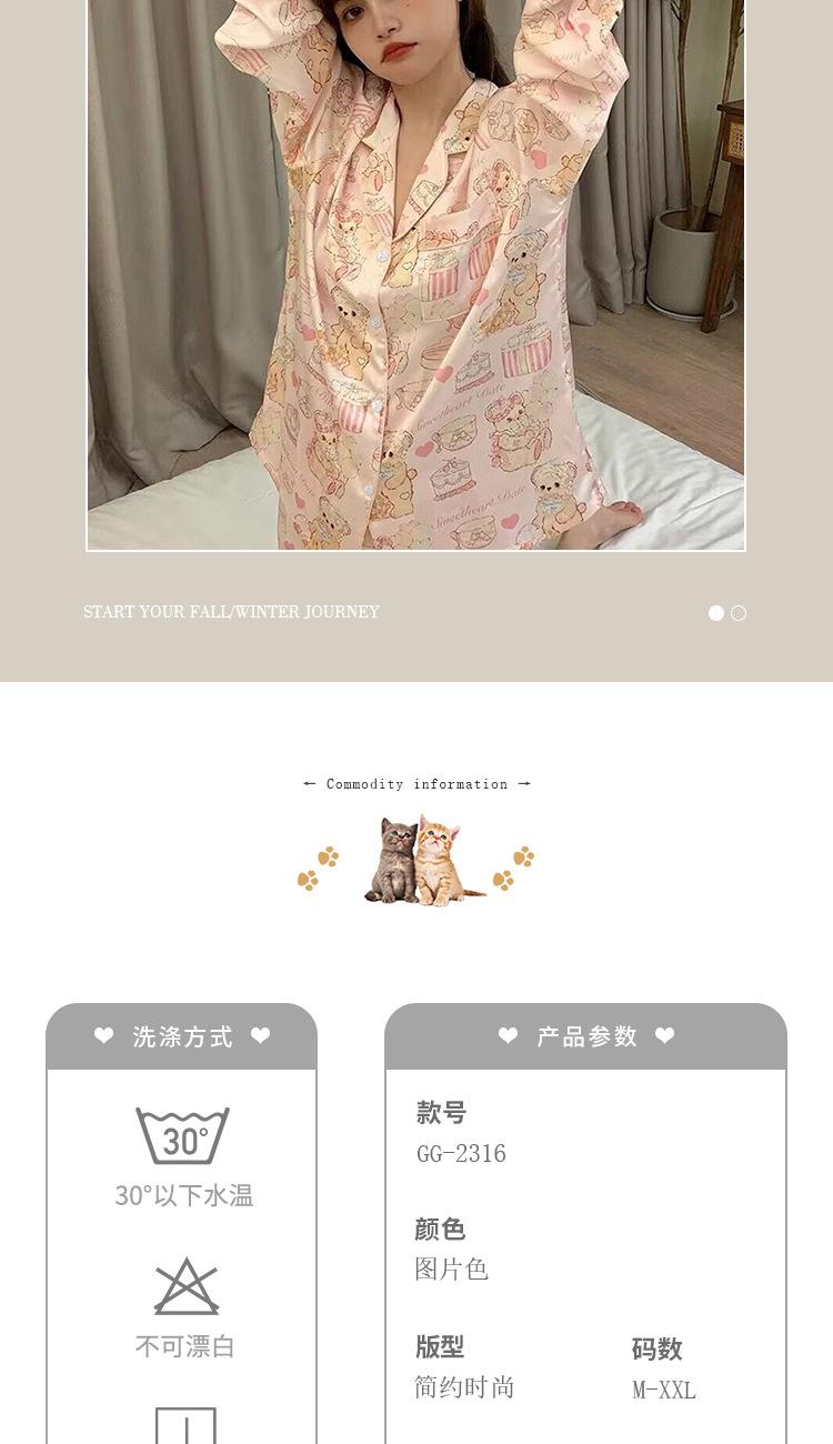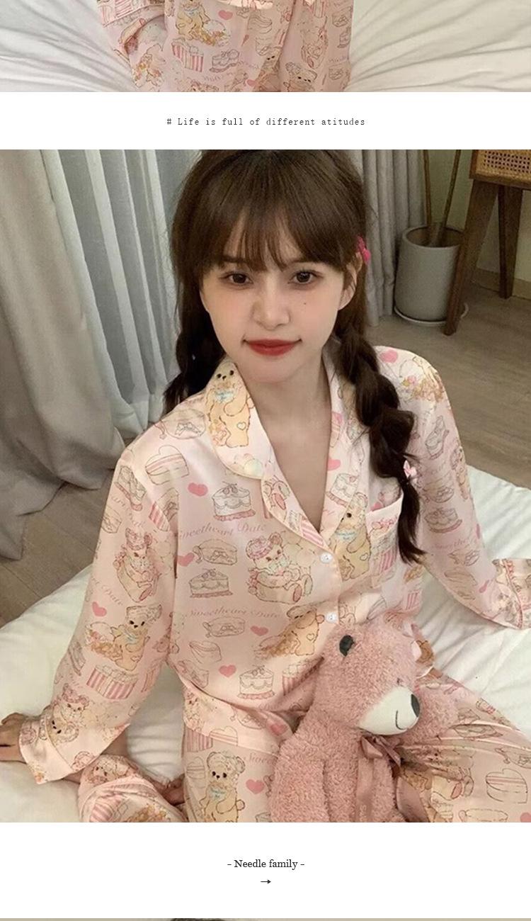 Pijama de seda helada con diseño de oso de pastel de estilo coreano para mujer, traje de manga larga de otoño, ropa de casa de estilo popular de red para niñas, se puede usar al por mayor