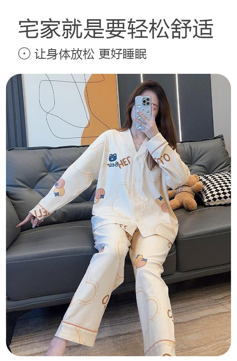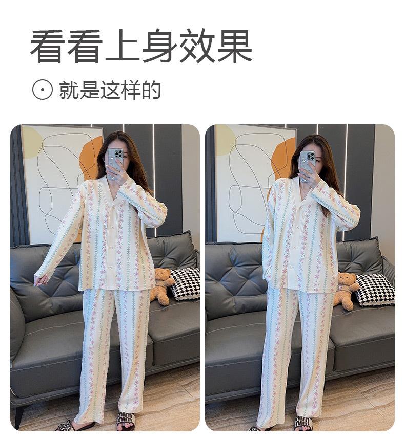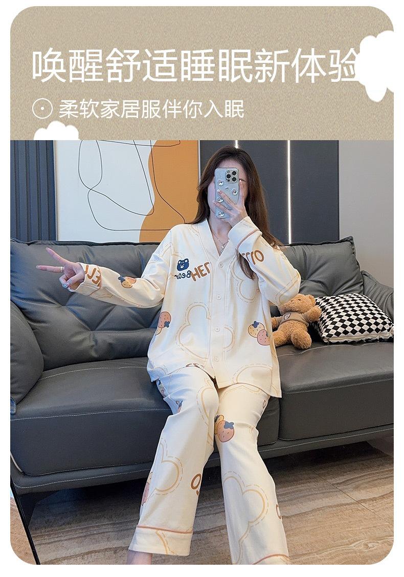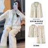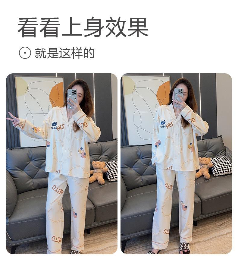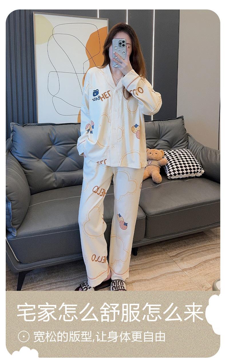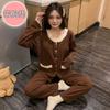 Otoño e Invierno Manga Larga Pantalones Pijama Traje de Mujer con Almohadilla en el Pecho Primavera y Otoño Cárdigan con Solapa Popular en Internet Ropa de Casa para Mujer