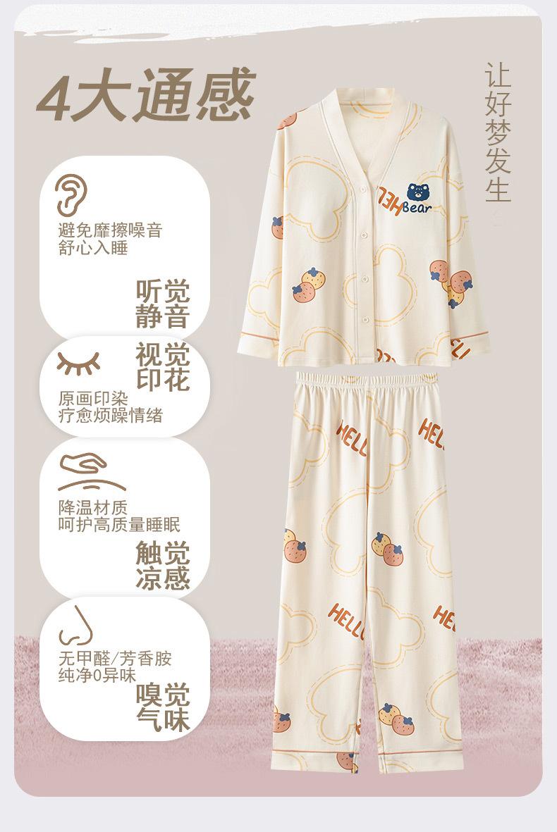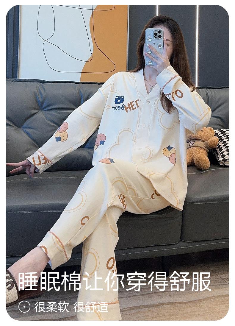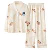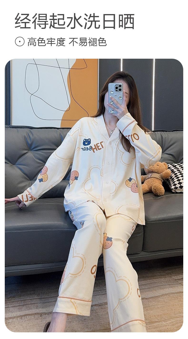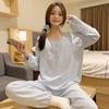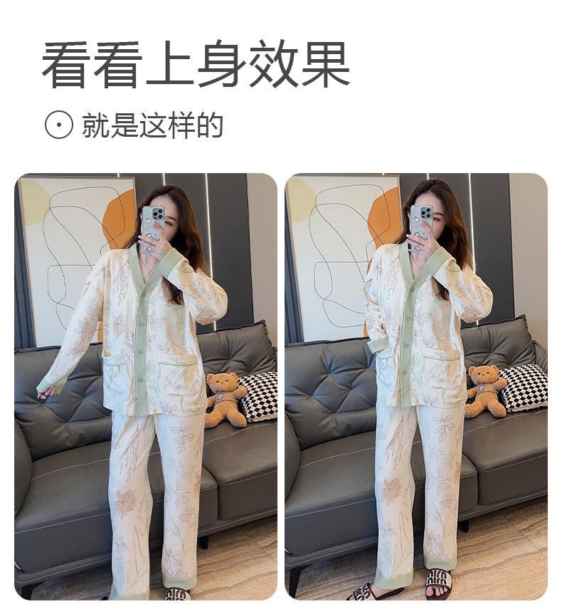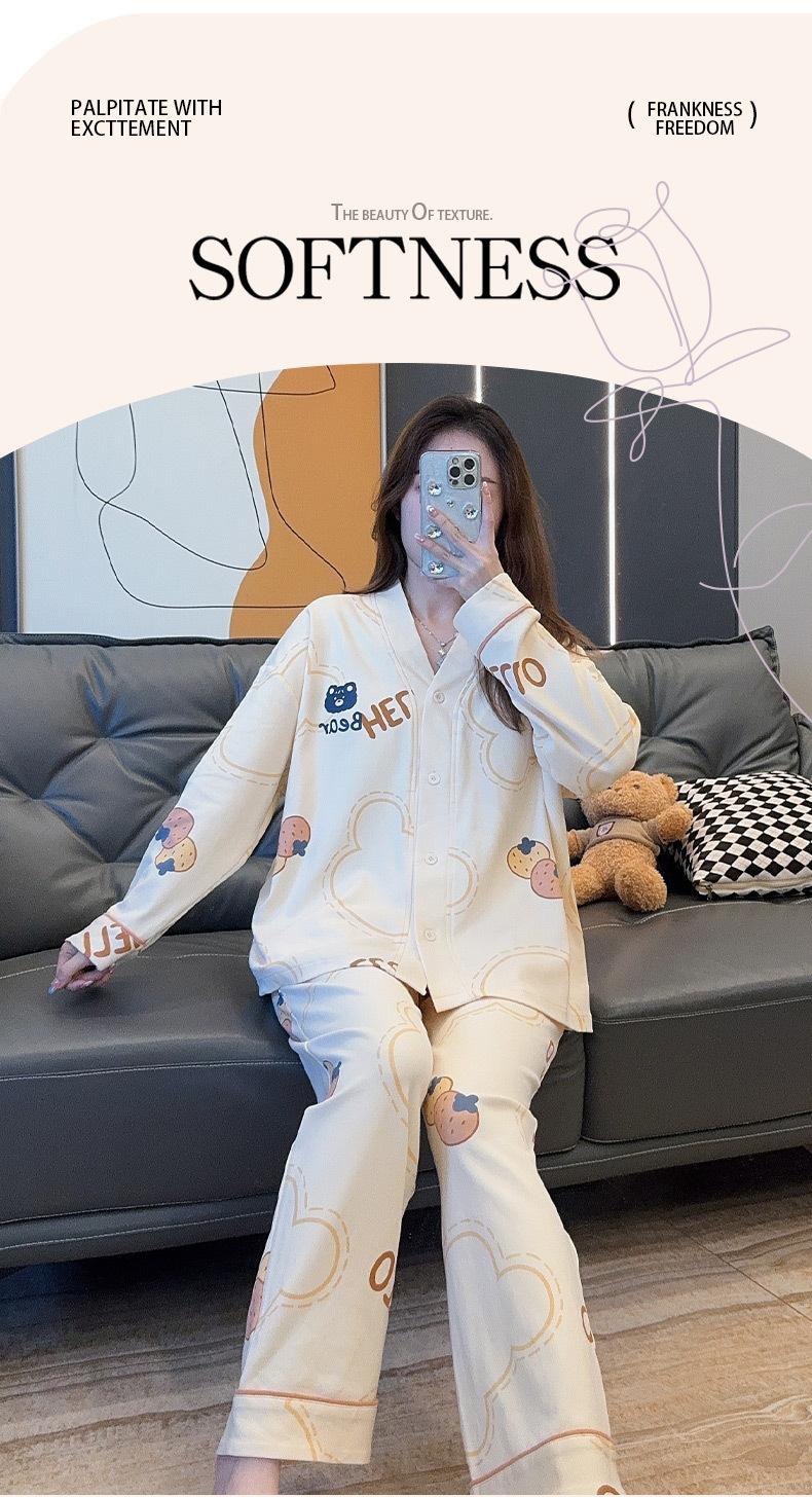 Otoño e Invierno Manga Larga Pantalones Pijama Traje de Mujer con Almohadilla en el Pecho Primavera y Otoño Cárdigan con Solapa Popular en Internet Ropa de Casa para Mujer