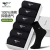 Calcetines de algodón de siete lobos para hombre, informales, de negocios, negros, de algodón, antibacterianos y transpirables, 6 pares