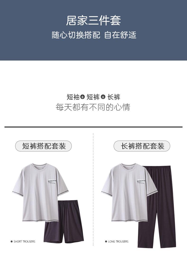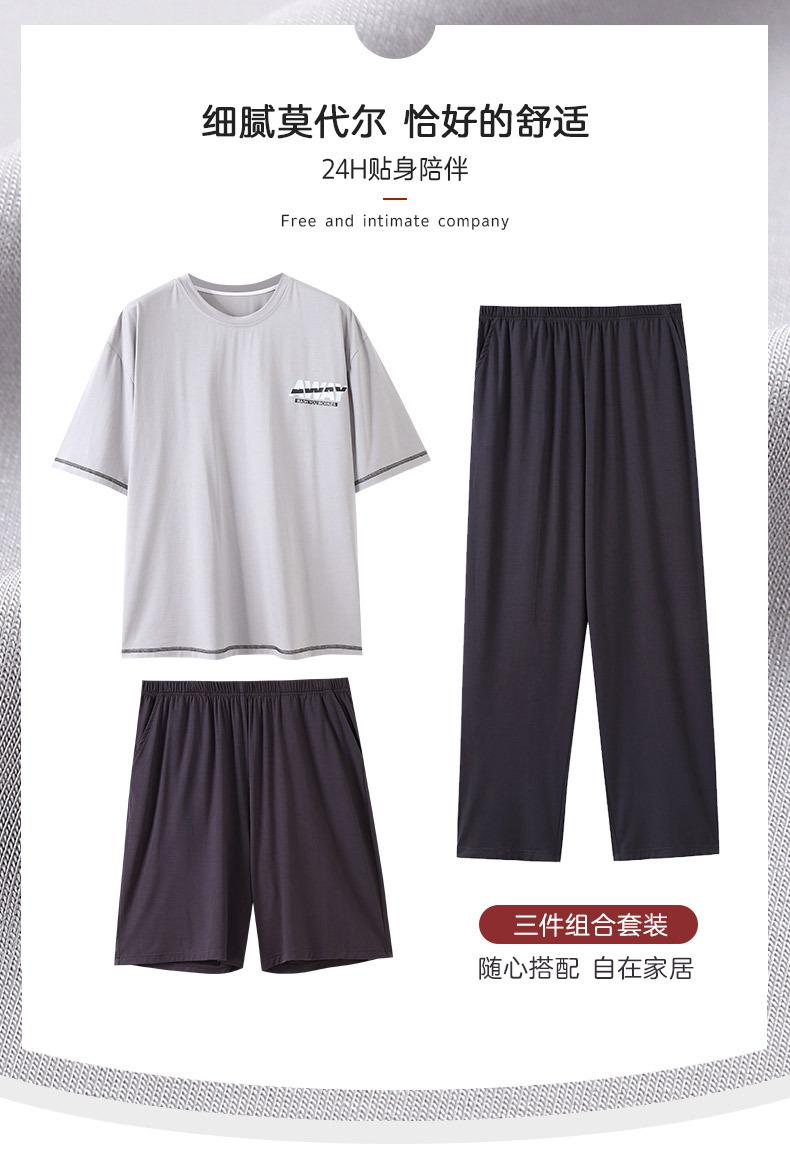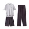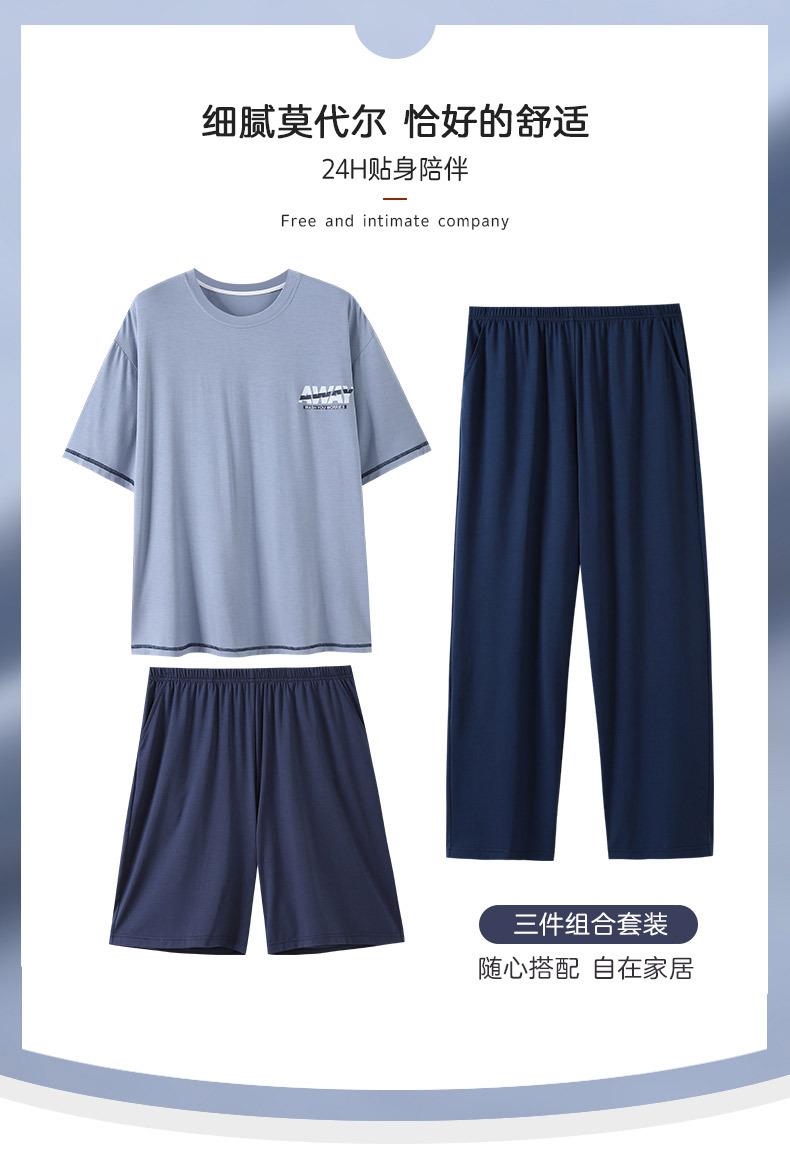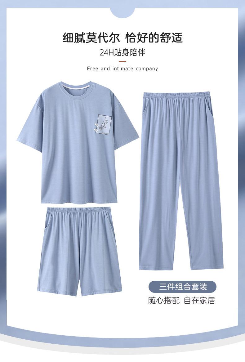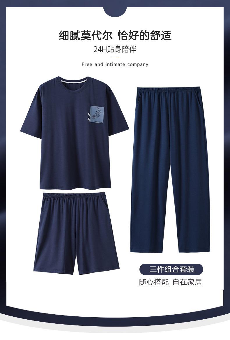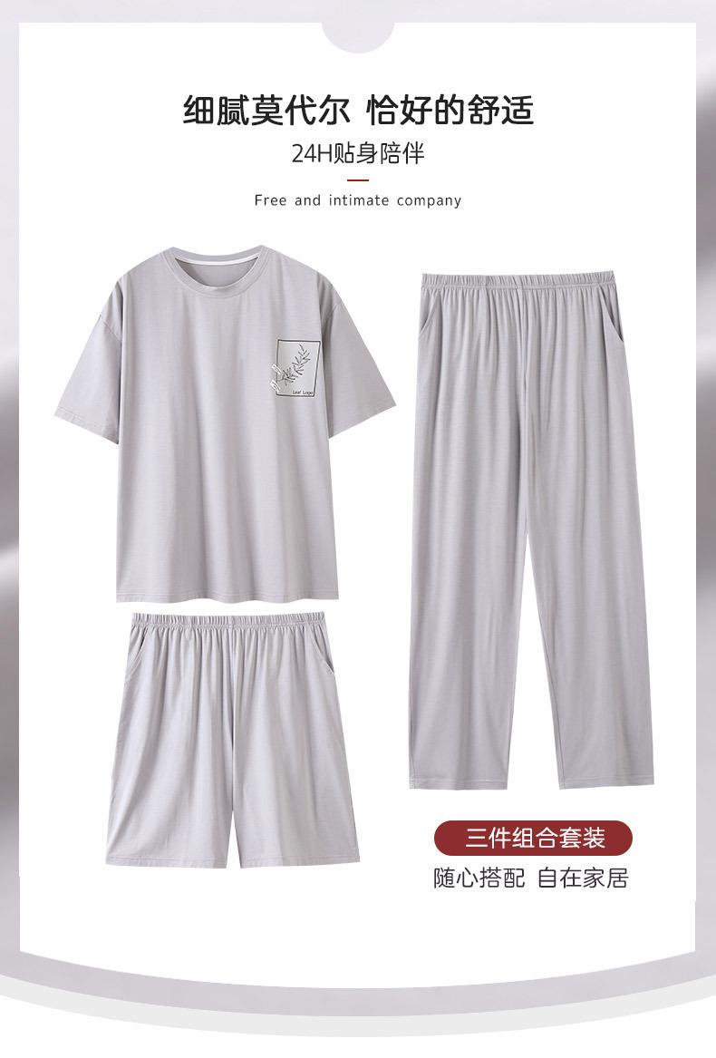 Pijama de verano para hombre, pantalones de manga corta, modal, ropa de casa, seda de hielo, primavera y otoño, traje de tres piezas de talla grande