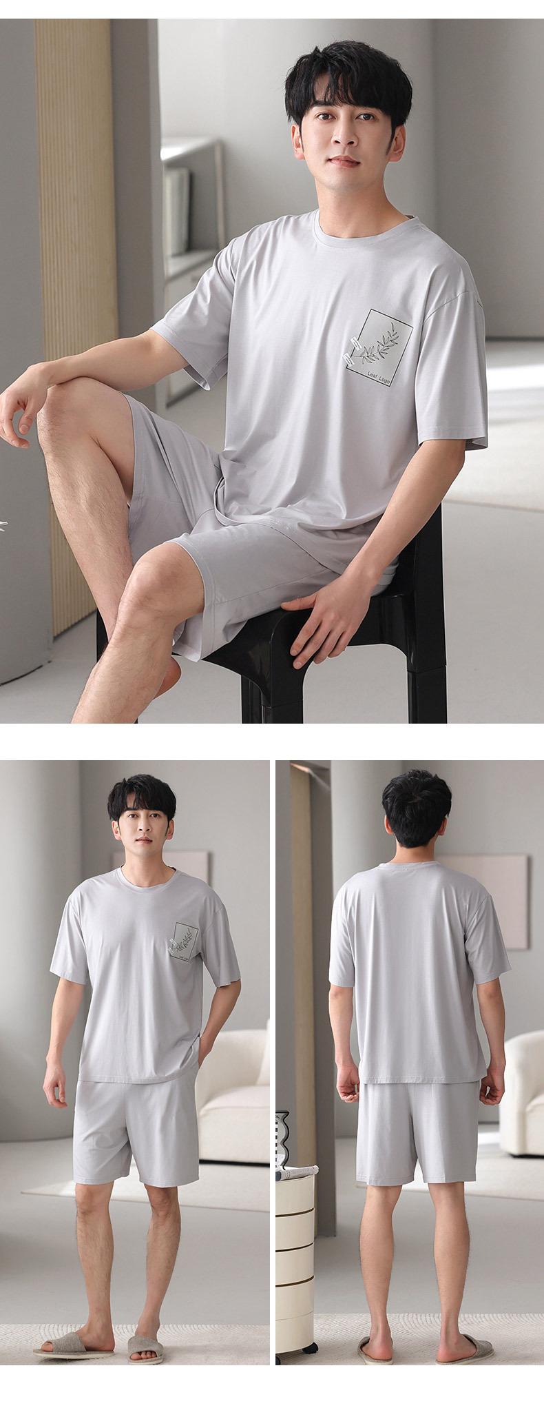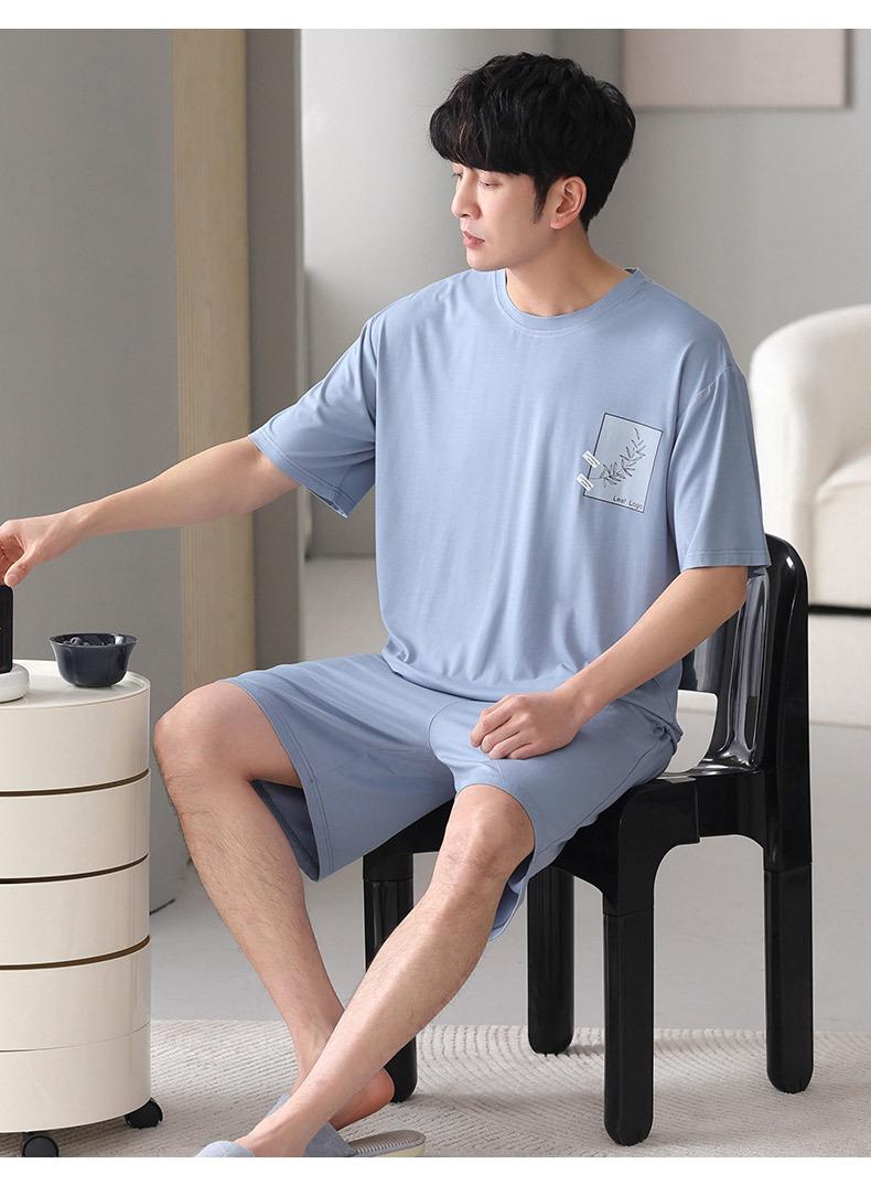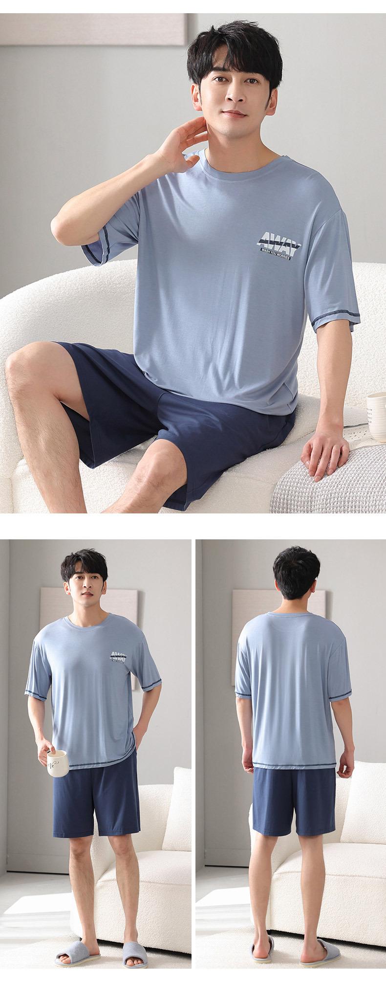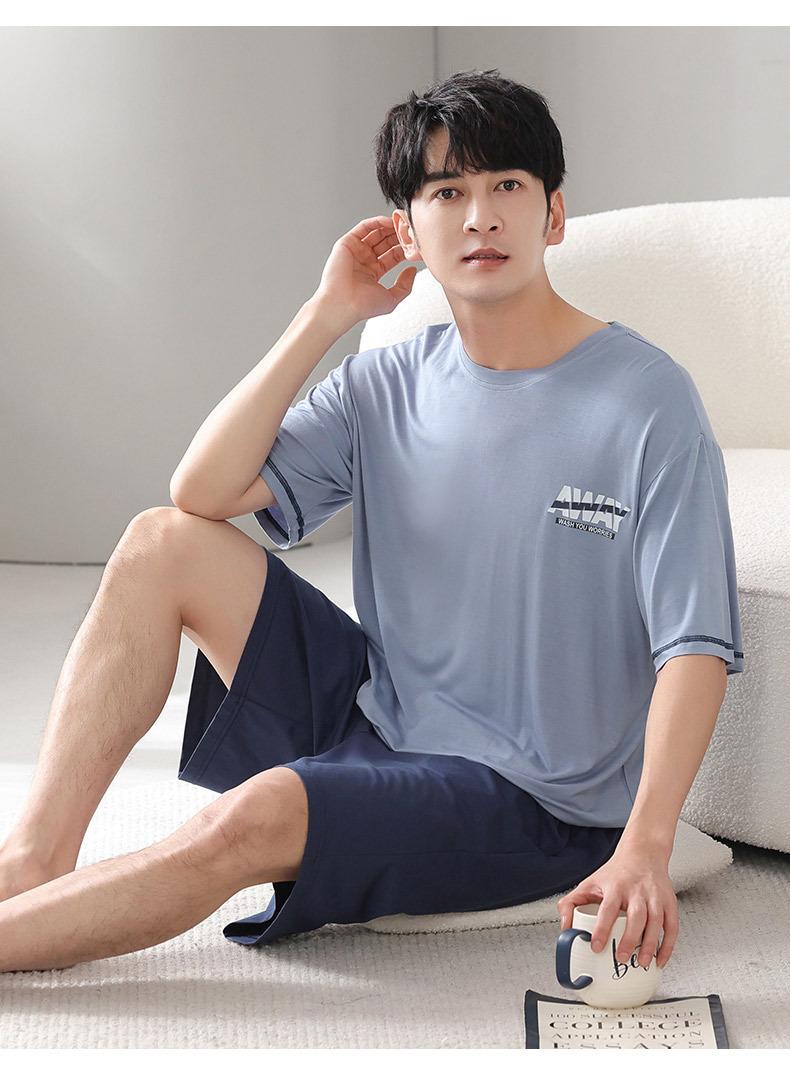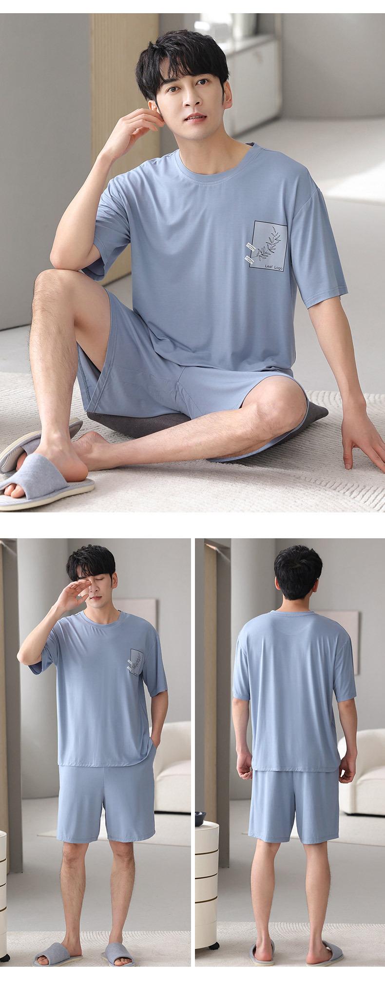 Pijama de verano para hombre, pantalones de manga corta, modal, ropa de casa, seda de hielo, primavera y otoño, traje de tres piezas de talla grande