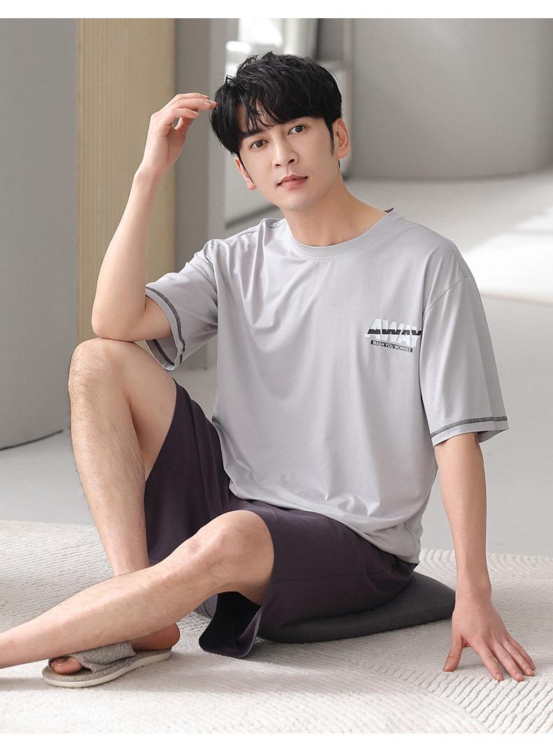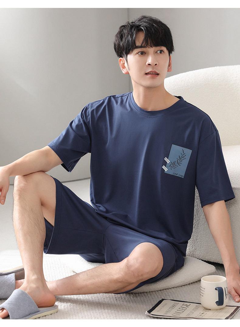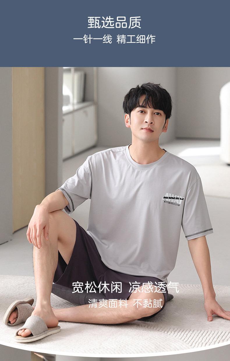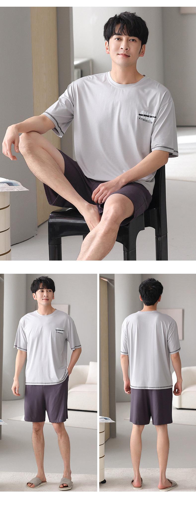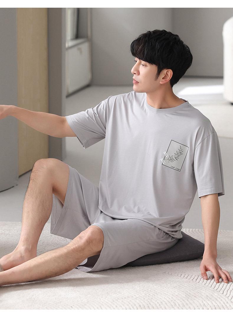 Pijama de verano para hombre, pantalones de manga corta, modal, ropa de casa, seda de hielo, primavera y otoño, traje de tres piezas de talla grande