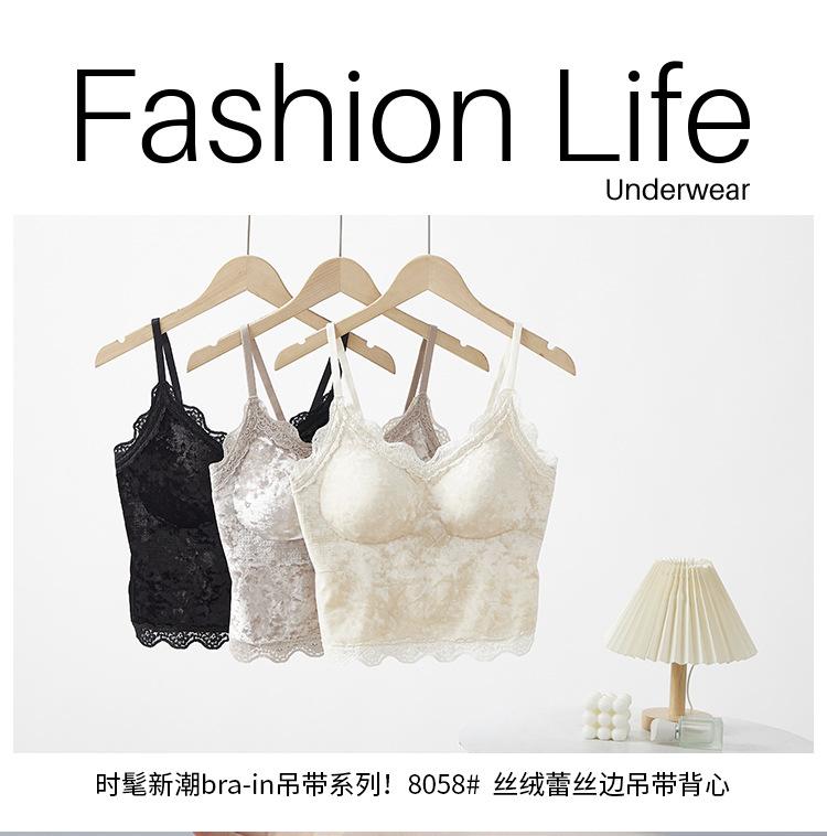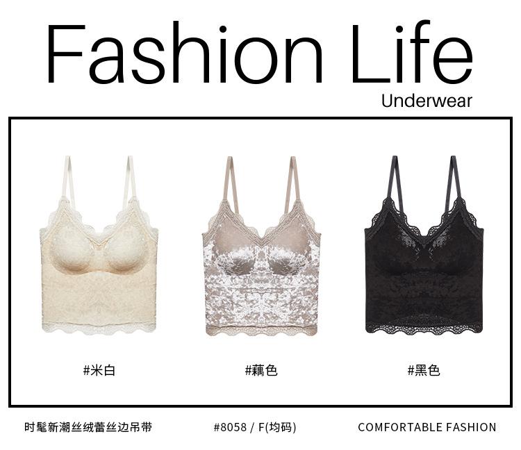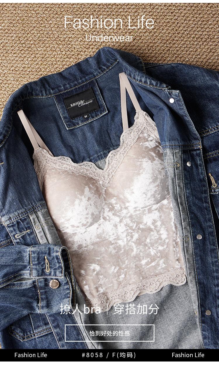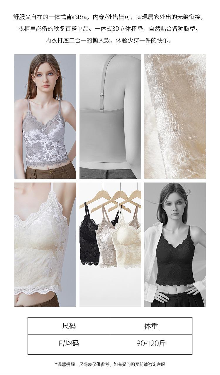 Otoño e Invierno Nuevo Camisola de Encaje de Terciopelo Francés Ajustado Ajustado Sujetador Sin Uso Ropa Interior de Espalda Hermosa de Una Pieza