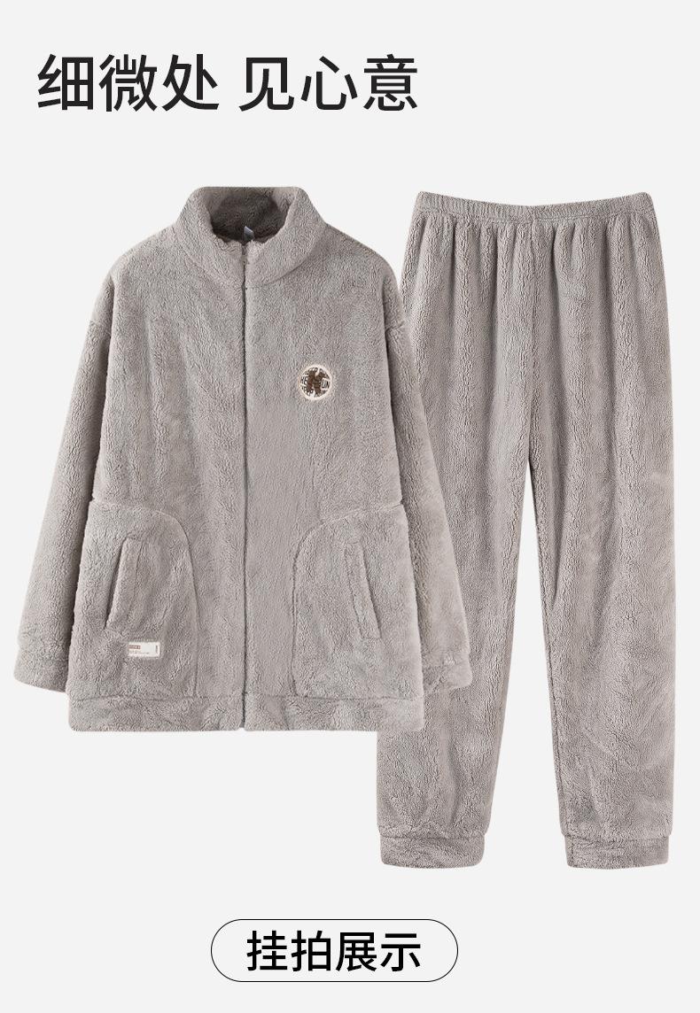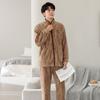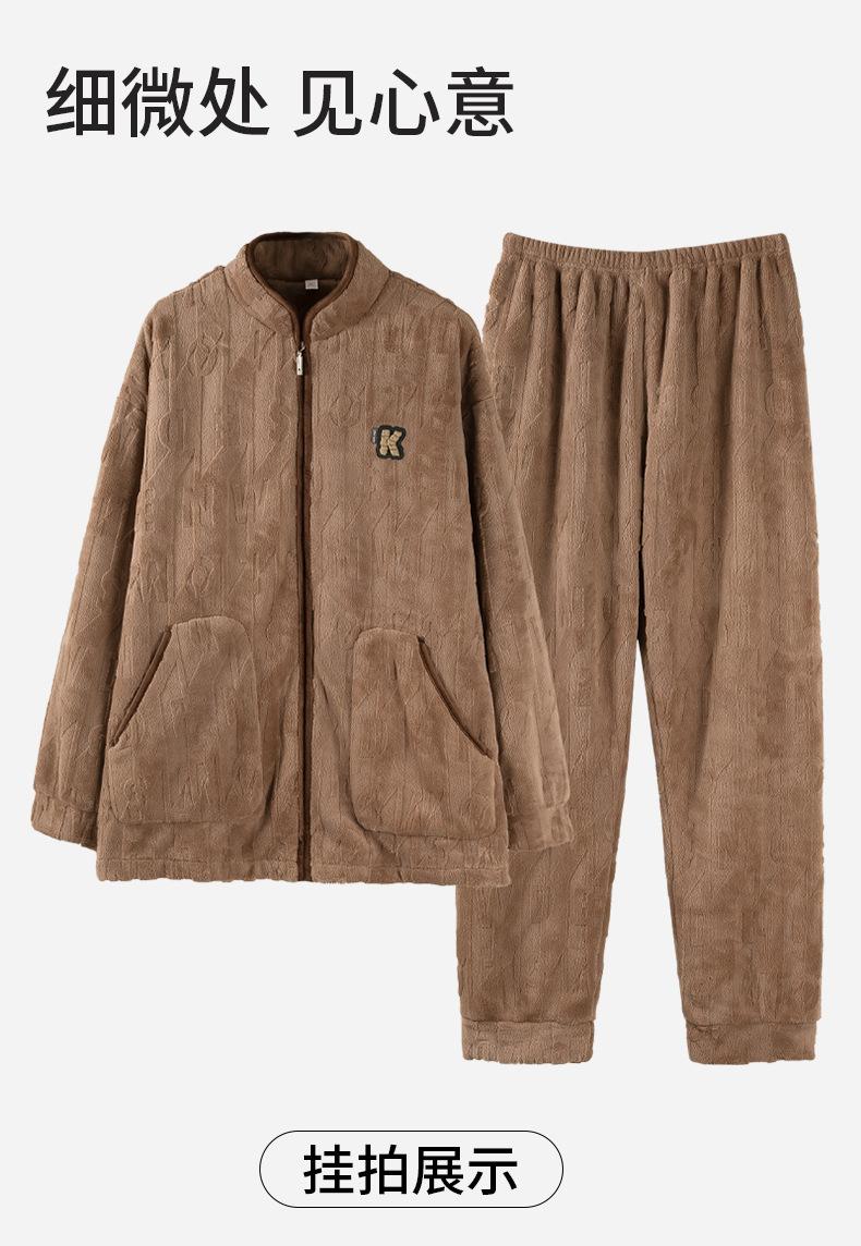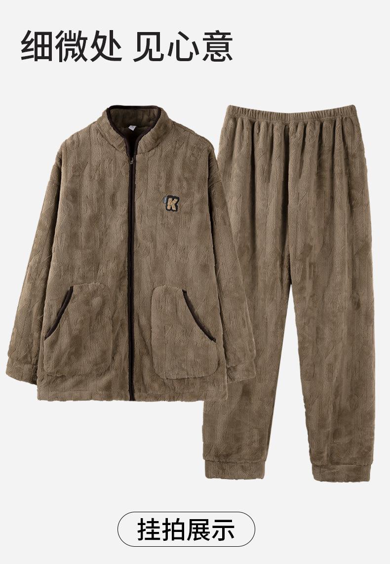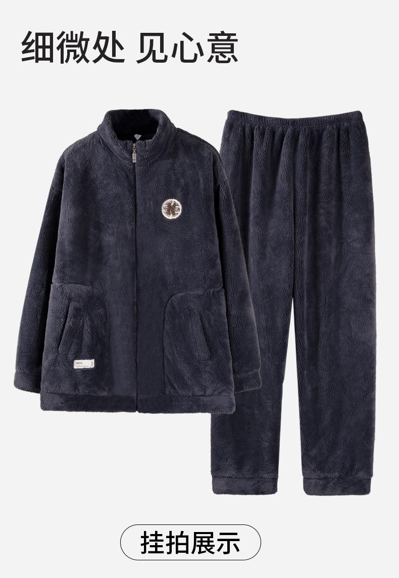 Pijamas de franela para hombre, de invierno, gruesos, con cuello con cremallera, informales, de tacto suave, de forro polar coral, ropa cálida para el hogar.