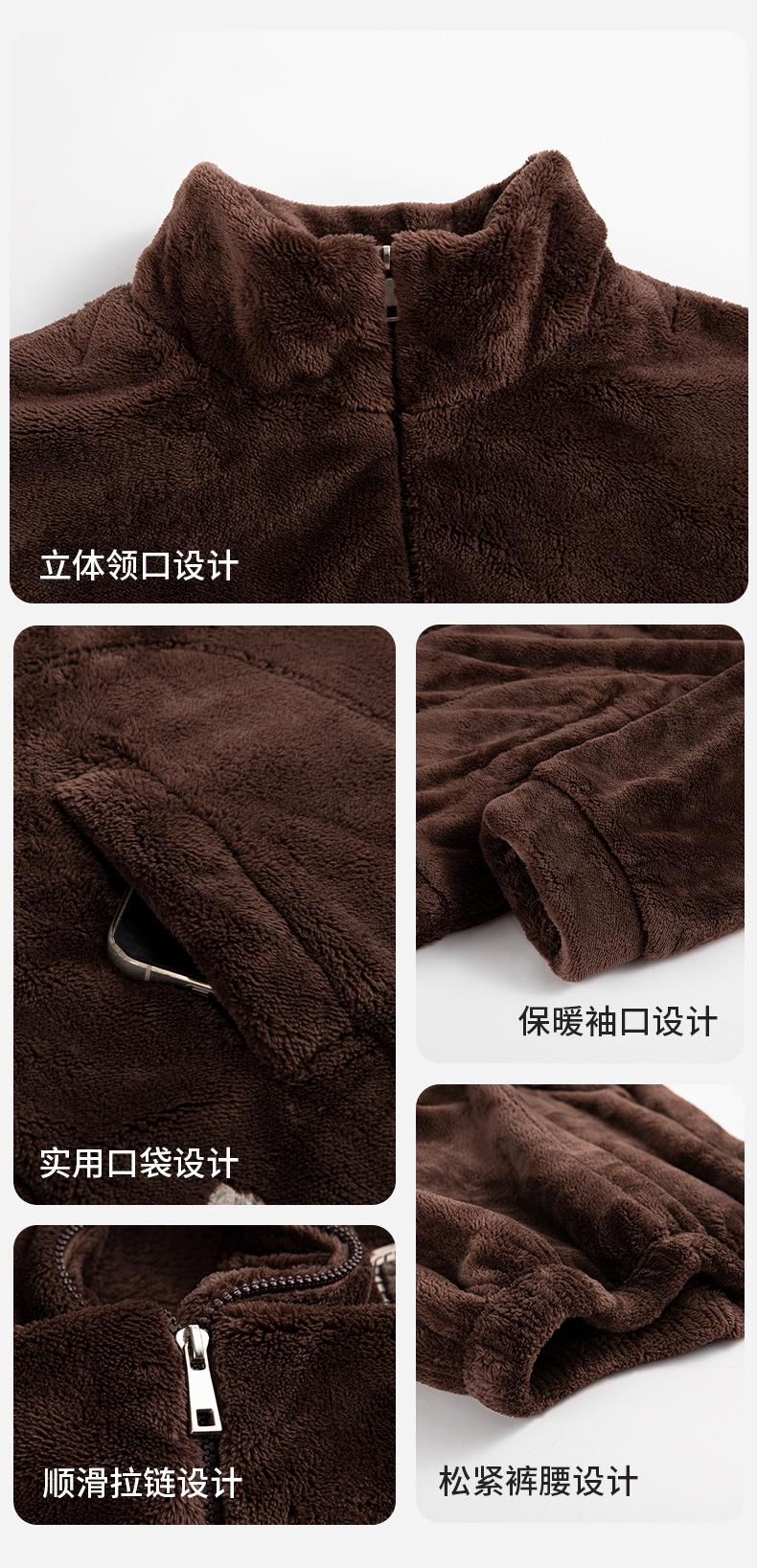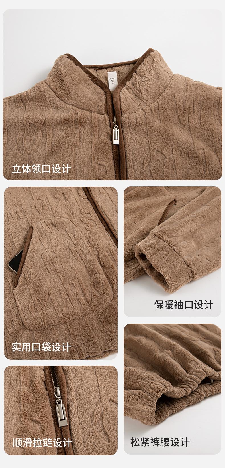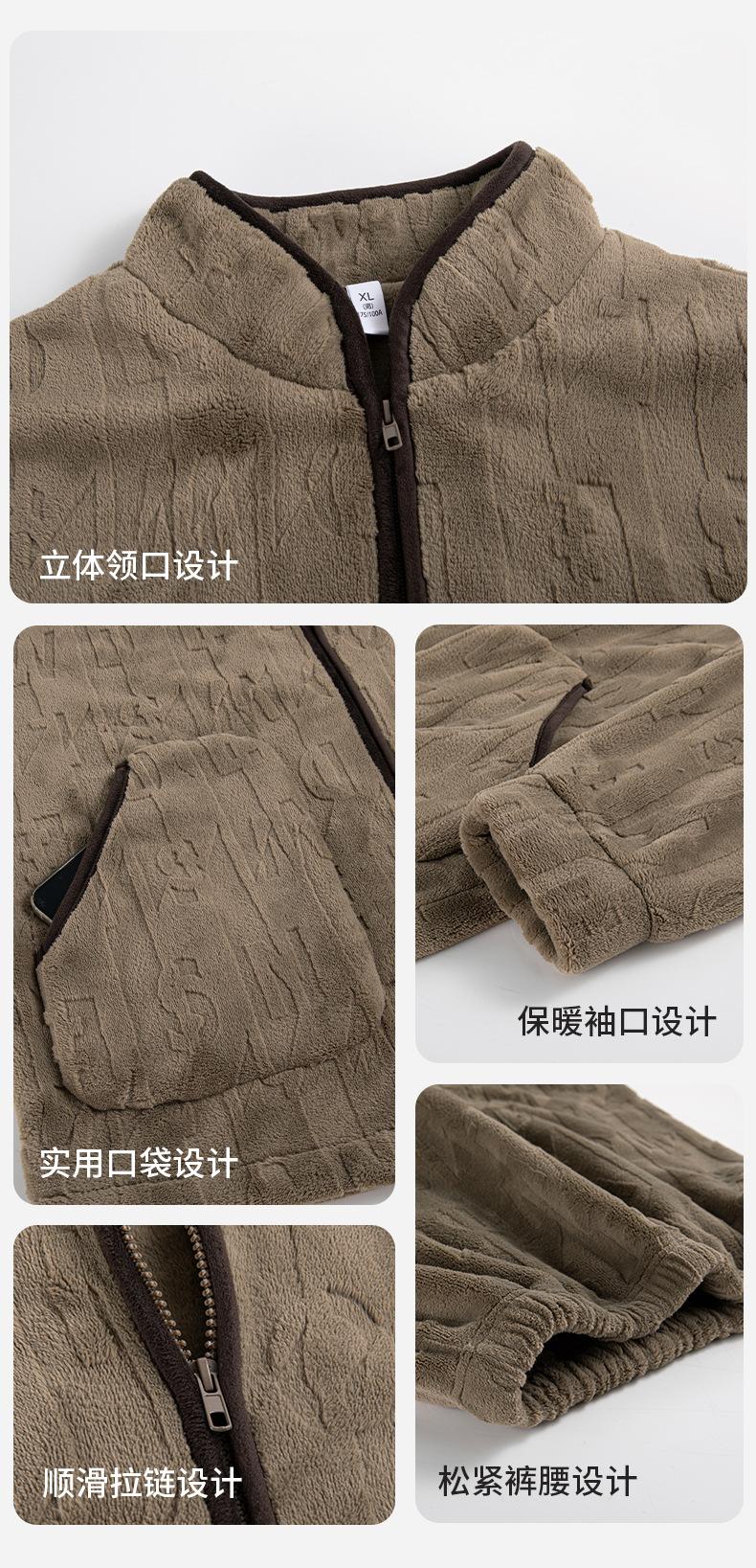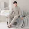 Pijamas de franela para hombre, de invierno, gruesos, con cuello con cremallera, informales, de tacto suave, de forro polar coral, ropa cálida para el hogar.