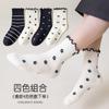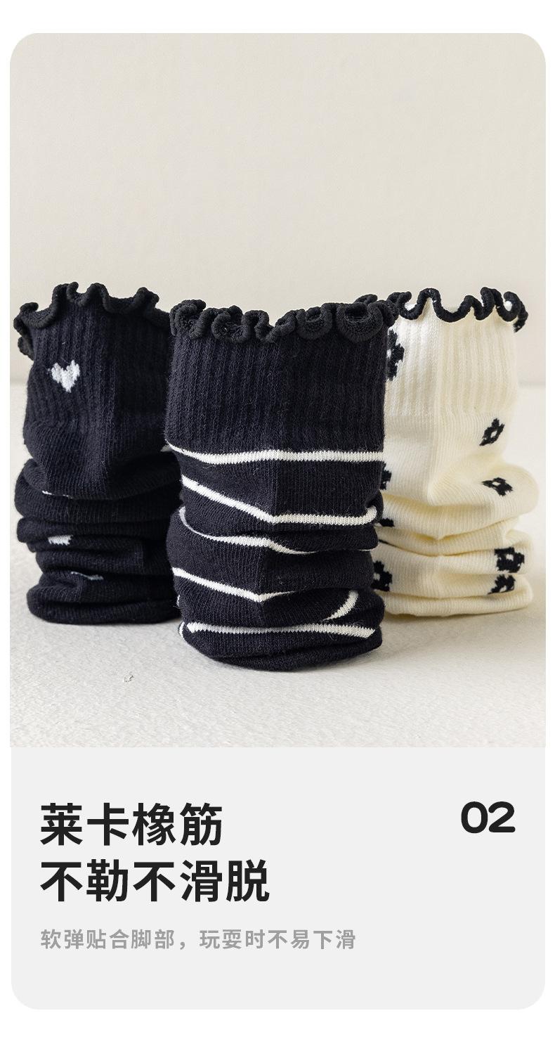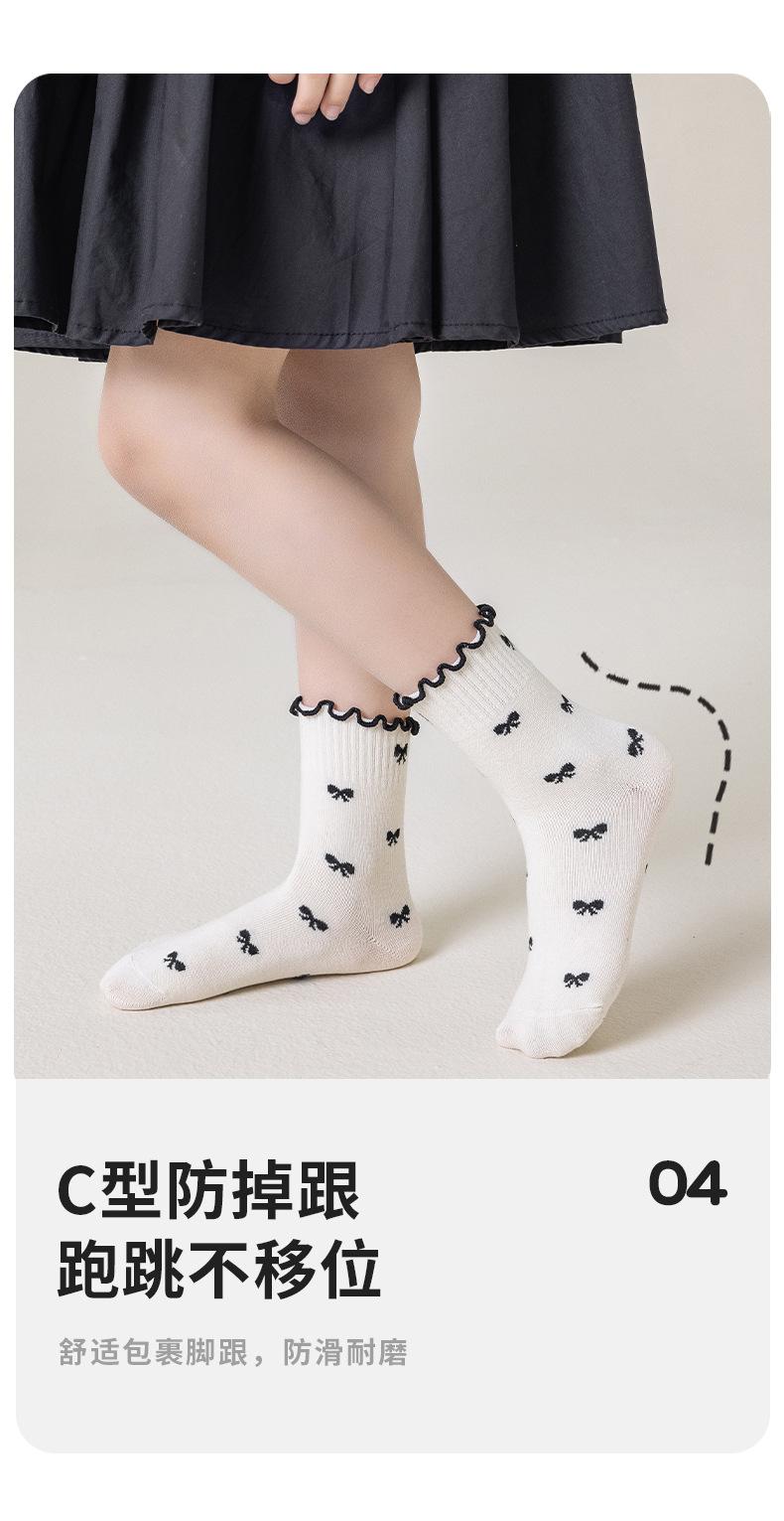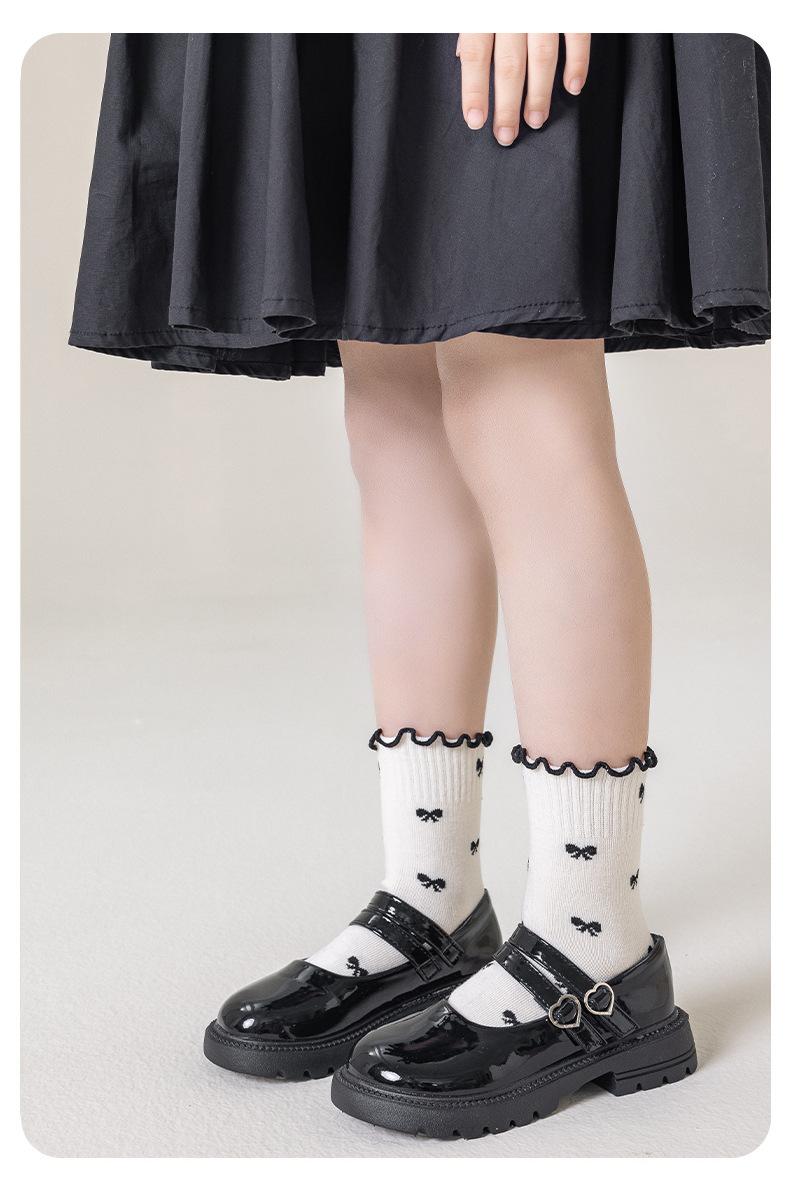 Calcetines para niñas, otoño, dulces calcetines de tubo, blanco y negro, lazo rizado, princesa, viento, calcetines de algodón para bebés, venta al por mayor