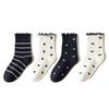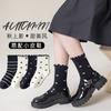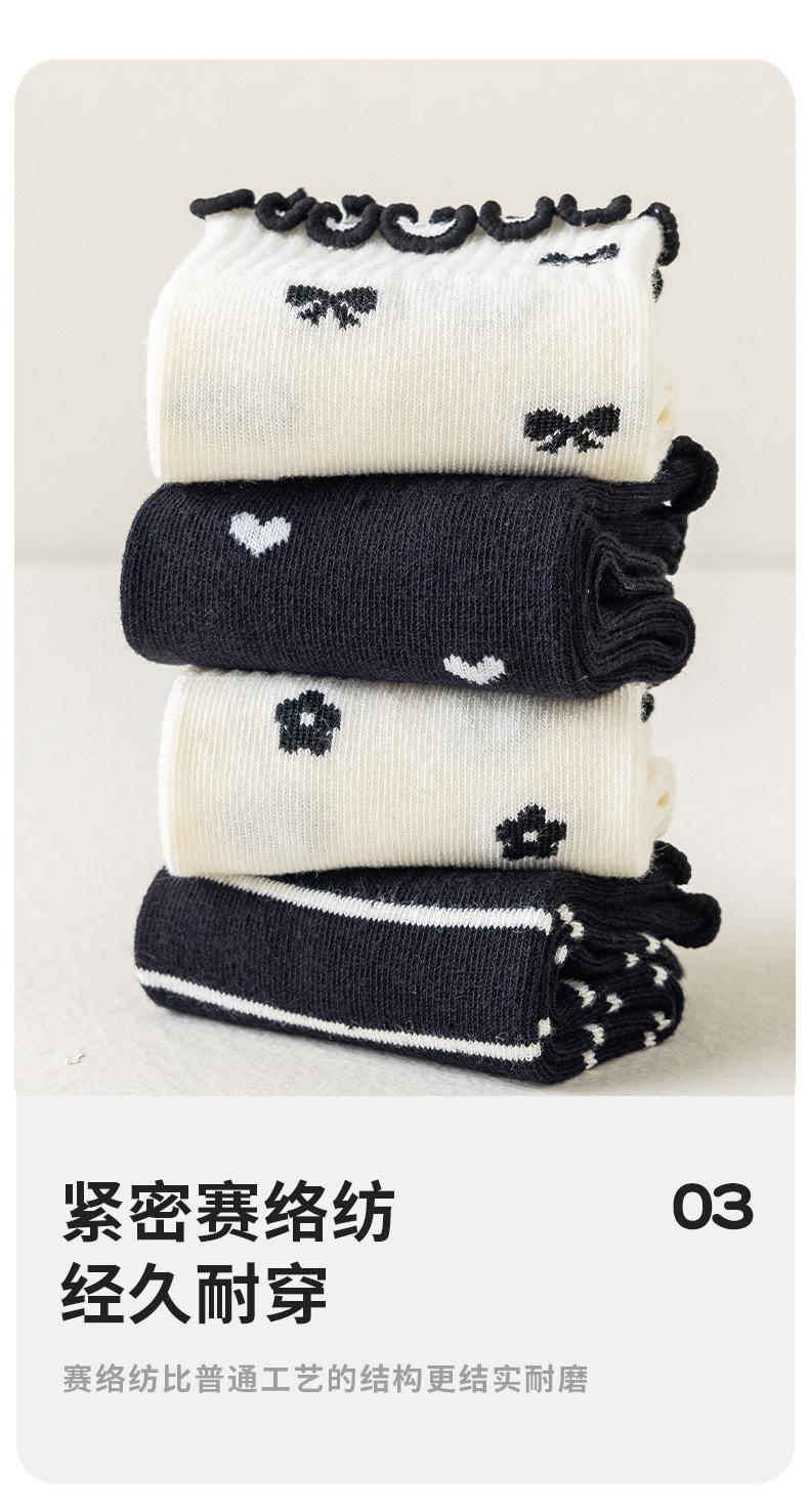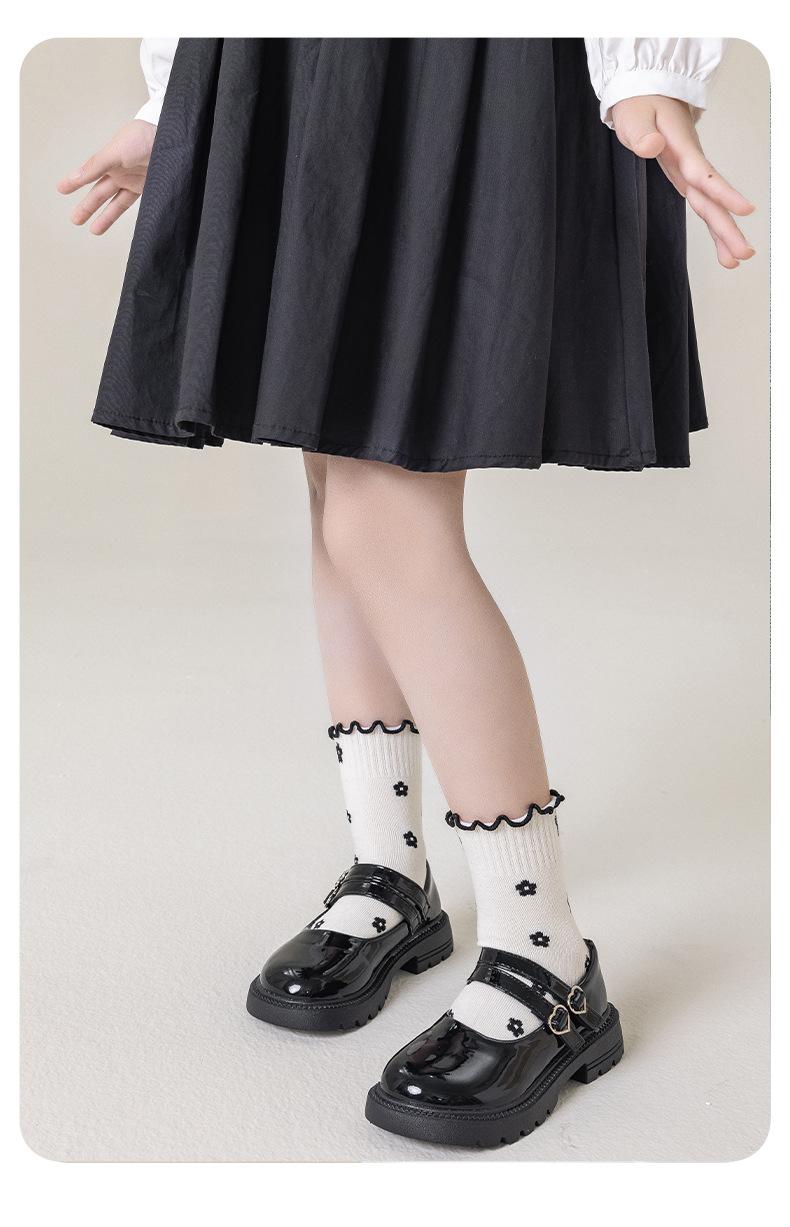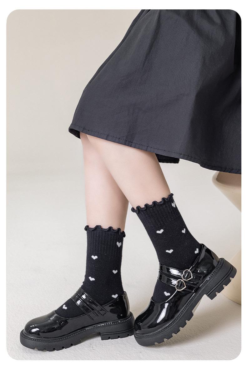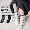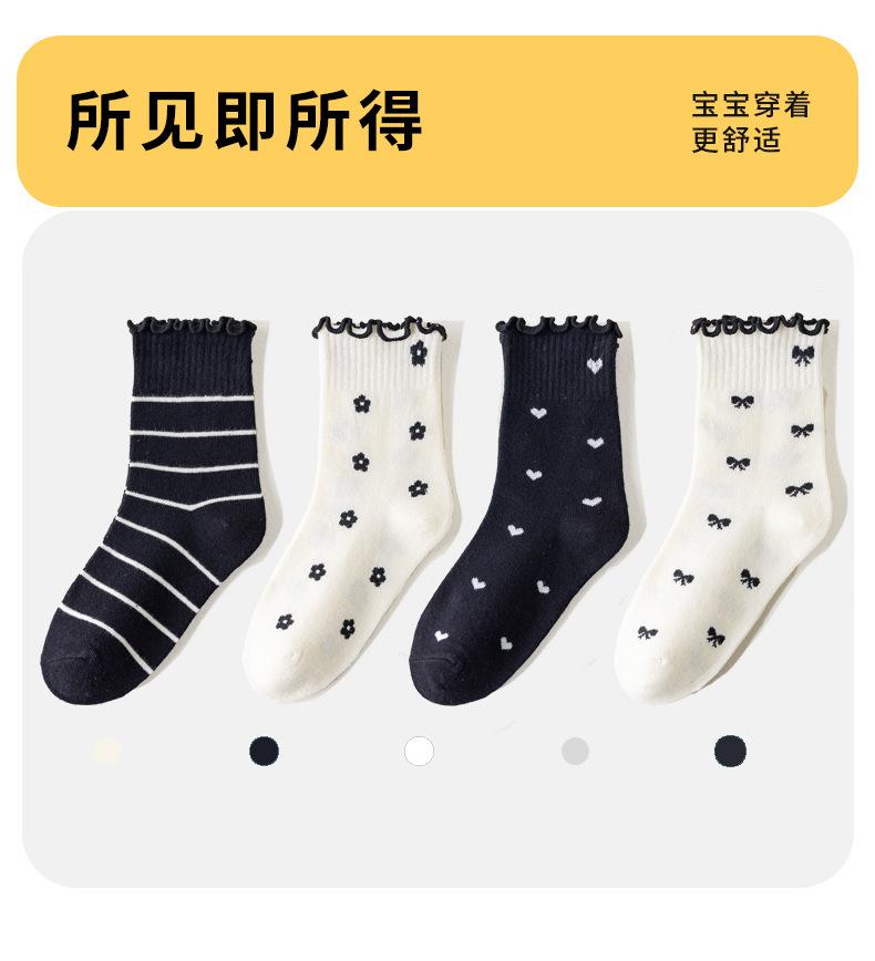 Calcetines para niñas, otoño, dulces calcetines de tubo, blanco y negro, lazo rizado, princesa, viento, calcetines de algodón para bebés, venta al por mayor
