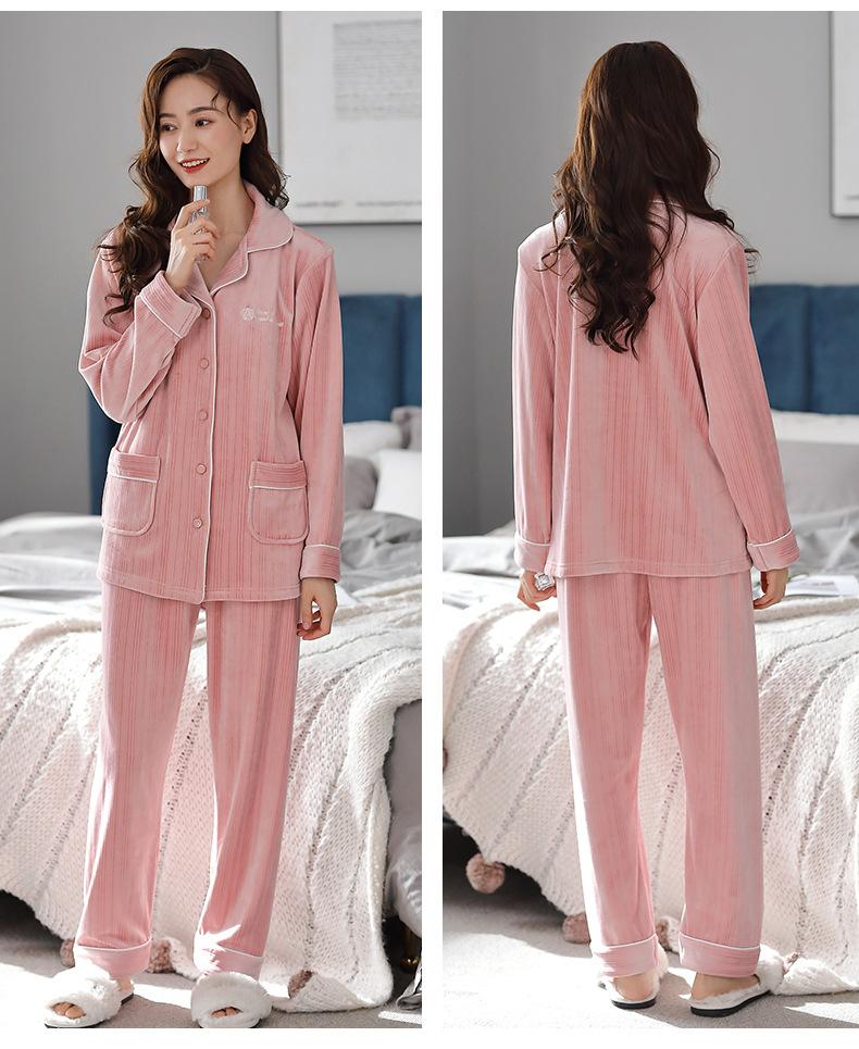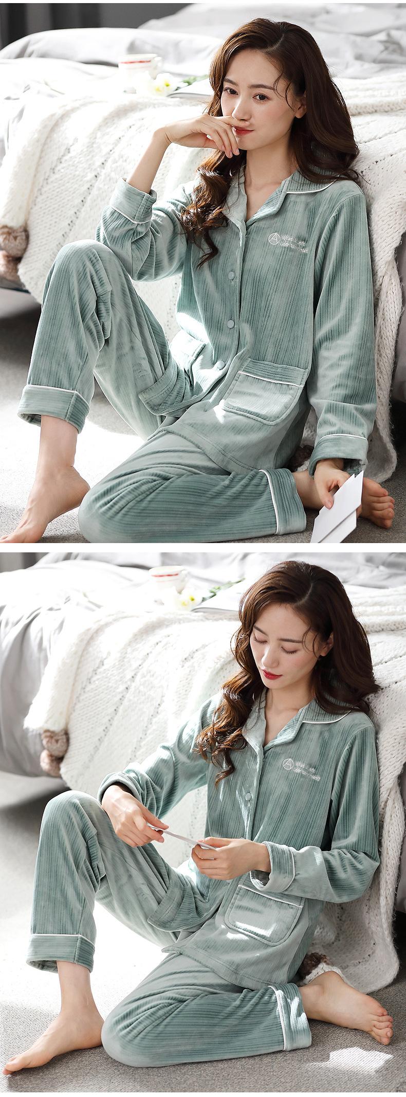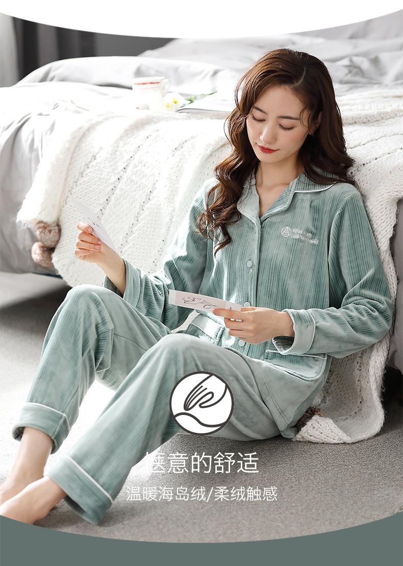 Pijama de terciopelo de isla para mujer primavera y otoño terciopelo coral traje delgado otoño e invierno franela cálido pequeño fresco ropa para el hogar
