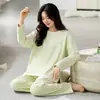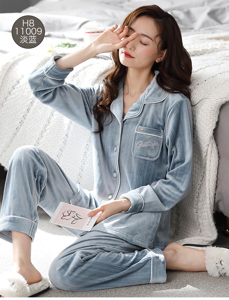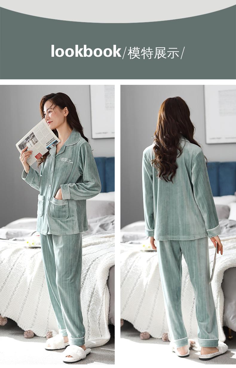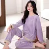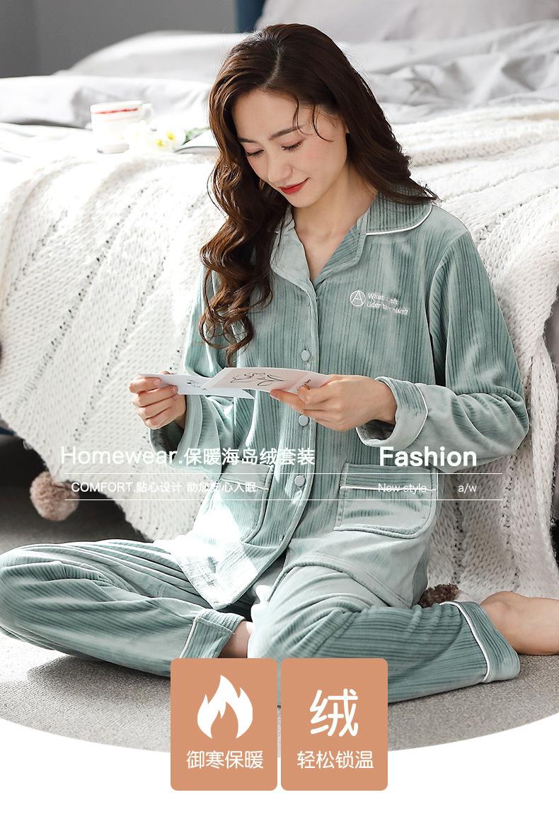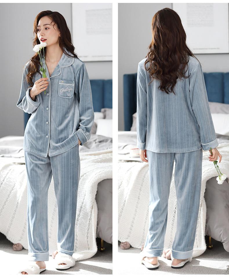 Pijama de terciopelo de isla para mujer primavera y otoño terciopelo coral traje delgado otoño e invierno franela cálido pequeño fresco ropa para el hogar