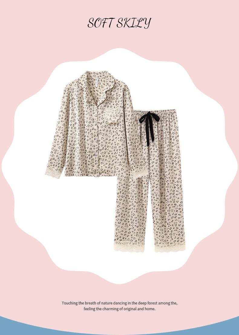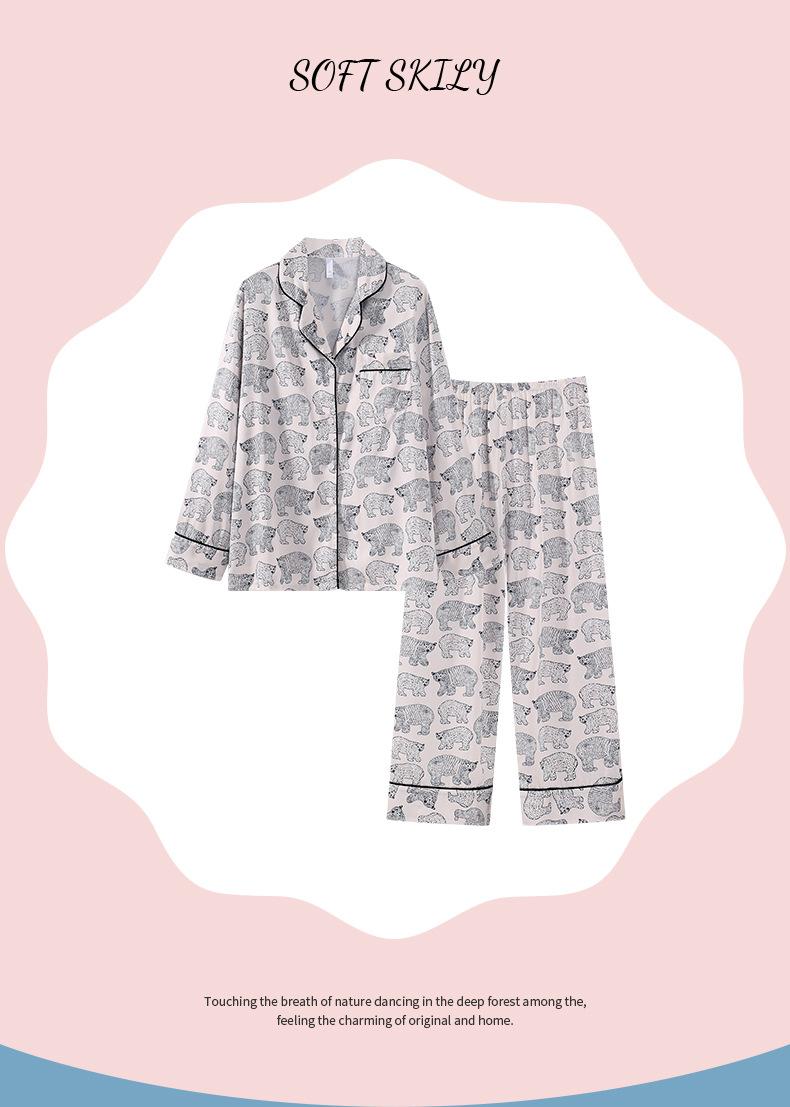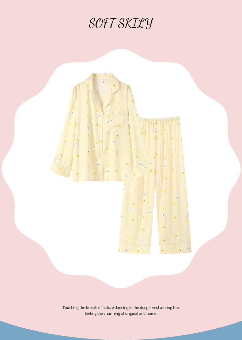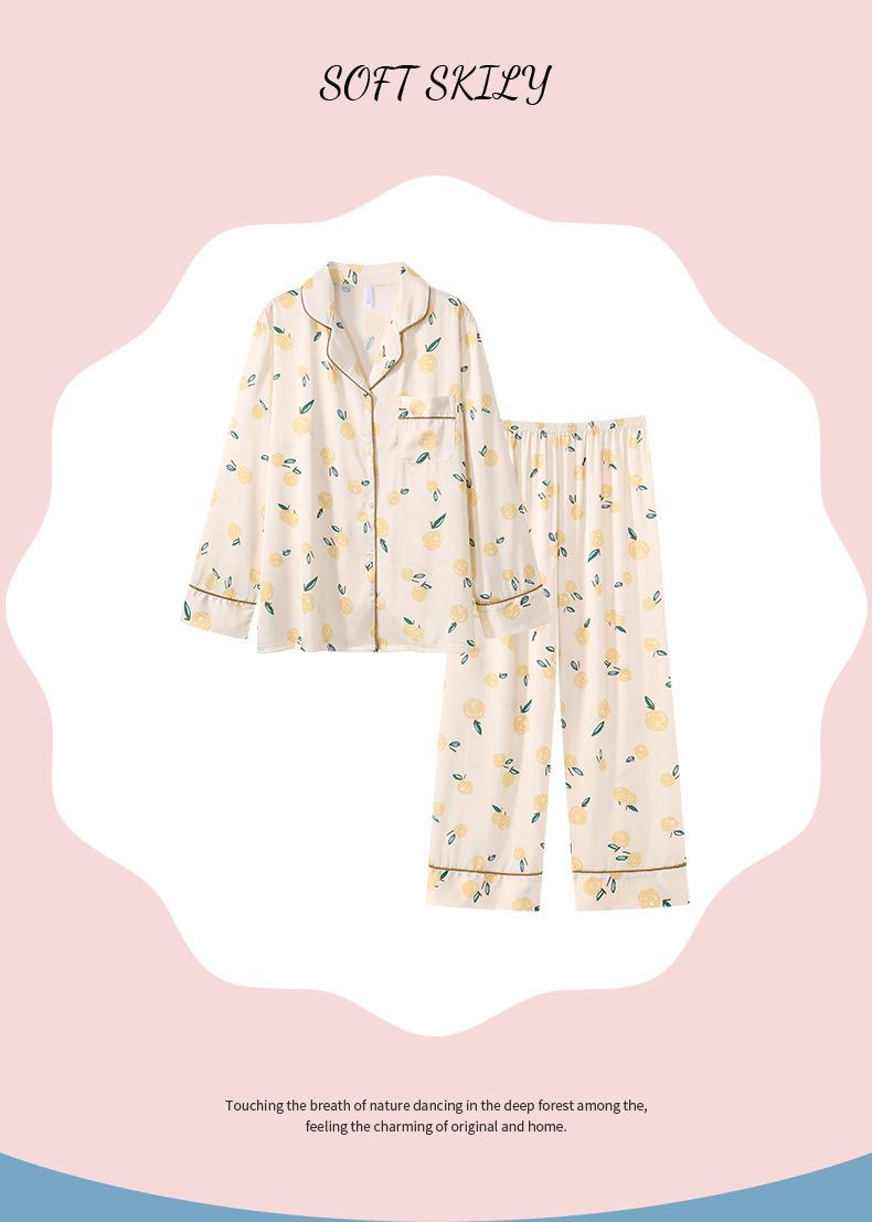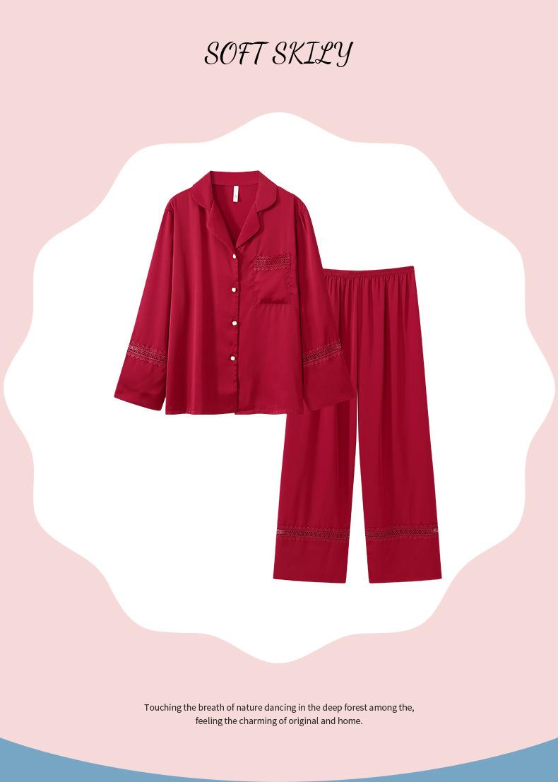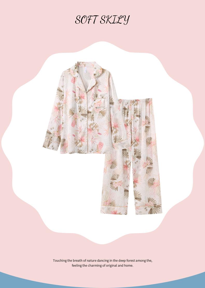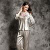 Pijama de seda helada suave y sedoso para mujer, primavera y verano, manga larga, fino, de alta gama, de seda sintética, para el hogar.