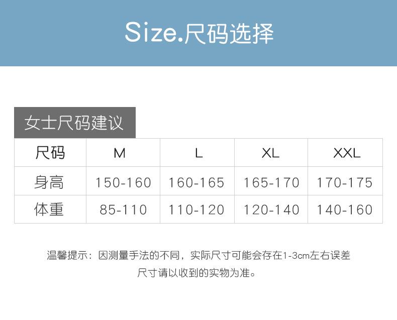 M: Recommended 45.00 kg-55.00 kg, L: Suggested 55.00 kg-60.00 kg, XL: Suggested 60.00 kg-70.00 kg
