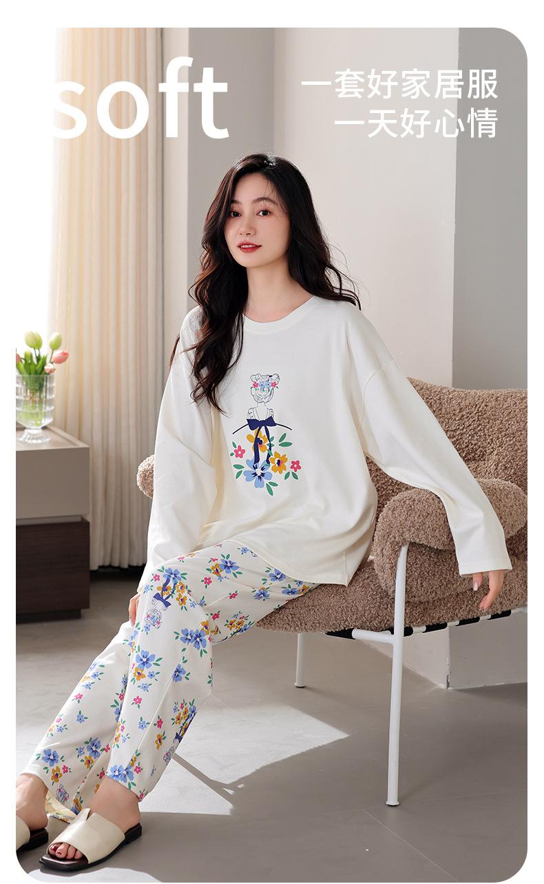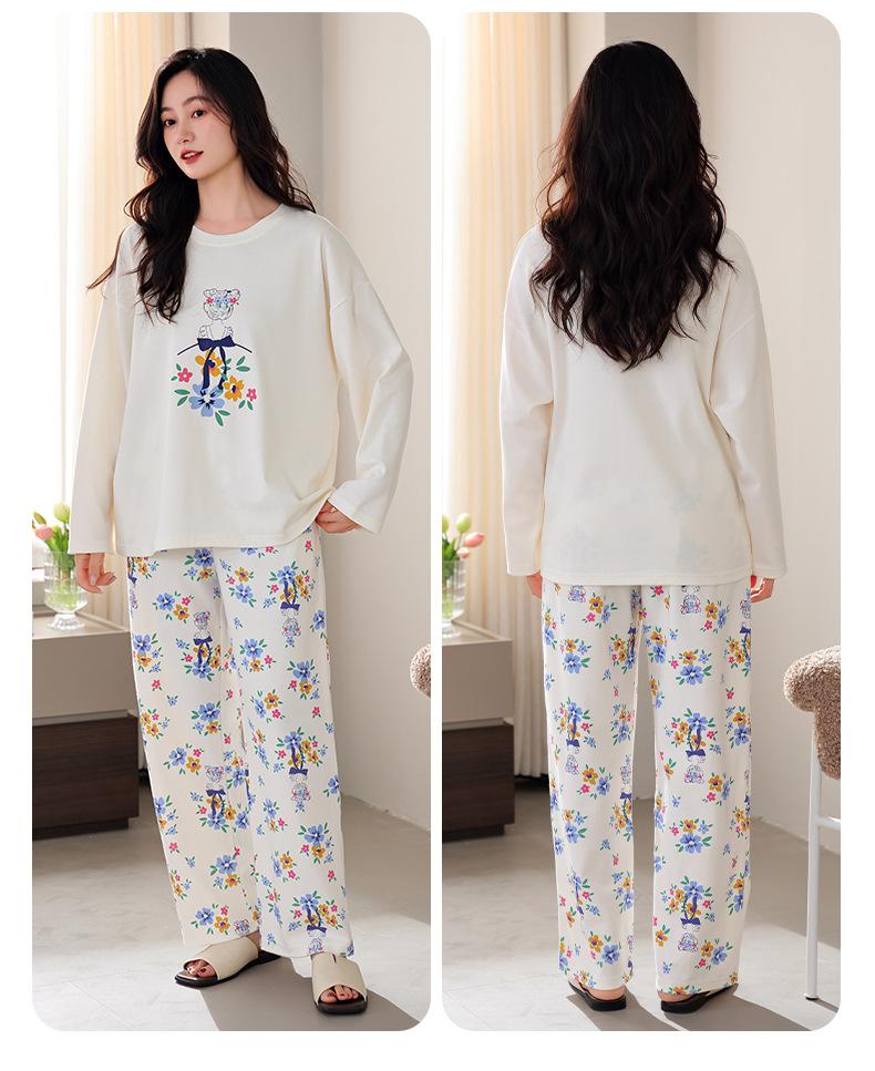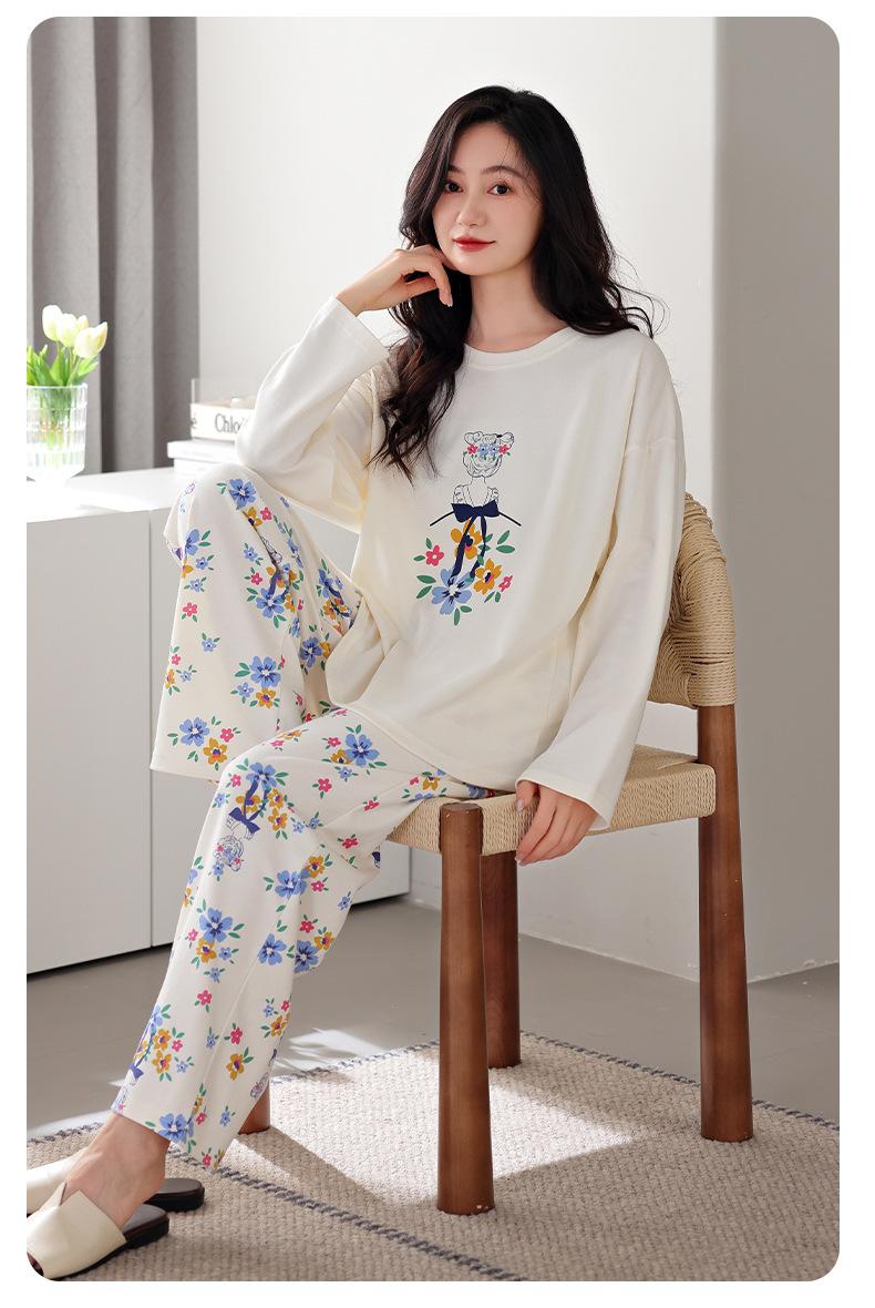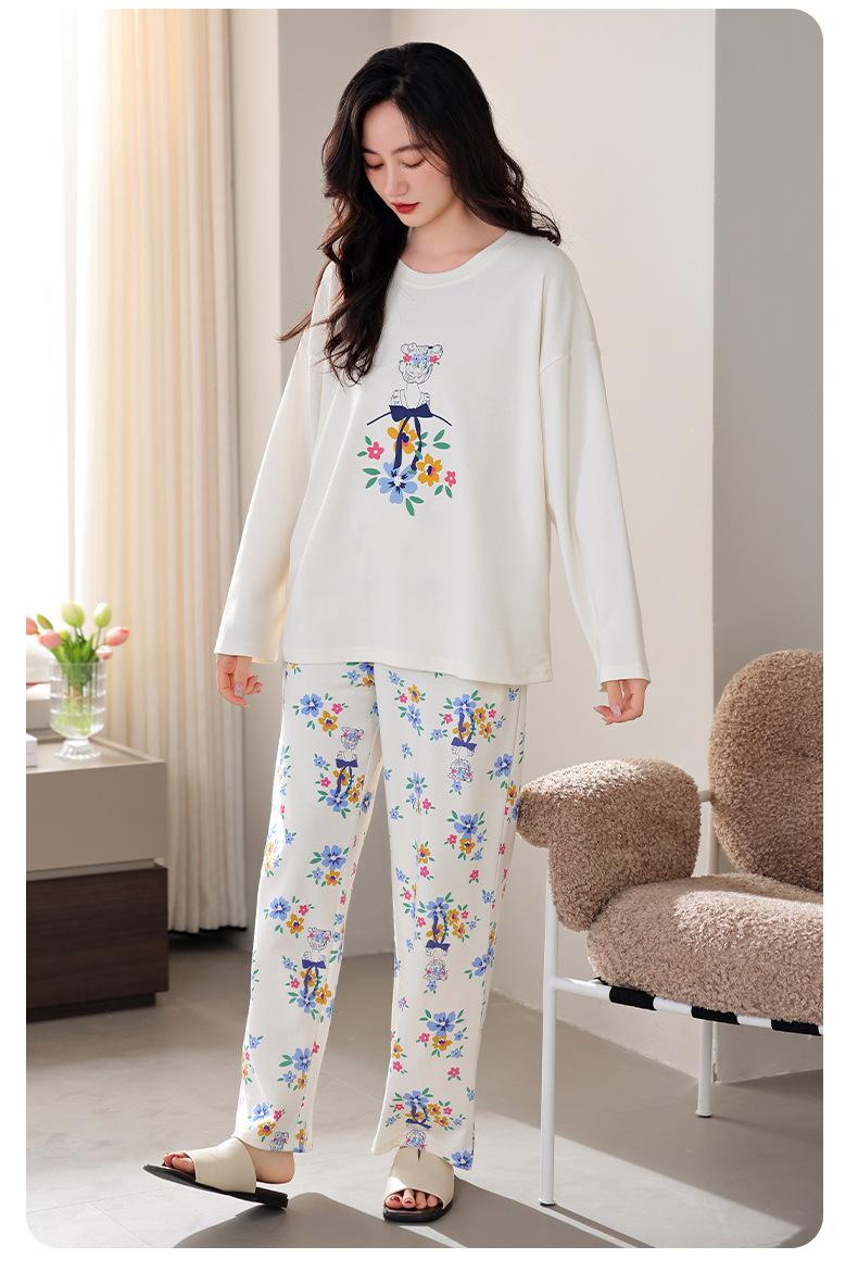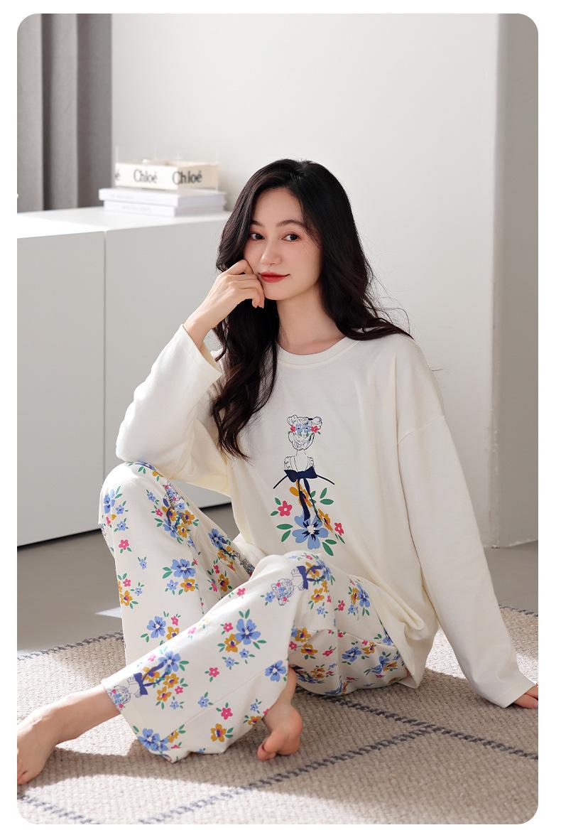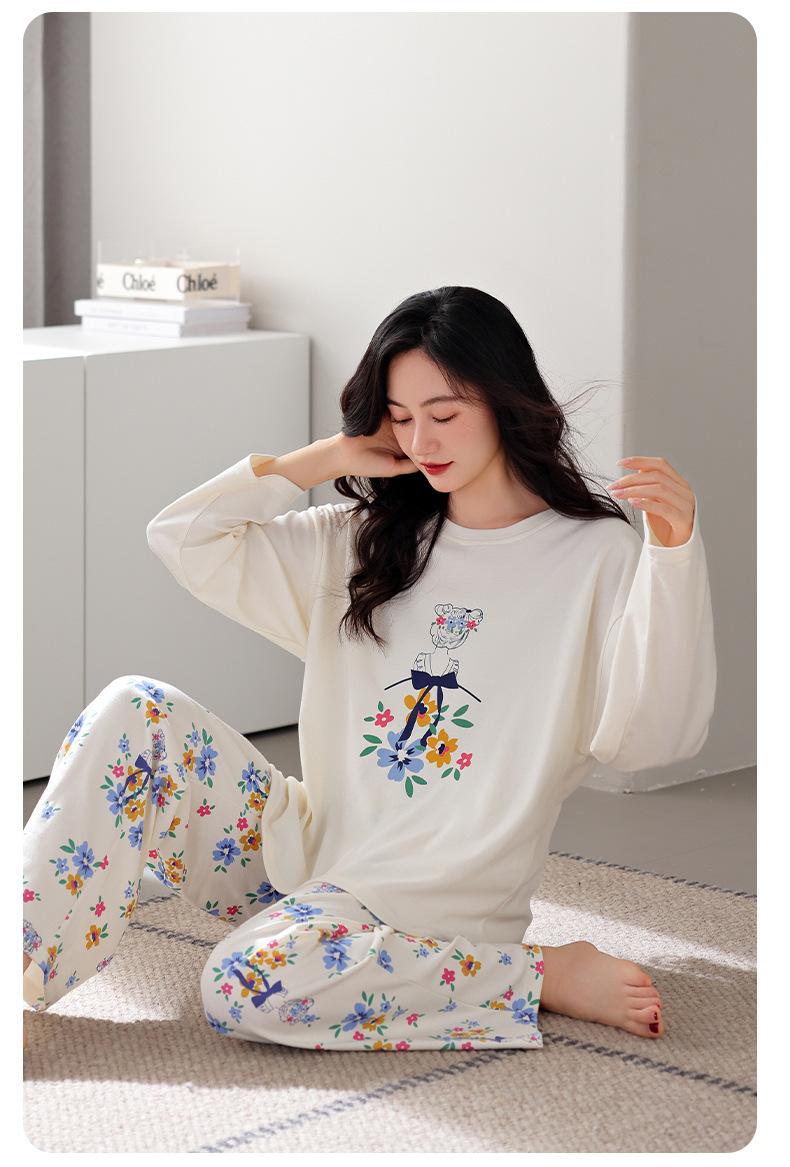 Pijamas antibacterianos blancos para mujer, primavera y otoño, algodón puro, finos, de manga larga, para niña, otoño, ropa de casa de alta gama, traje de talla grande