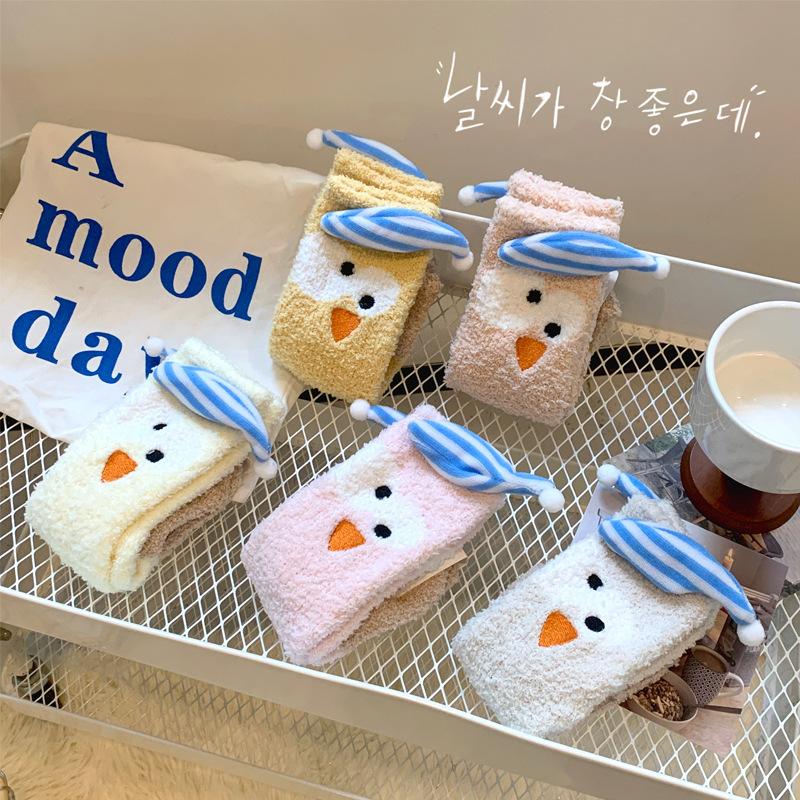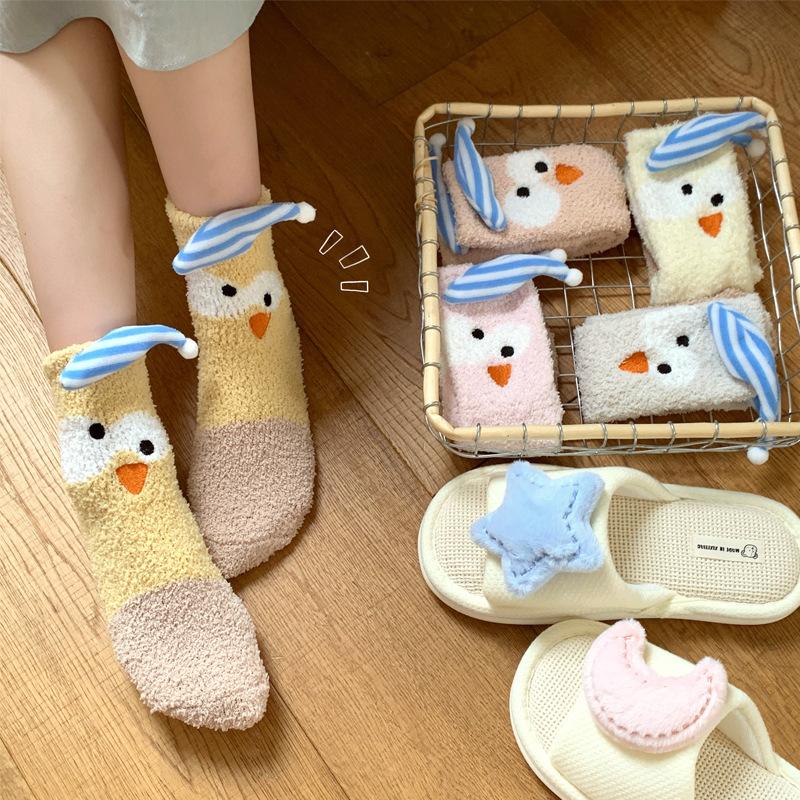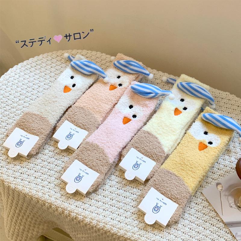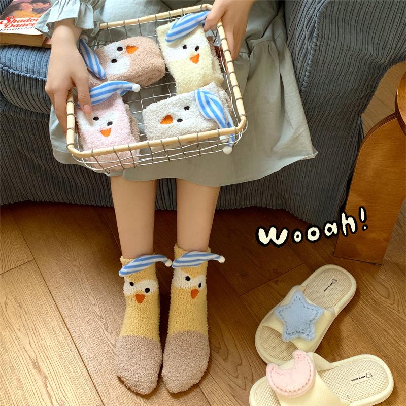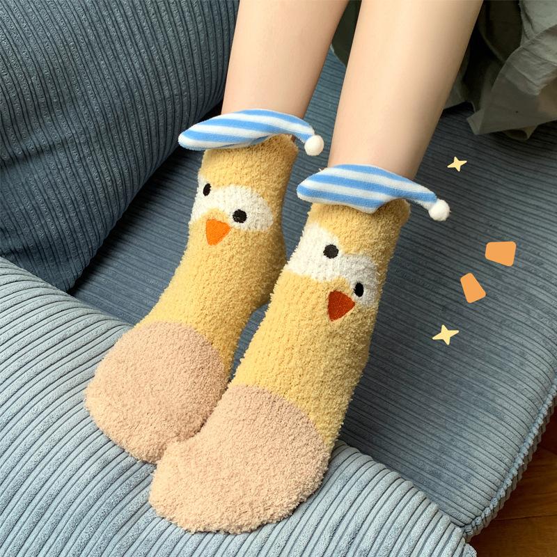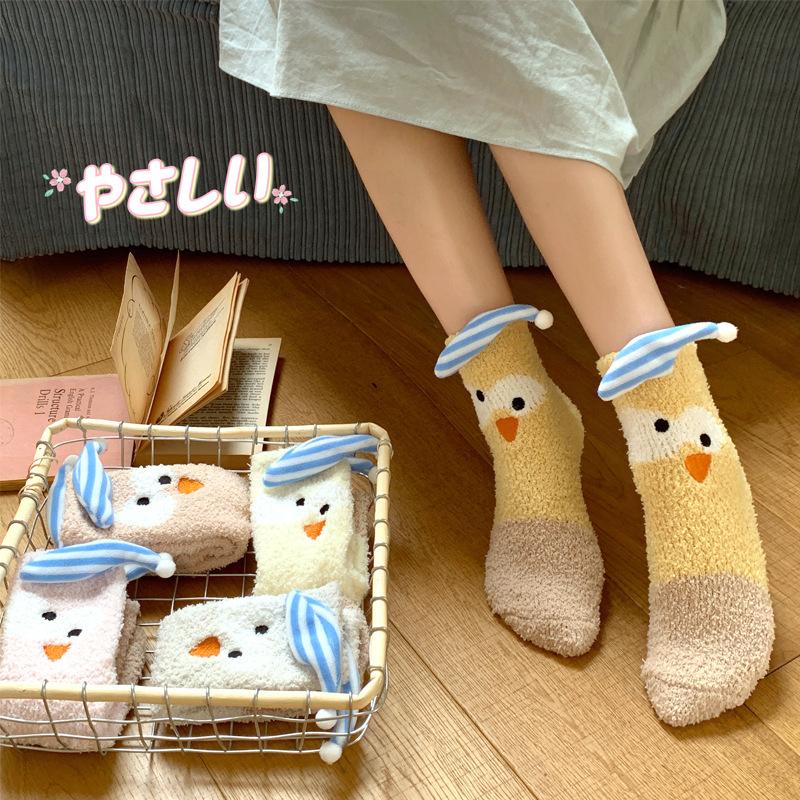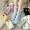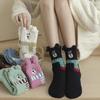 Calcetines de mujer con dibujos japoneses, bonitos calcetines de lana coral para el suelo, gruesos y cálidos para el hogar, para dormir después del parto.