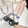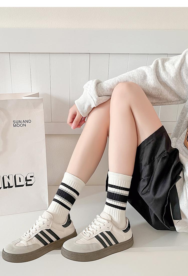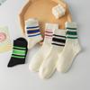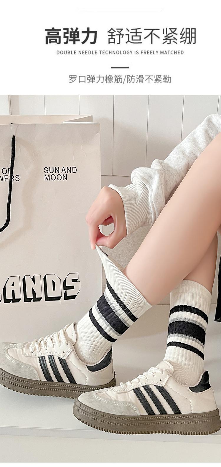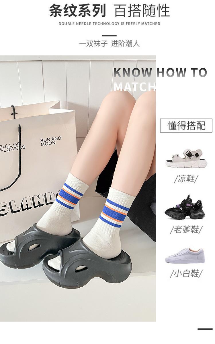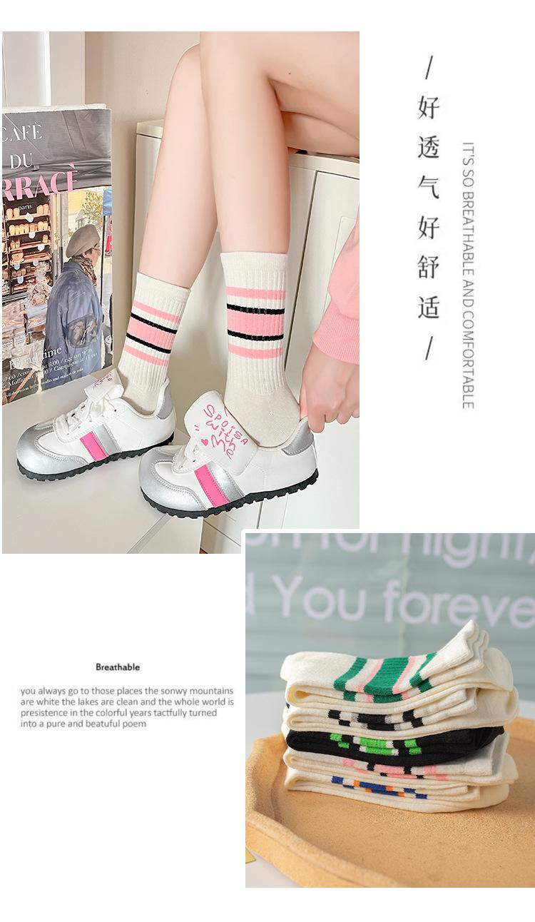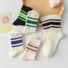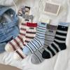 Calcetines de mujer a rayas de longitud media, transpirables, combinables, de otoño e invierno, de moda, populares en Internet, para estudiantes.