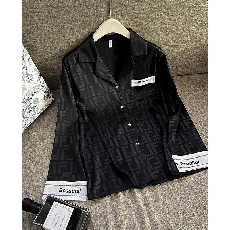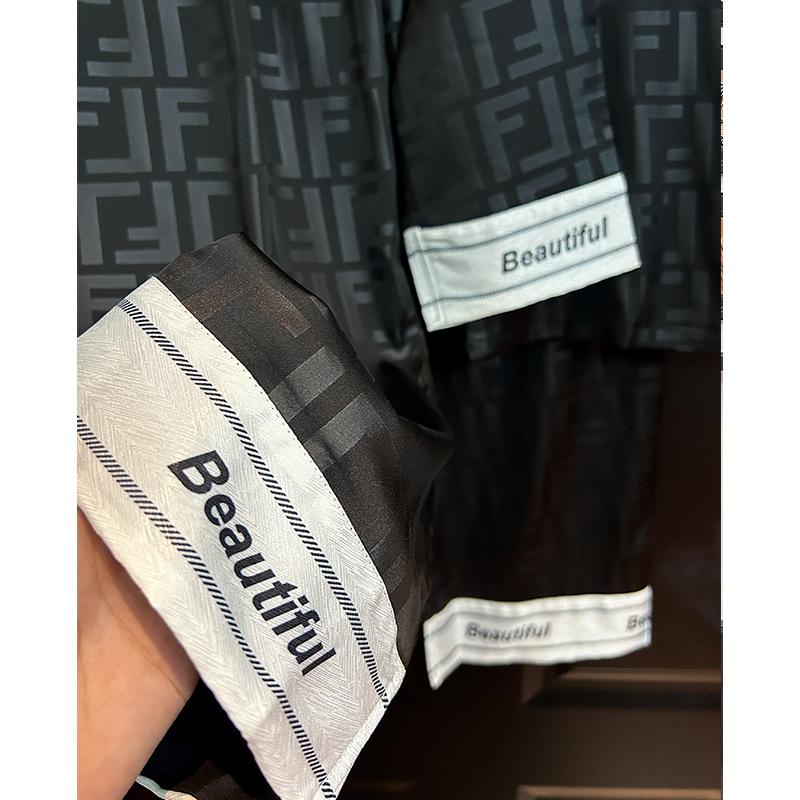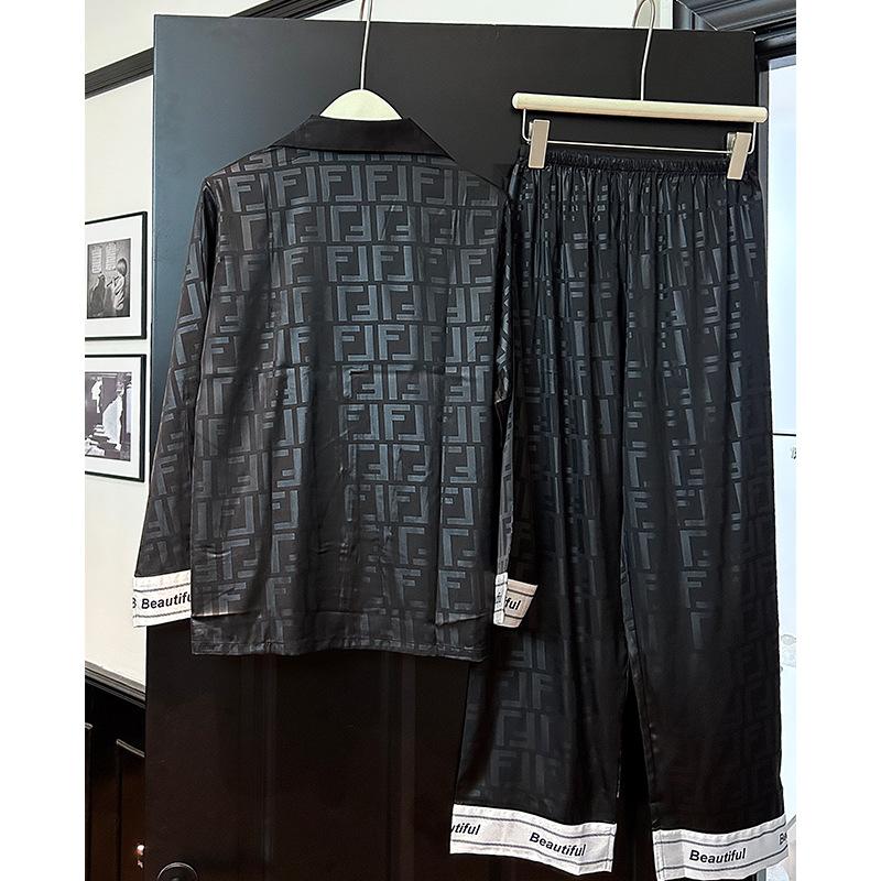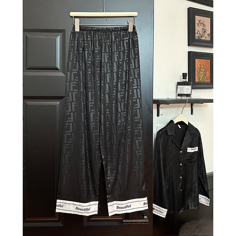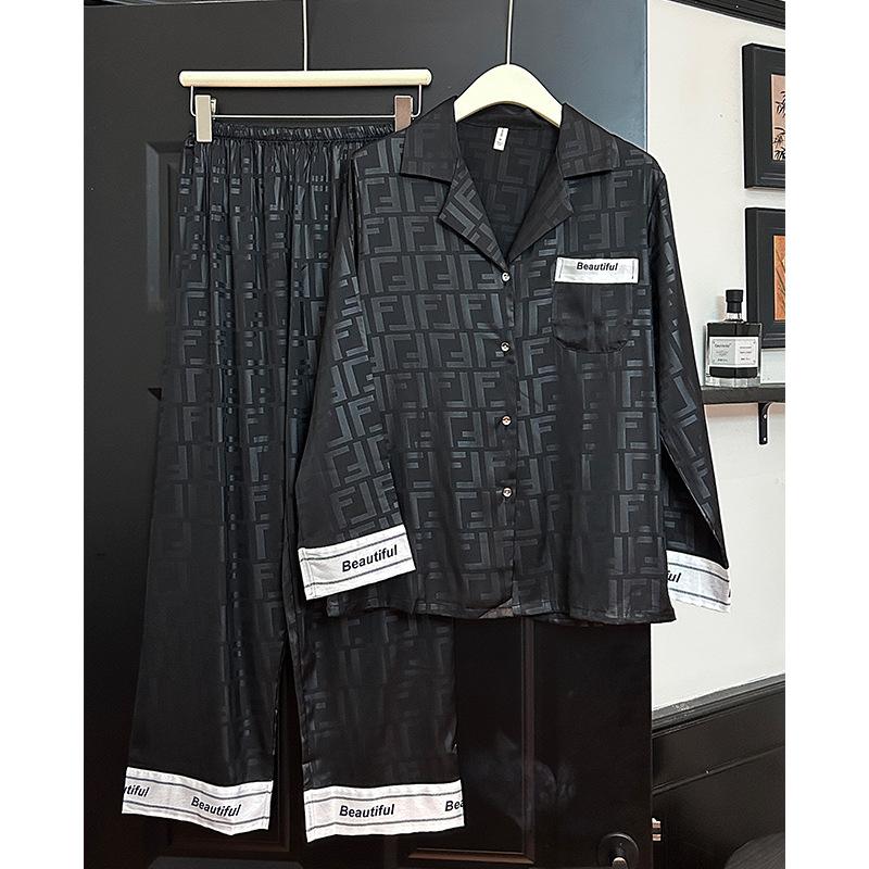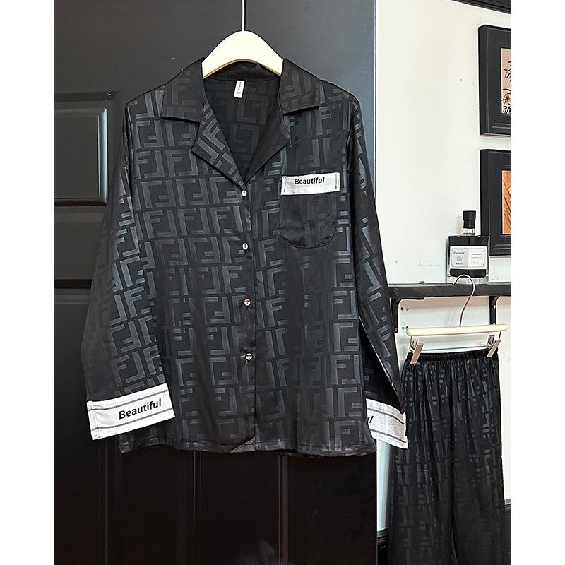 Pijama Jacquard F de Lujo Ligero para Pareja Otoño e Invierno Manga Larga Seda de Hielo Cómodo Traje de Ropa para el Hogar