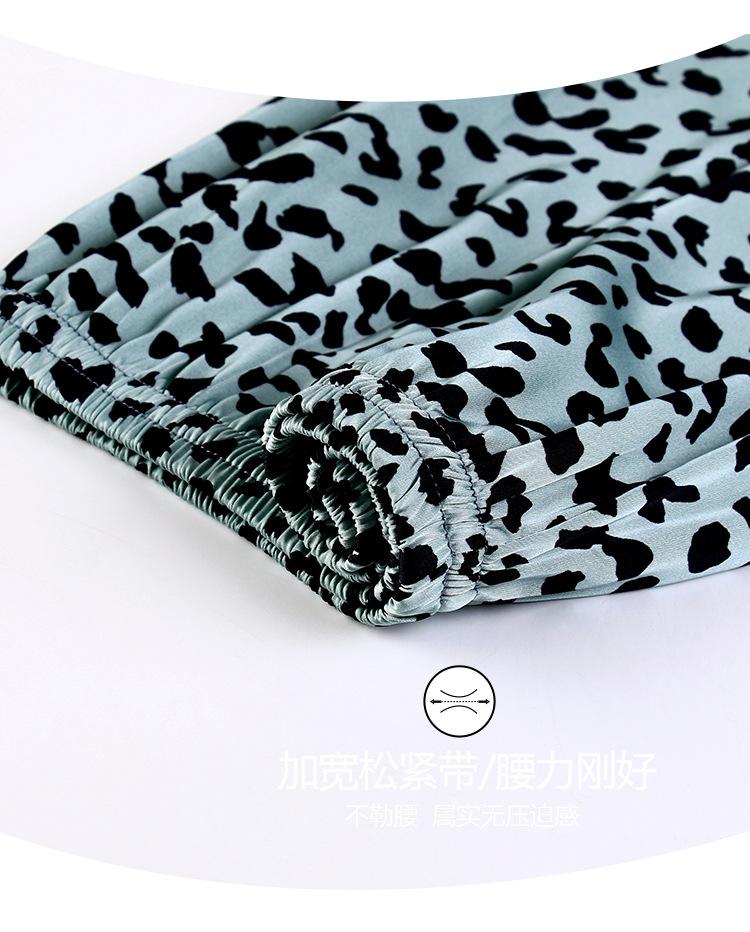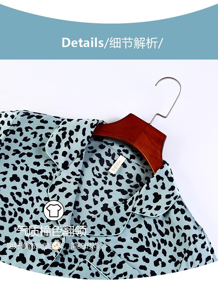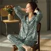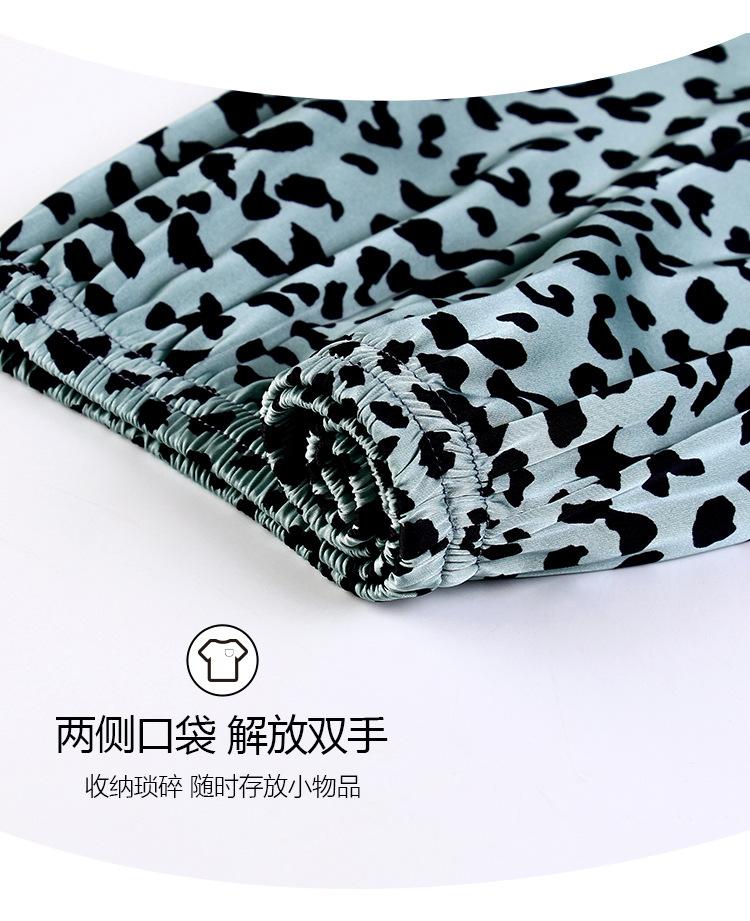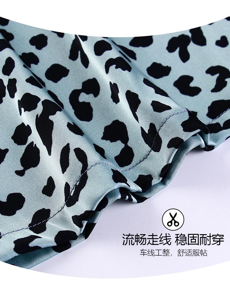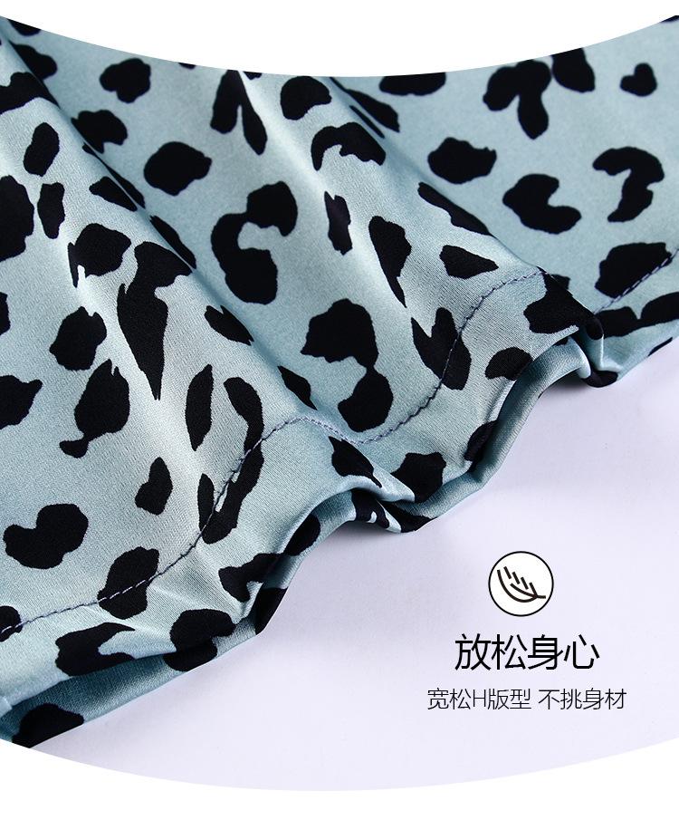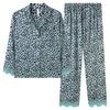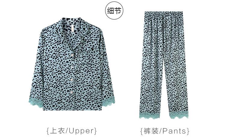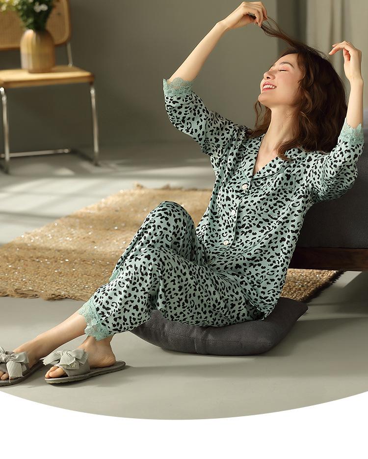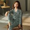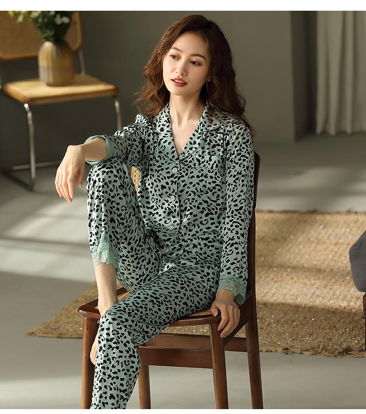 Pijama Feminino Primavera & Outono Seda Gelo Manga Longa Primavera e Verão Fino 2025 Novo Estampa de Leopardo Seda Verão Conjunto Roupa de Casa