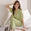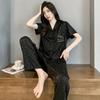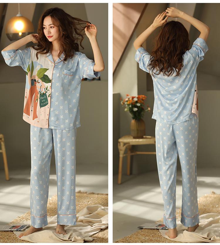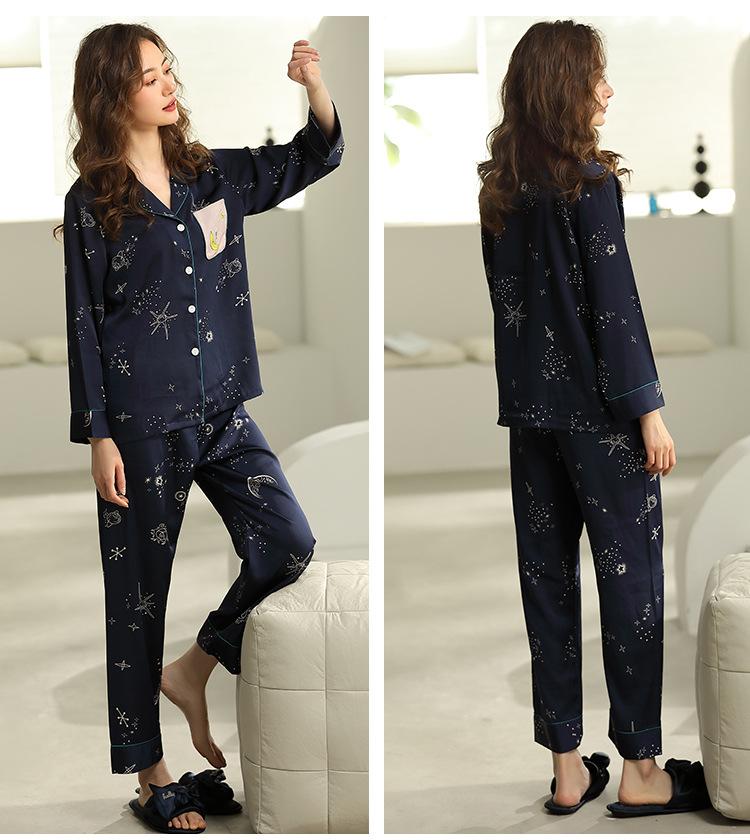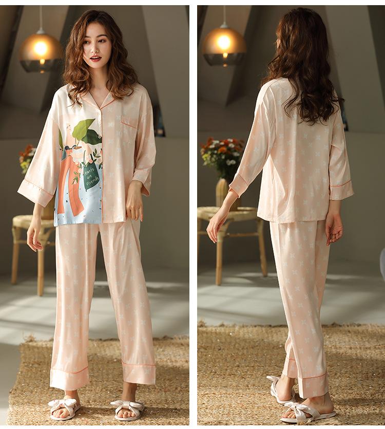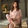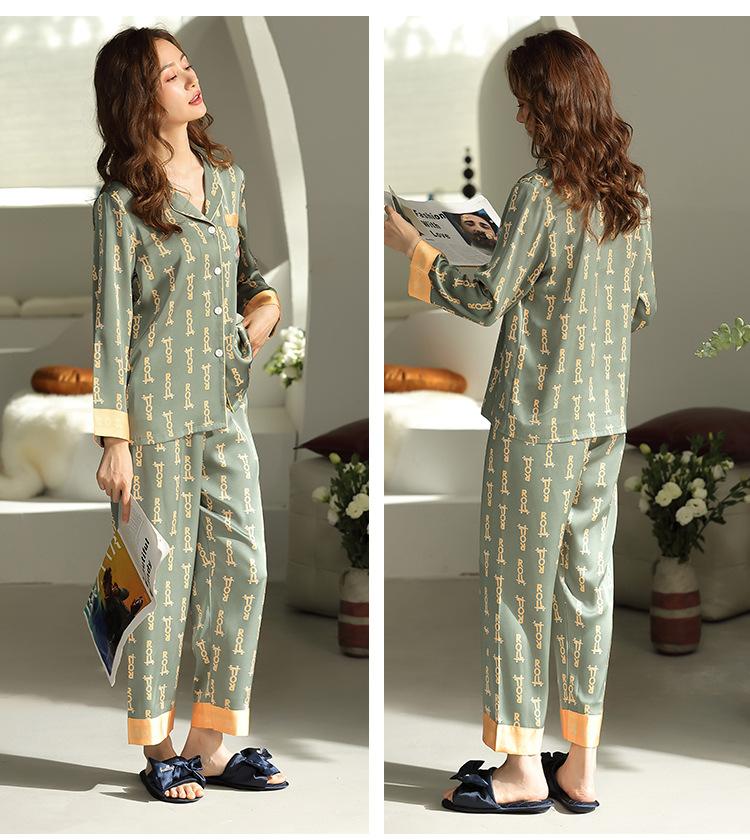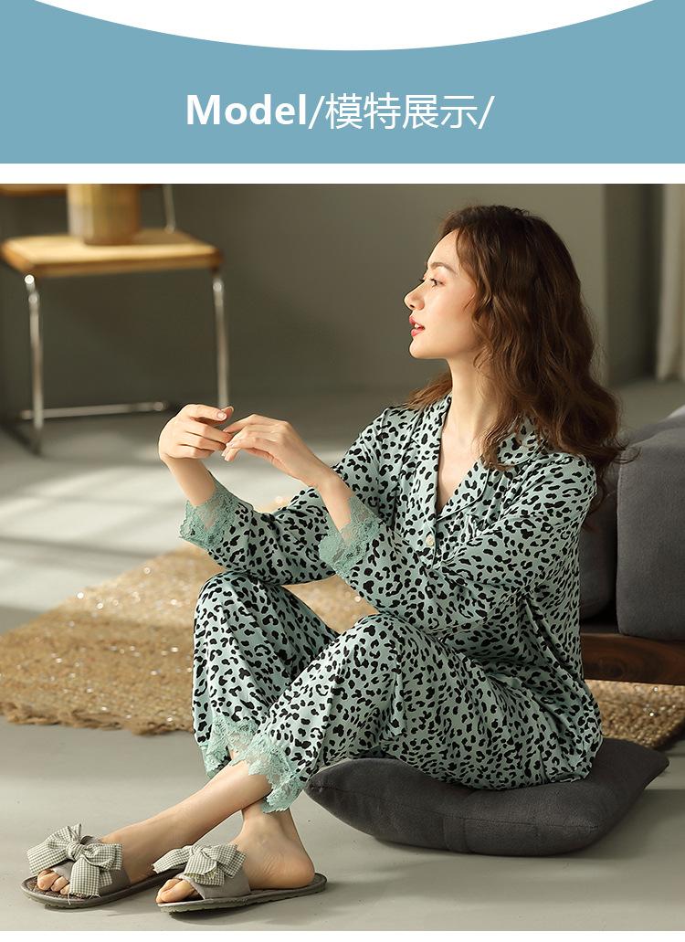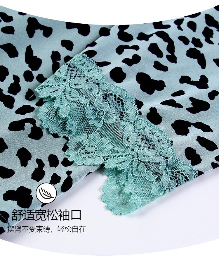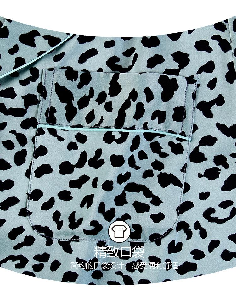 Pijama Feminino Primavera & Outono Seda Gelo Manga Longa Primavera e Verão Fino 2025 Novo Estampa de Leopardo Seda Verão Conjunto Roupa de Casa