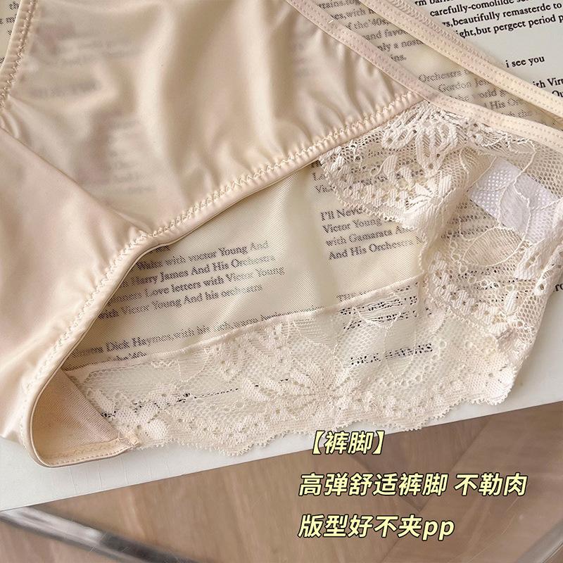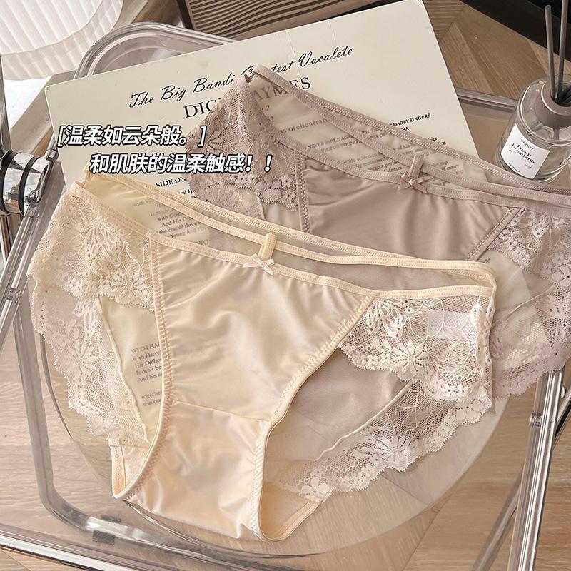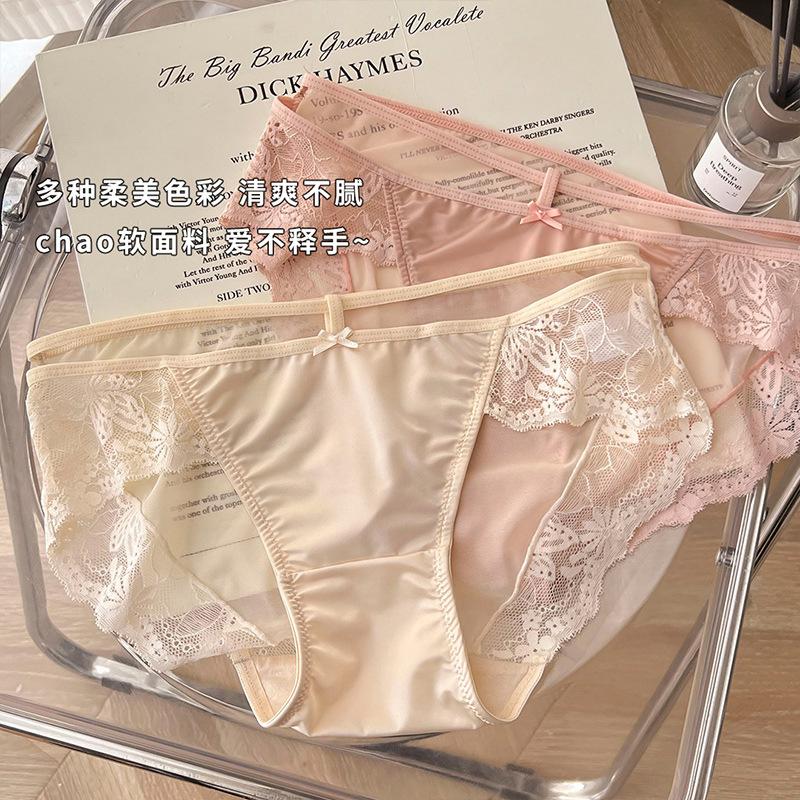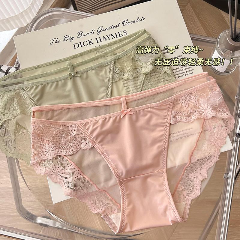 Ropa interior de encaje estilo francés Sexy Girl Calzones de puro deseo Sin marcas Seda de hielo Verano Pantalones cruzados Pantalones transpirables de secado rápido