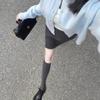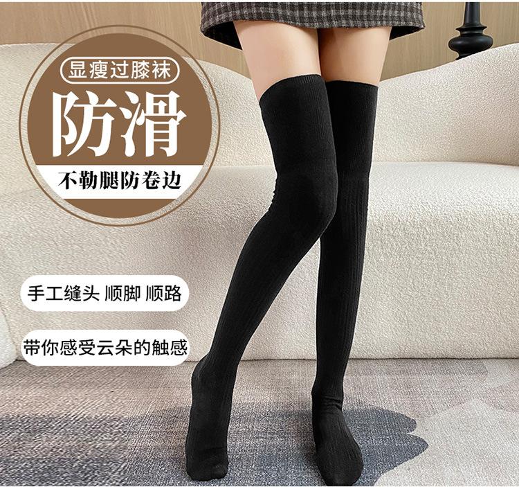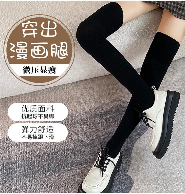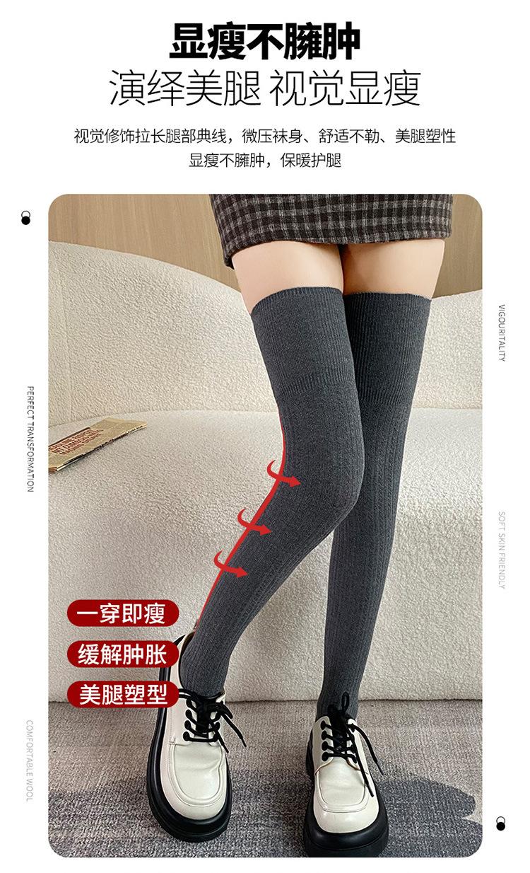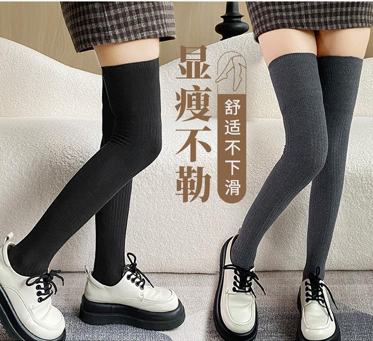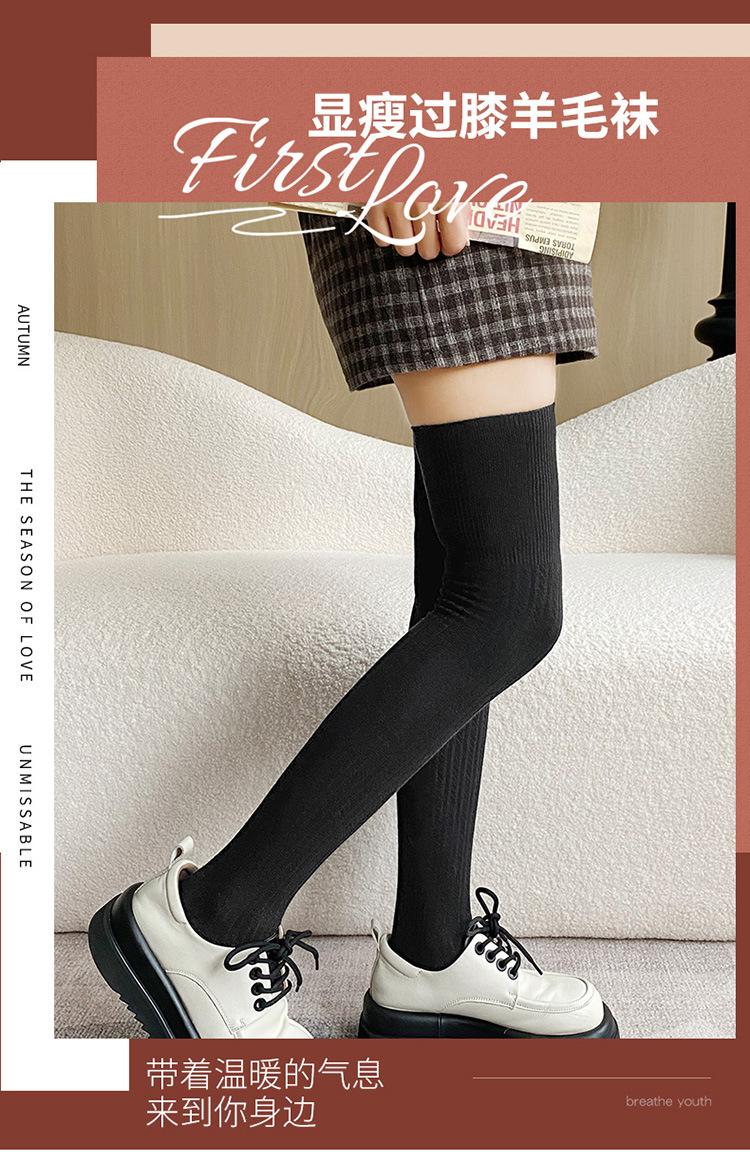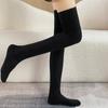 Calcetines hasta la rodilla adelgazantes para mujer primavera y otoño lana peinada negro medias estilo coreano otoño e invierno medias hasta el muslo