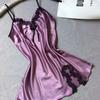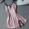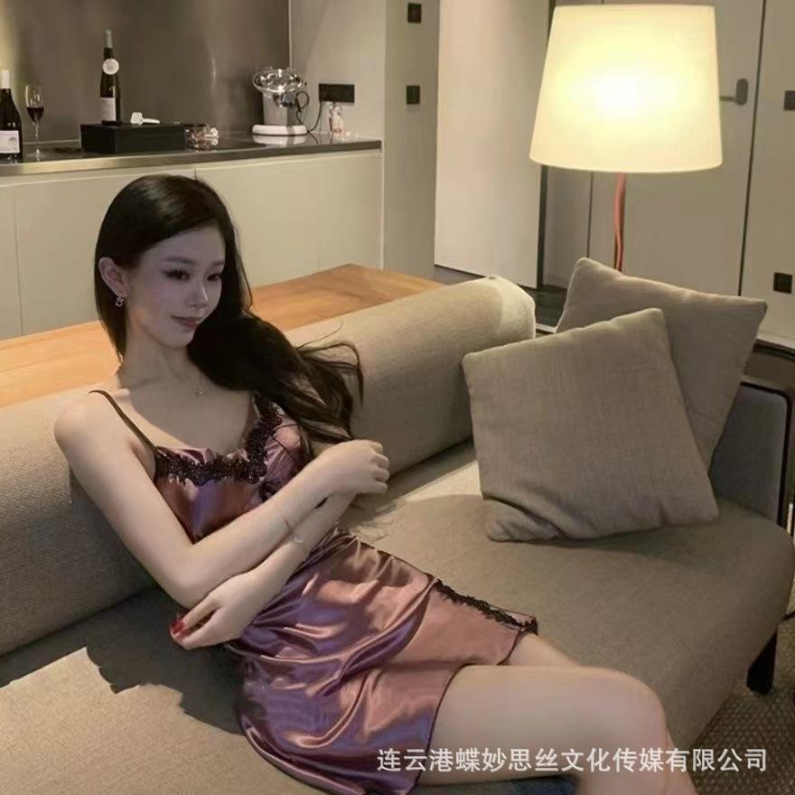 Camisón de Seda Miao Si de Mariposa Satén Sexy Tentación Ropa de Dormir Camisola de Alta Gama Vestido con Encaje Sexy Escote en V Hogar a