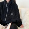 Pijama cálido de forro polar coral con estampado de lazo de oso de melocotón para mujer, ropa de invierno cómoda y cálida para el hogar