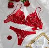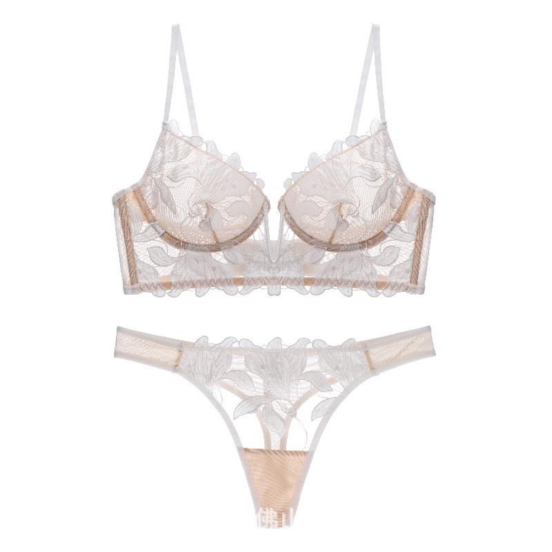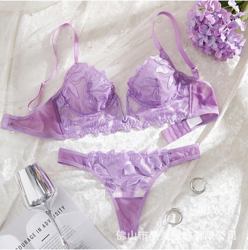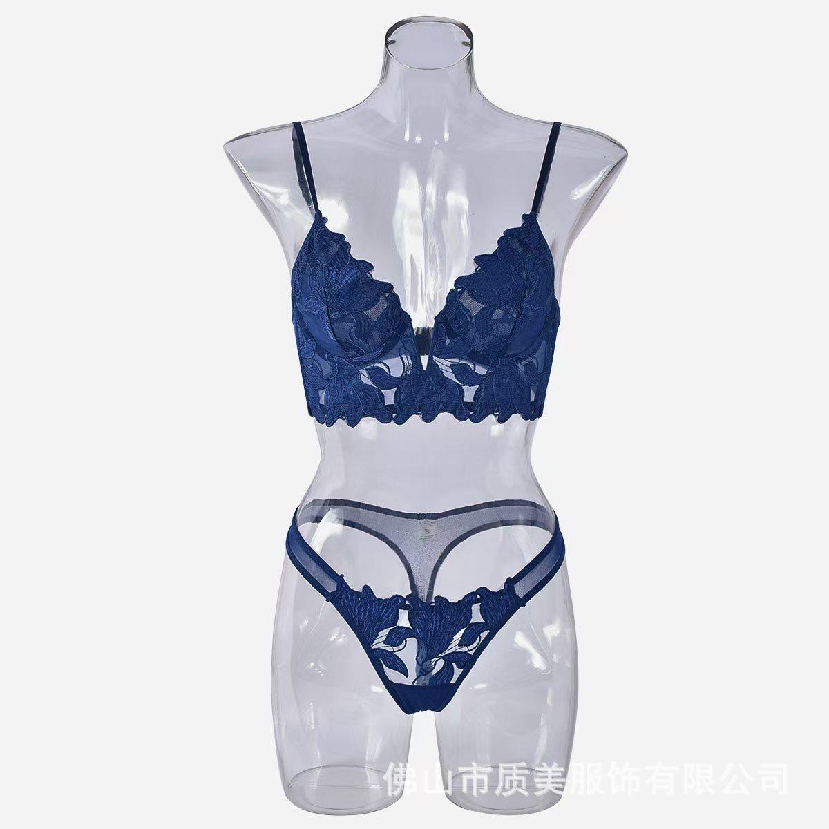 Ropa interior con bordado francés transfronterizo, fina, sexy, con escote en V profundo y anillos de acero que fruncen la parte superior de la espalda, traje 23094