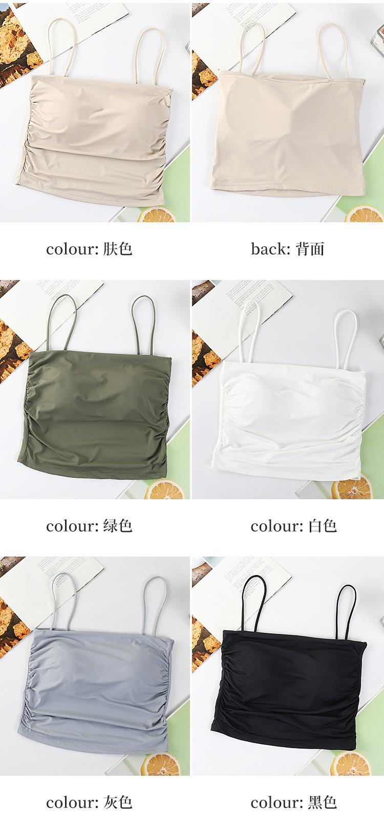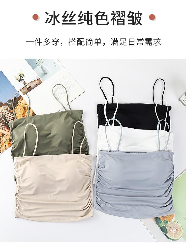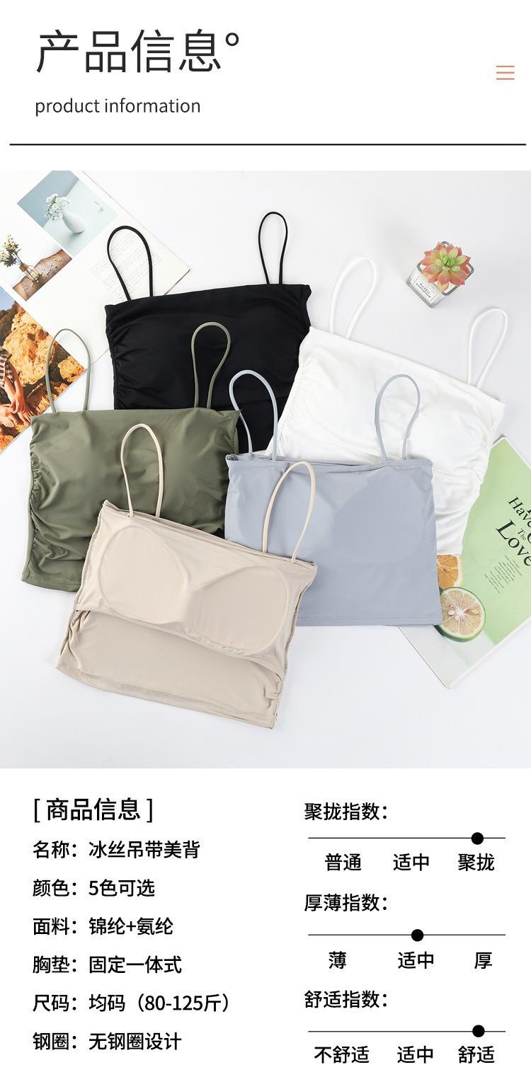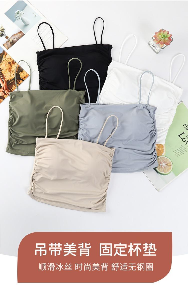 Camisola de seda helada para mujer, ropa interior con copas fijas y plisadas, con espalda hermosa y deseo puro, que envuelve el pecho.