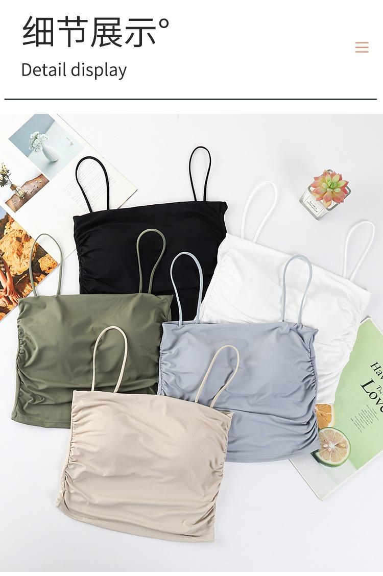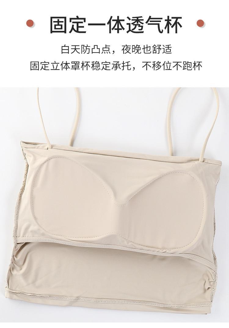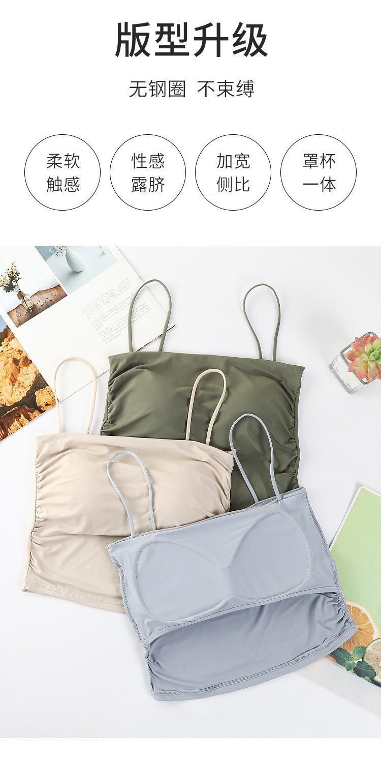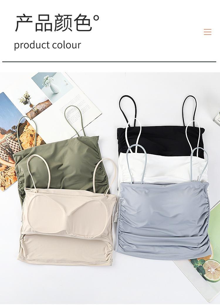 Camisola de seda helada para mujer, ropa interior con copas fijas y plisadas, con espalda hermosa y deseo puro, que envuelve el pecho.