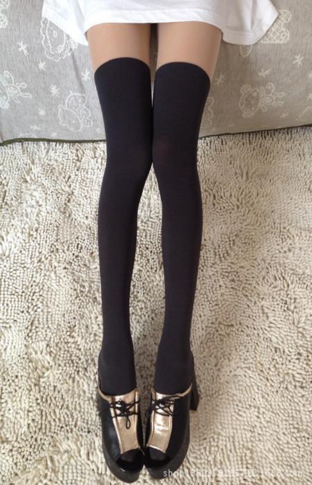 Medias altas falsas hasta la rodilla de color piel superior y costuras negras inferiores, calcetines básicos falsos hasta el muslo, exportación, calcetines diarios para un solo día