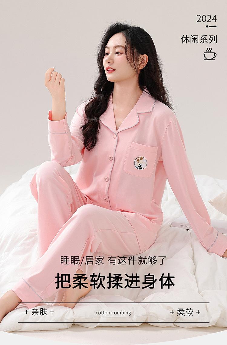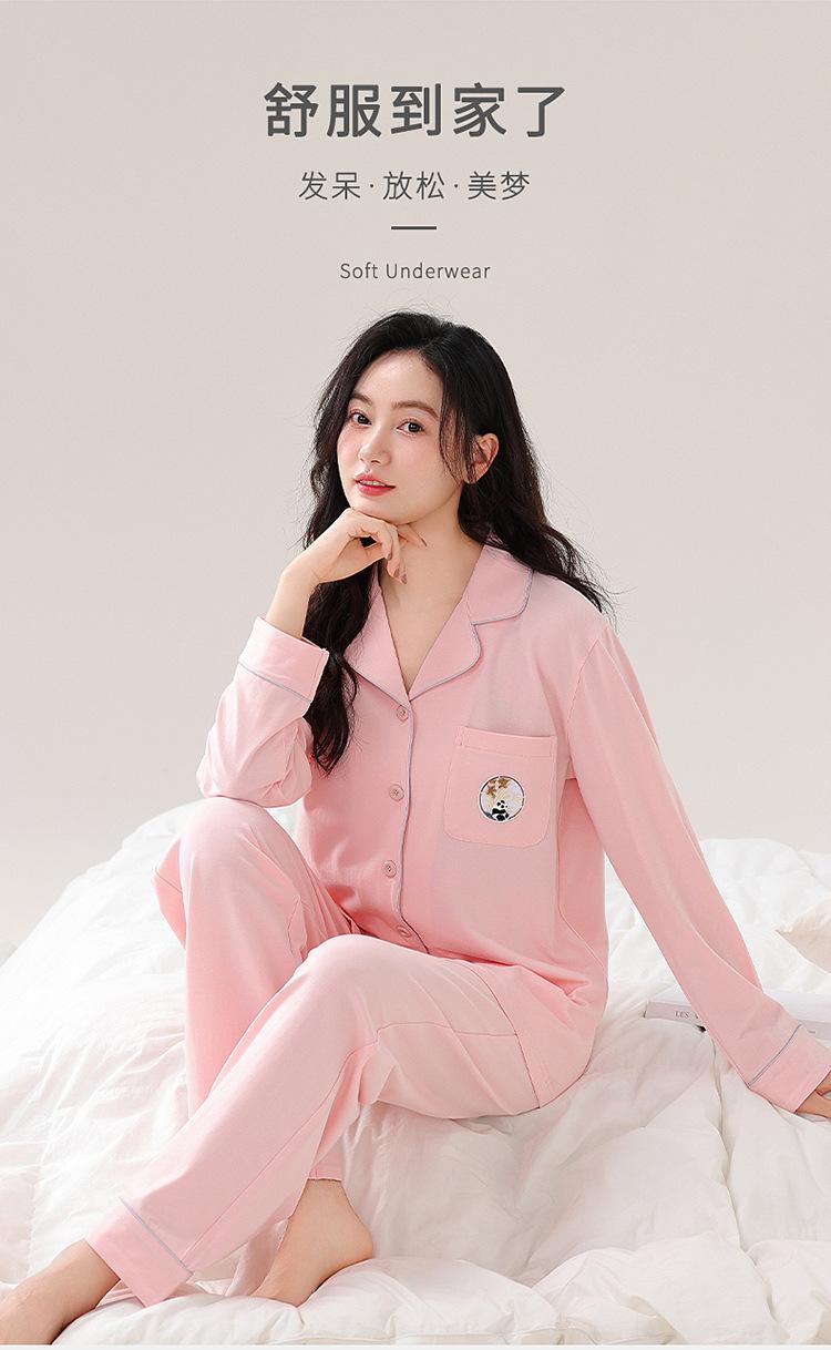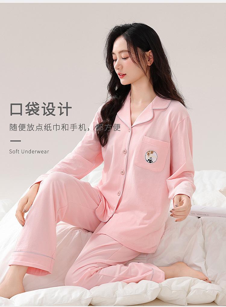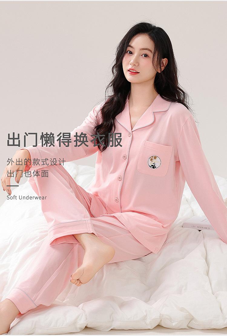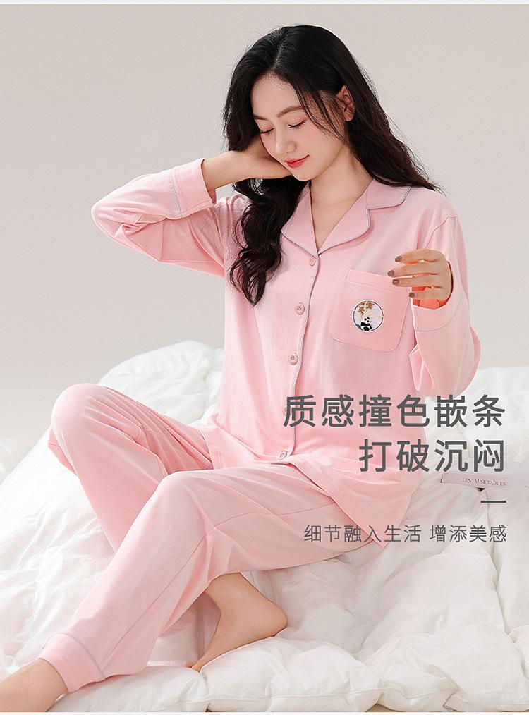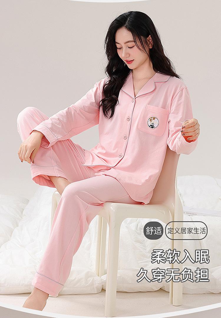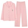 Pijamas de mujer de primavera y otoño de algodón puro, nuevos y finos, para el hogar, cárdigan con solapa, sencillo, de talla grande, conjunto de dos piezas para el hogar para niñas.
