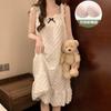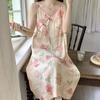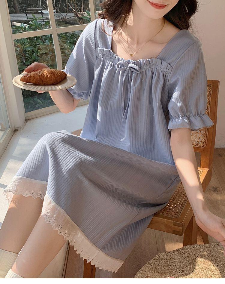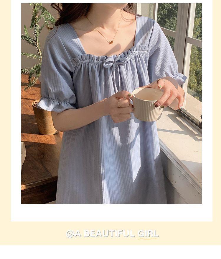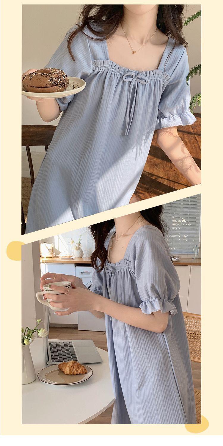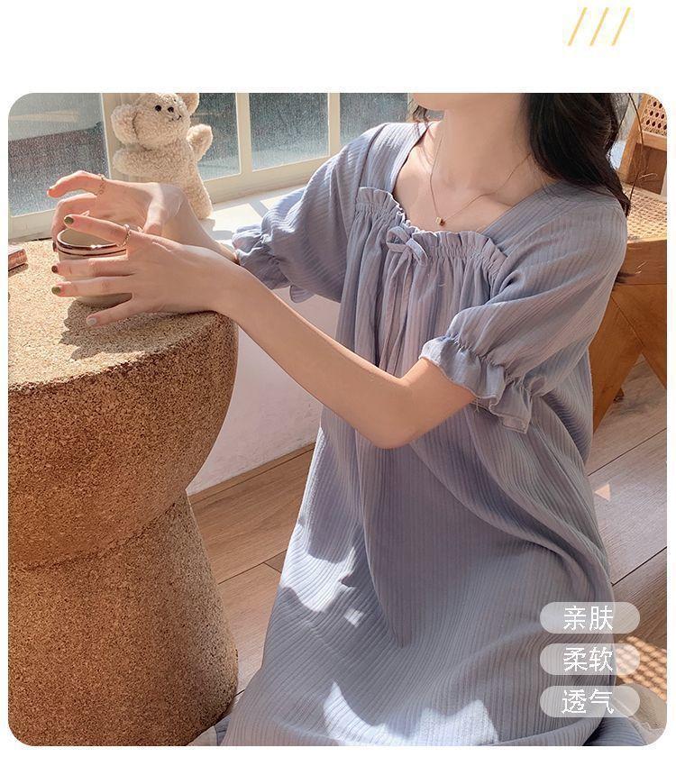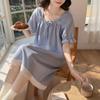 Camisón de verano para mujer, nuevo estilo popular, estilo veraniego, pequeño, de algodón puro, para embarazadas, de alta gama, de princesa, talla grande, pijama azul niebla