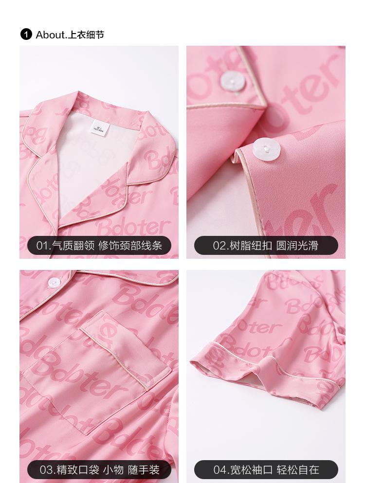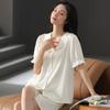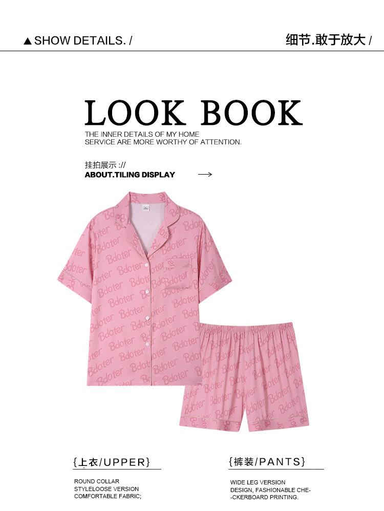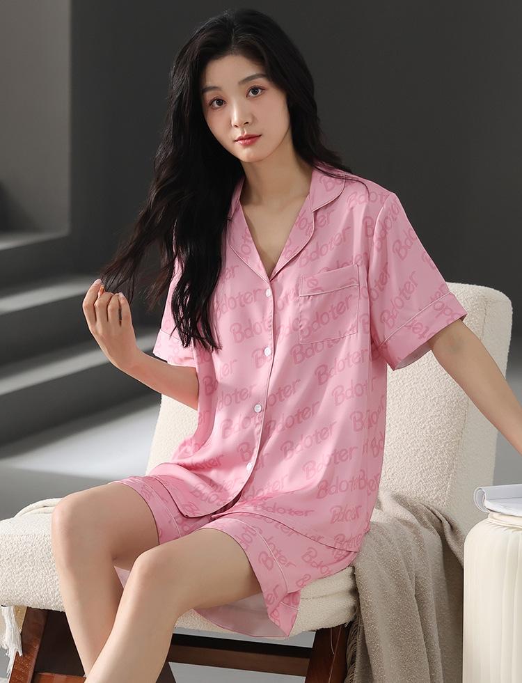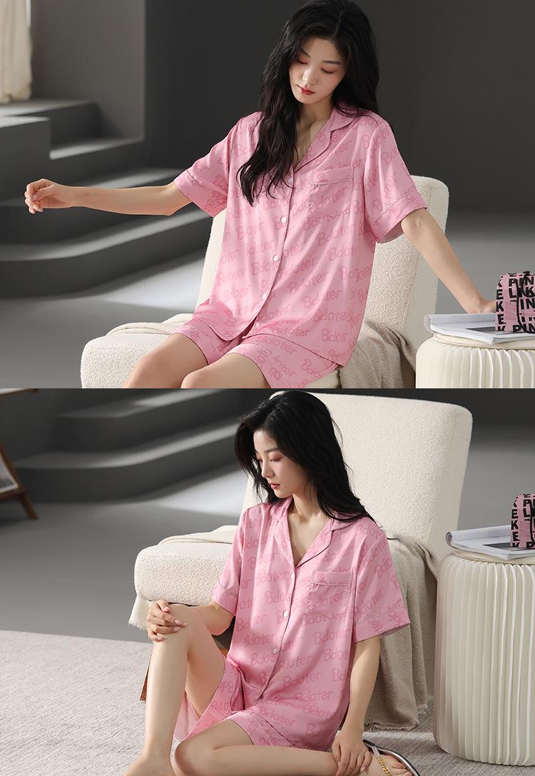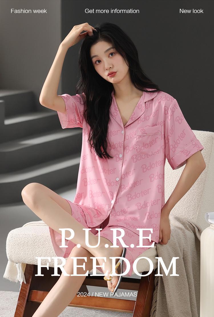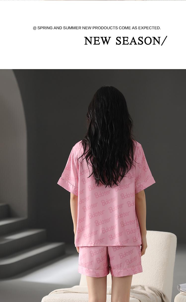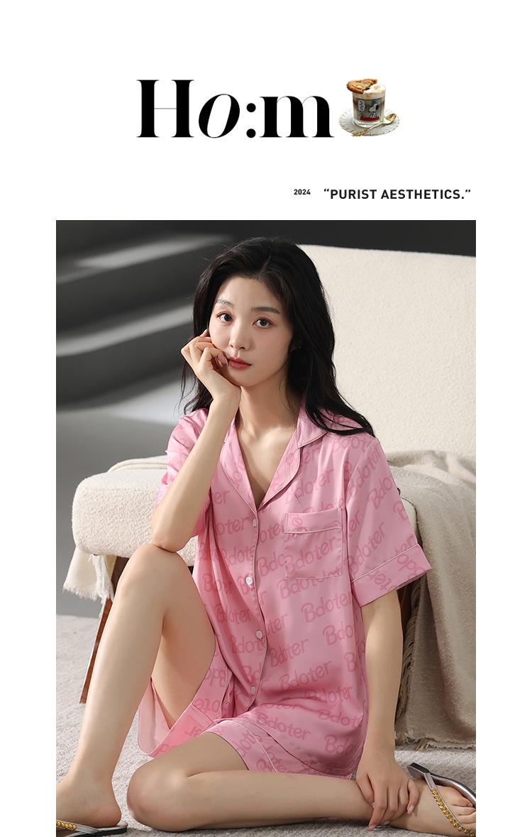Pijama de Verano para Mujer Verano Seda Seda de Hielo Manga Corta Shorts Tipo Seda Sensación Fresca Ropa para el Hogar Letras Traje Casual