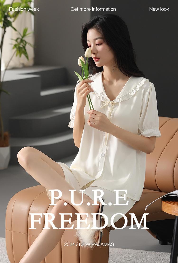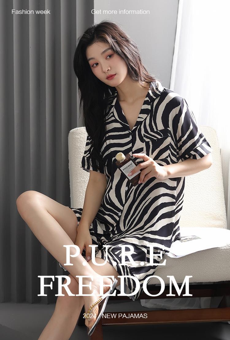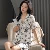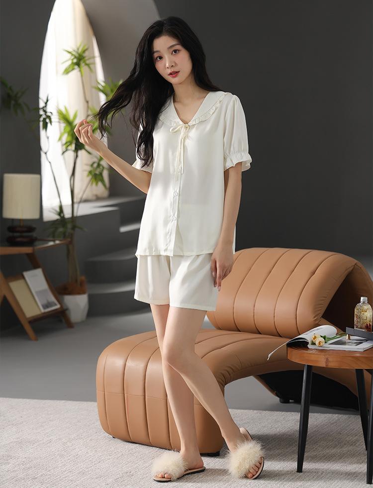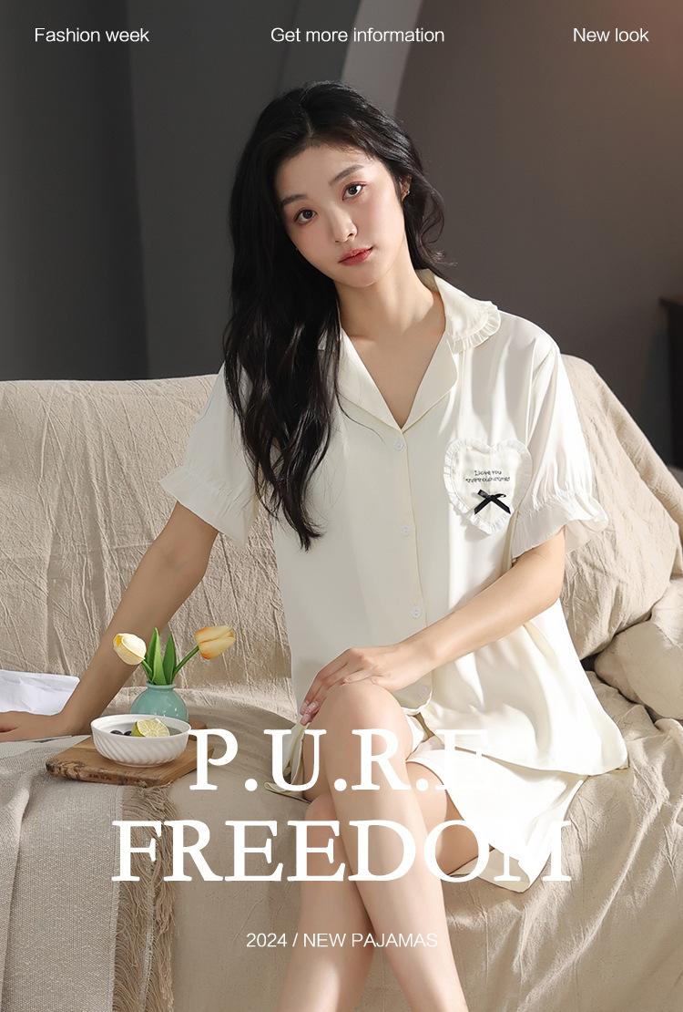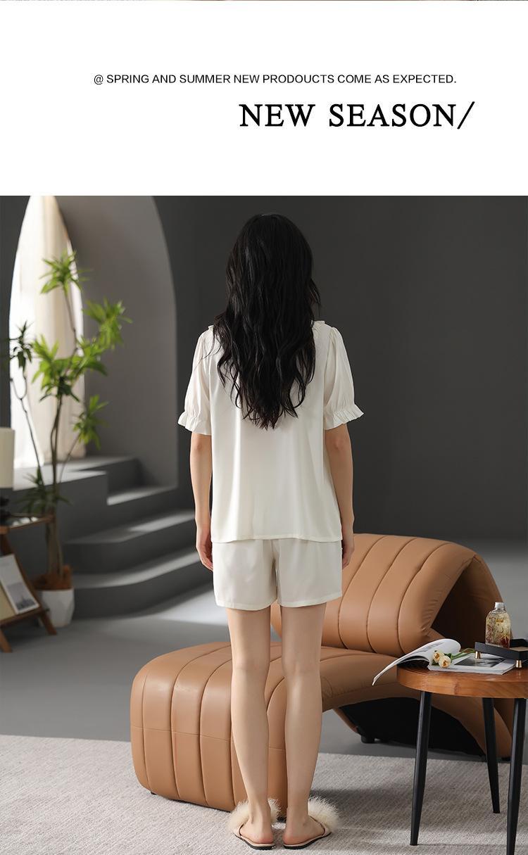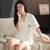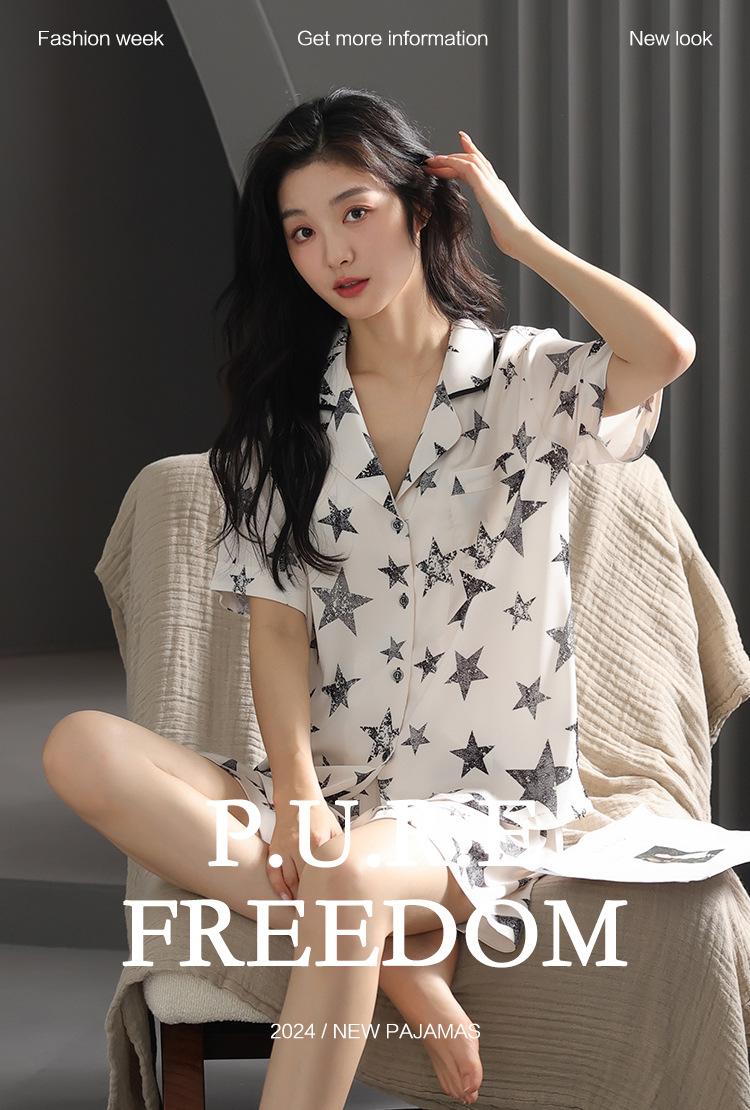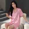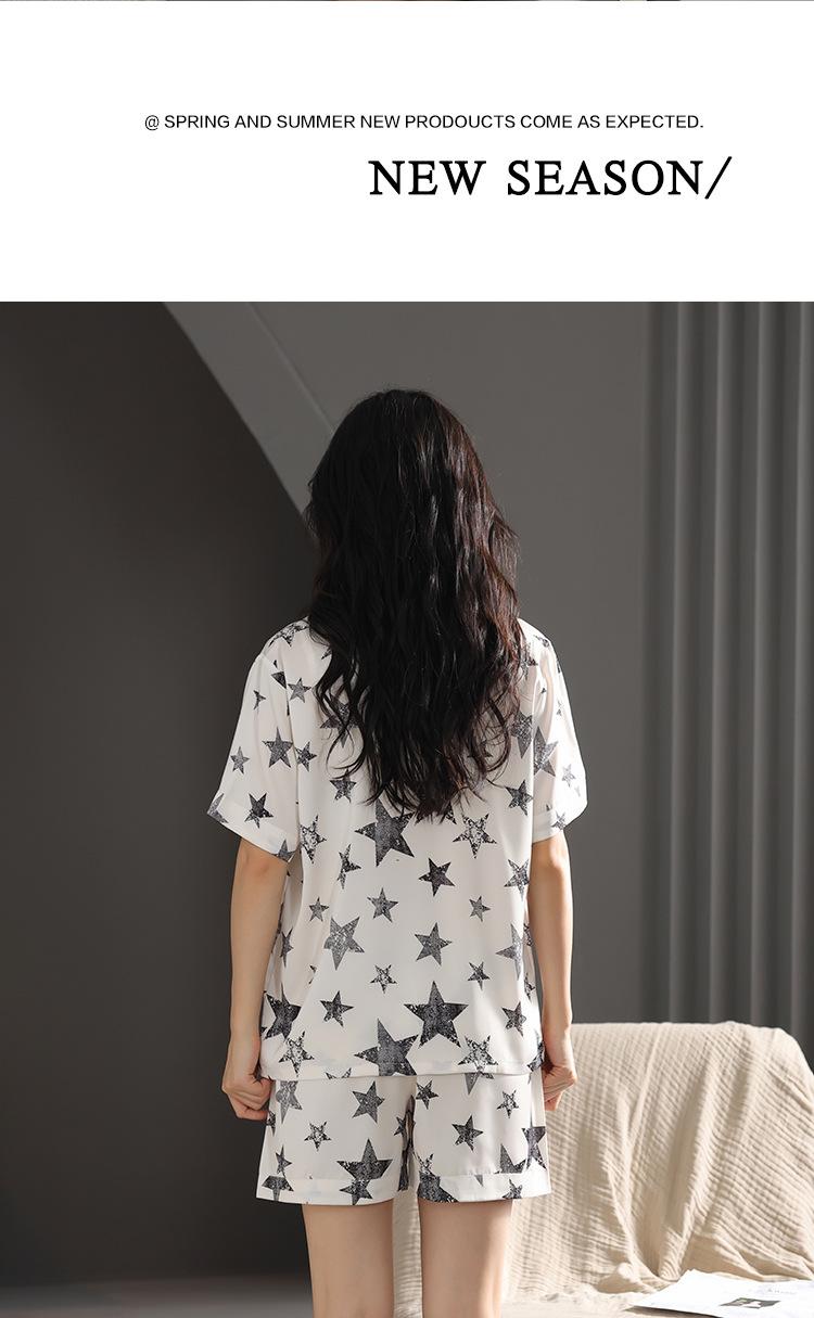 Pijama de Verano para Mujer Verano Seda Seda de Hielo Manga Corta Shorts Tipo Seda Sensación Fresca Ropa para el Hogar Letras Traje Casual
