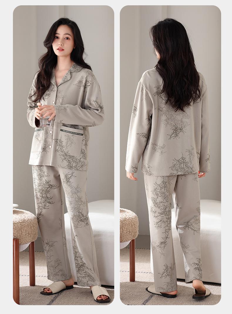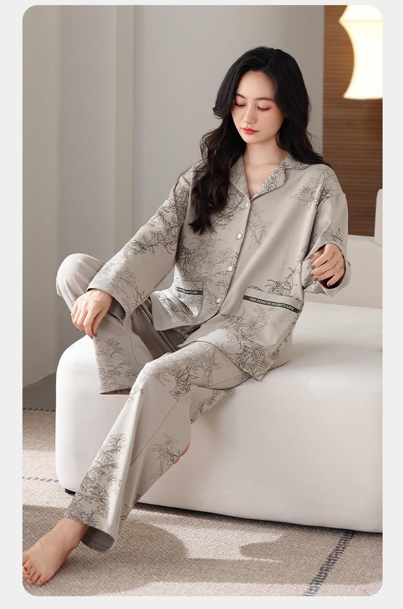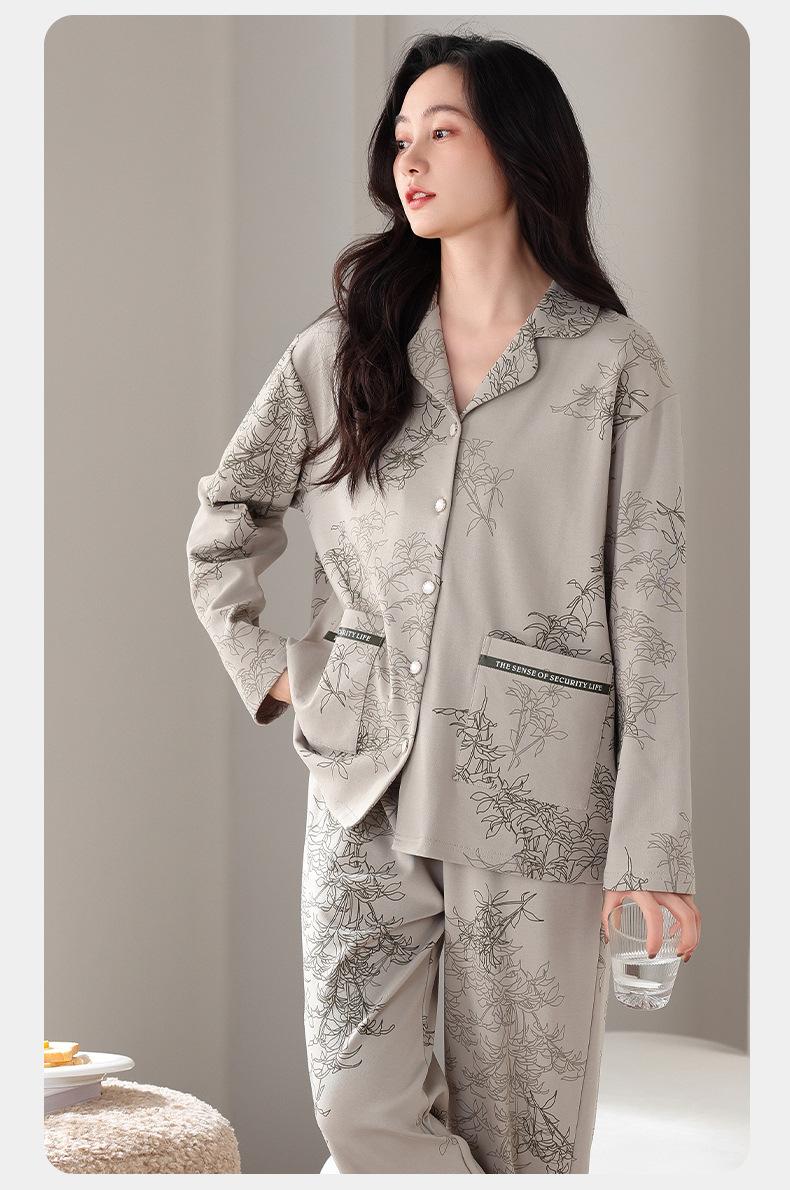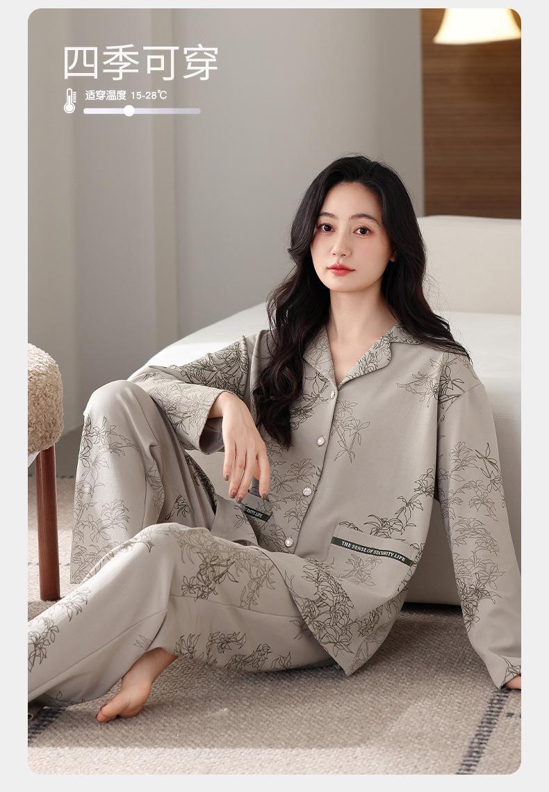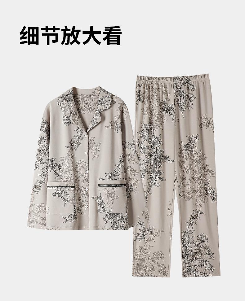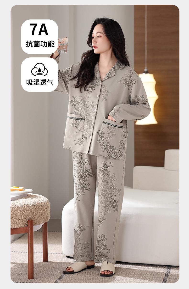 Pijamas antibacterianos 7A para mujer, primavera y otoño, algodón puro, fino, de manga larga, ropa de aire acondicionado para mamás, ropa de hogar de mediana edad, traje de otoño de talla grande