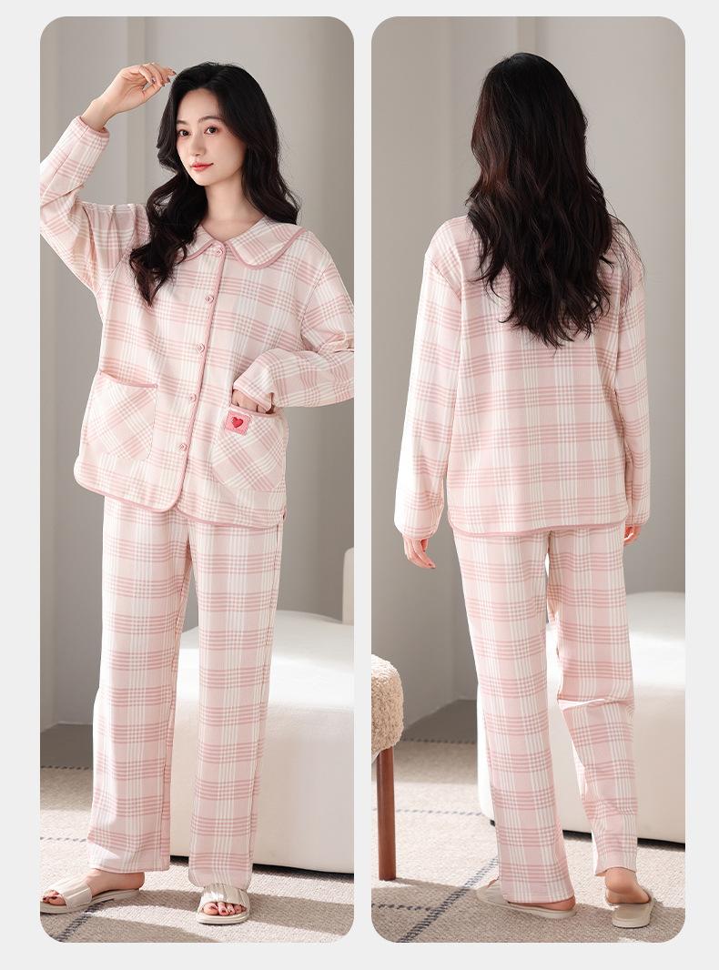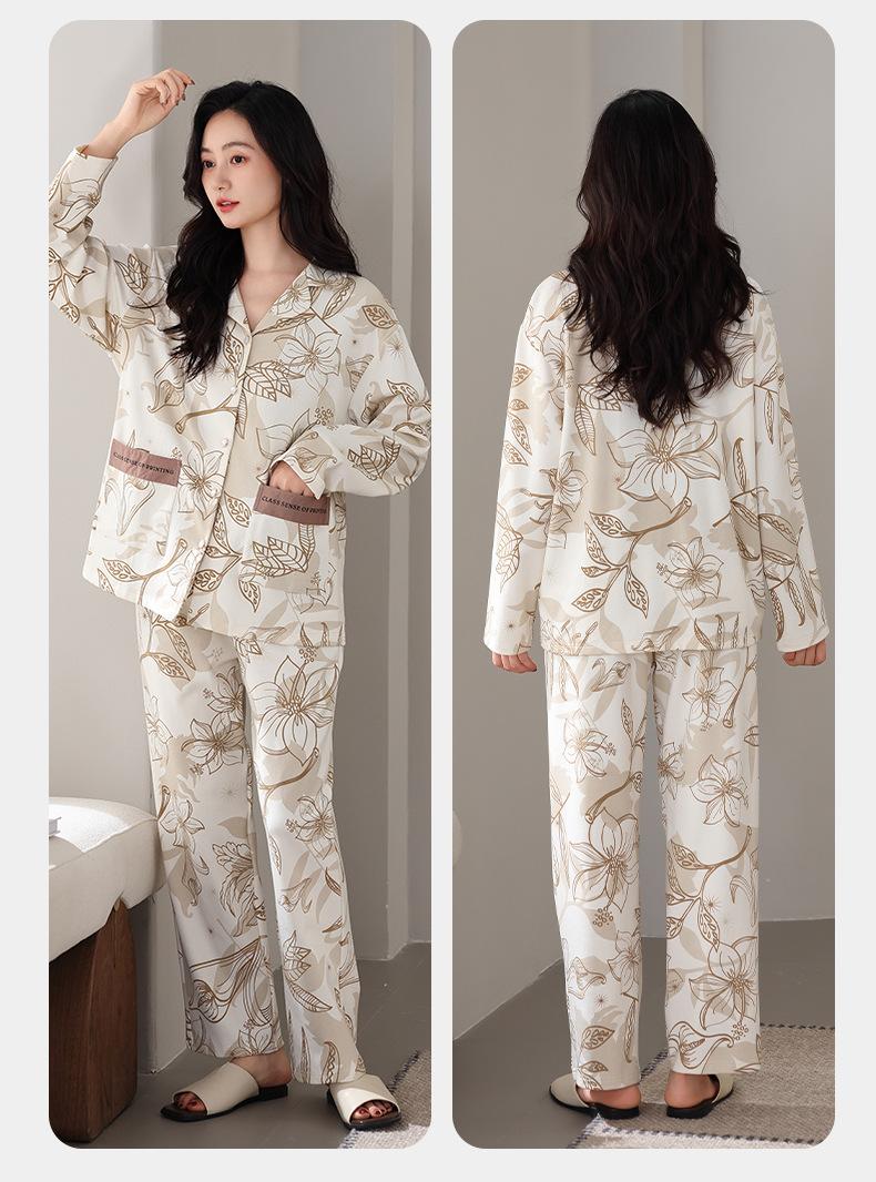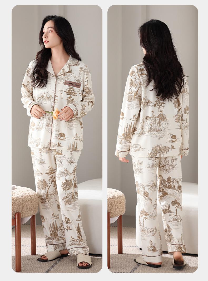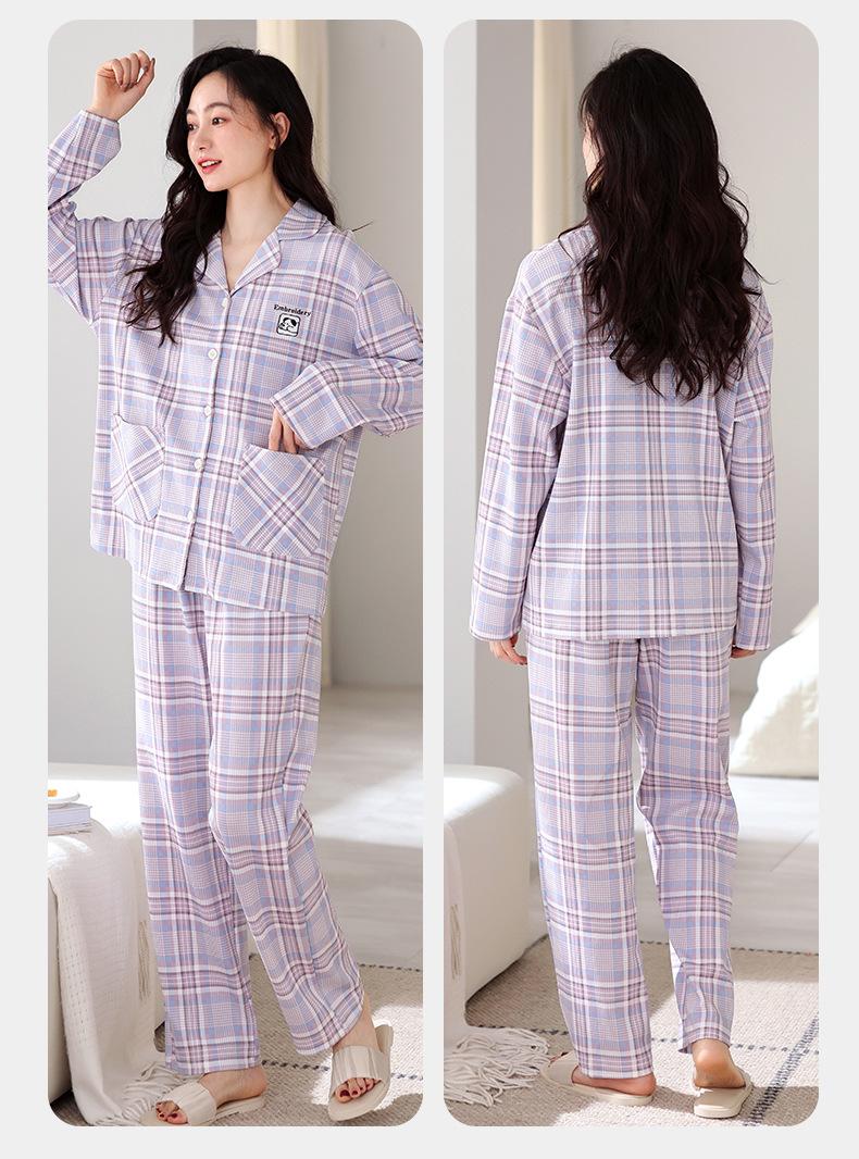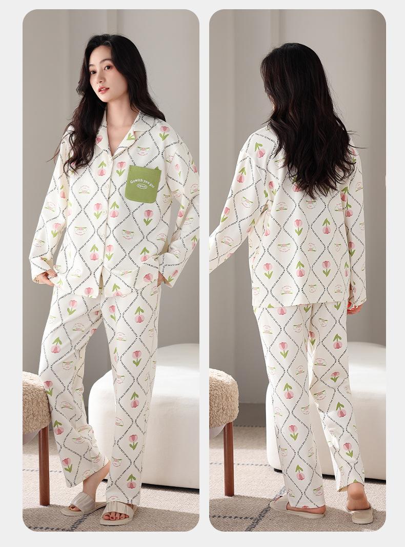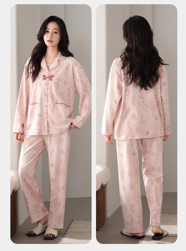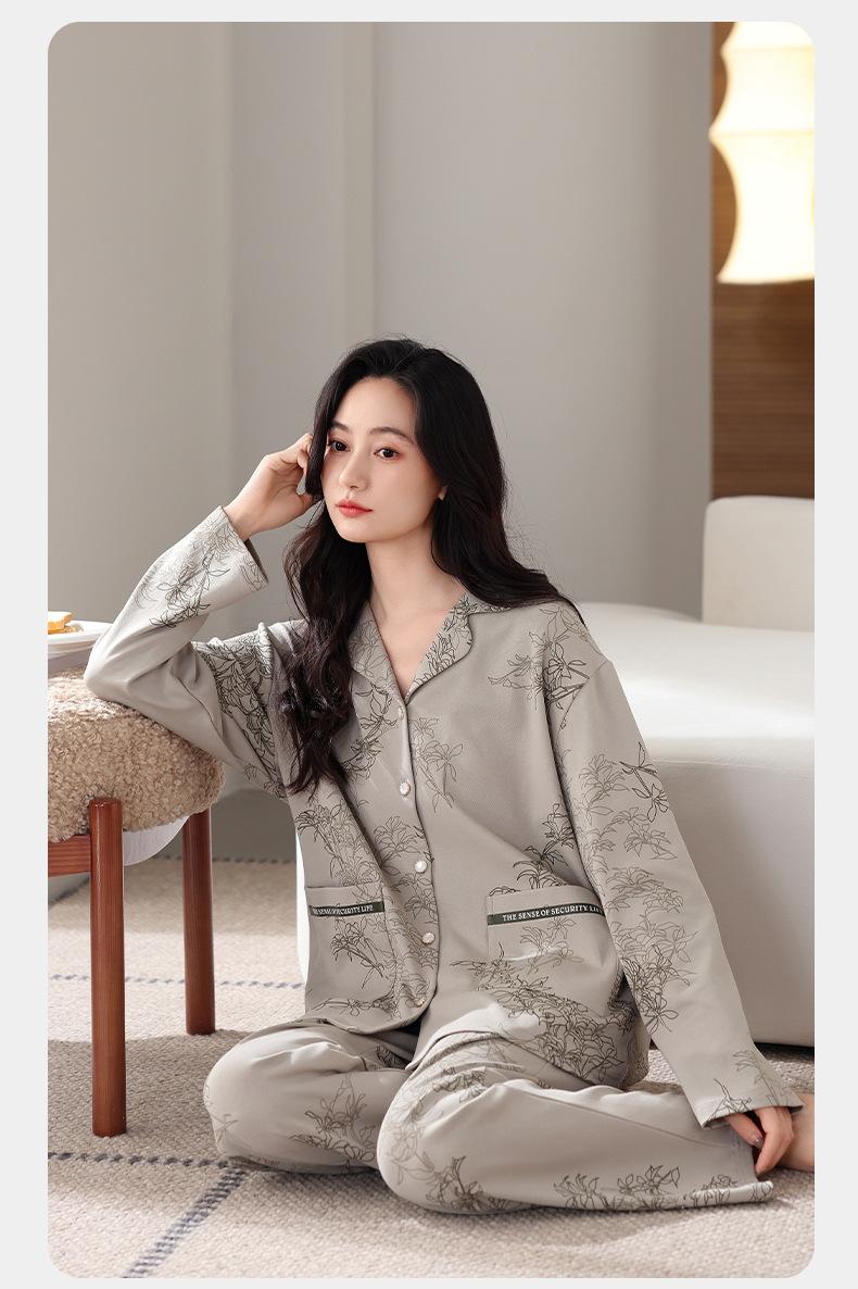 Pijamas antibacterianos 7A para mujer, primavera y otoño, algodón puro, fino, de manga larga, ropa de aire acondicionado para mamás, ropa de hogar de mediana edad, traje de otoño de talla grande