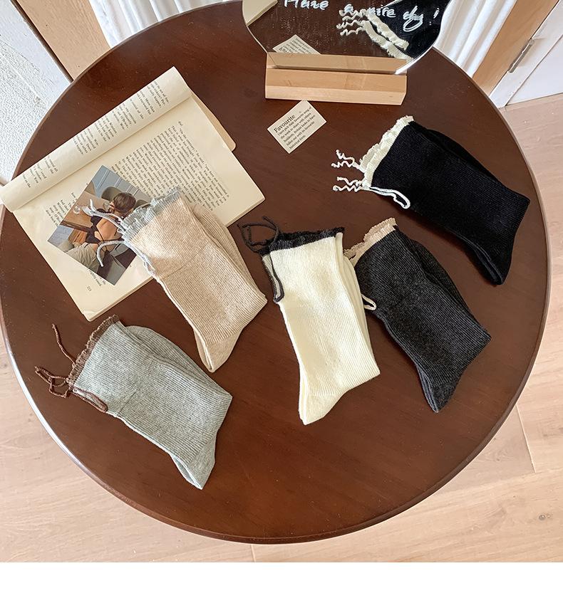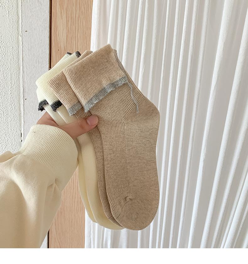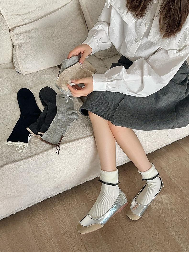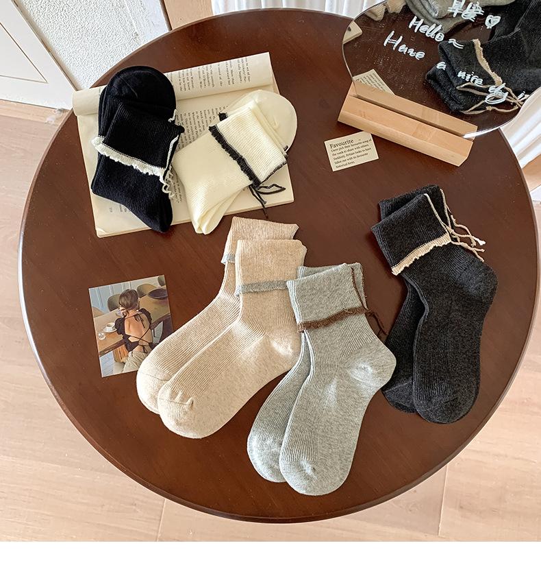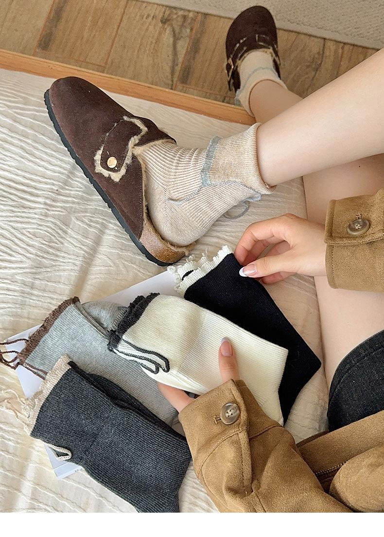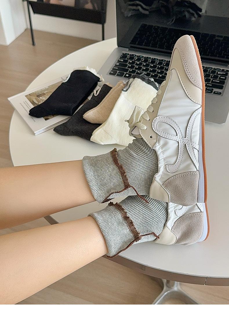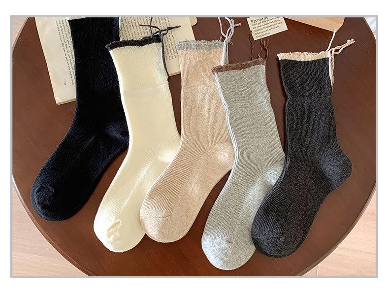 Otoño e Invierno Calcetines de Mujer Dulces de Algodón Dividido con Solapa Whare y Borde Plegable Estilo Japonés de Media Caña