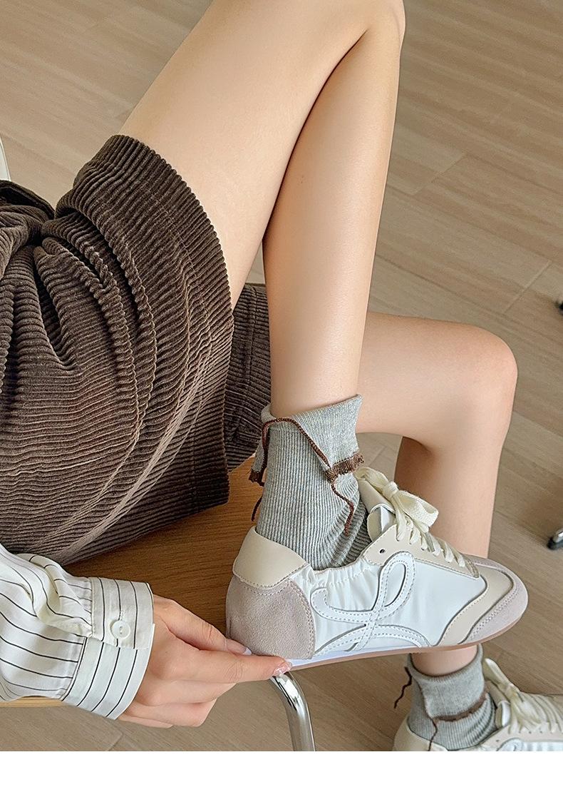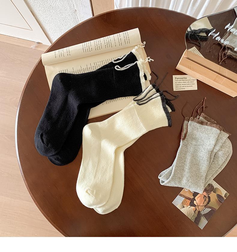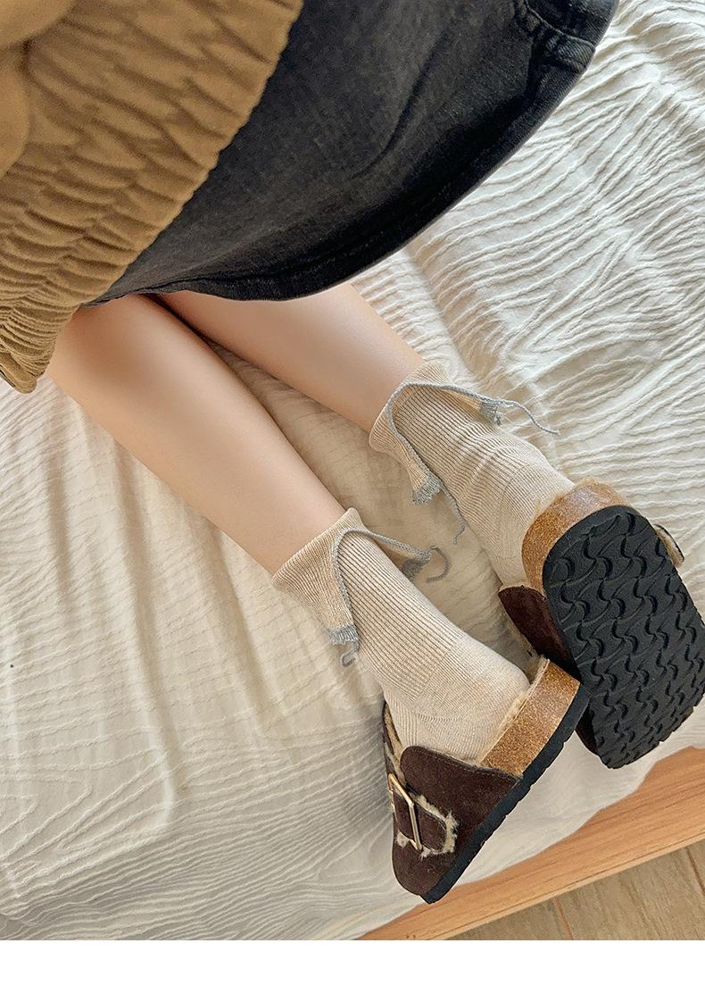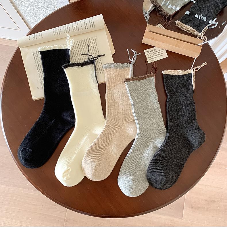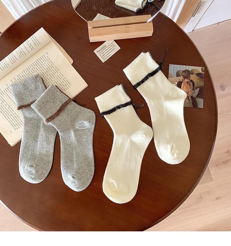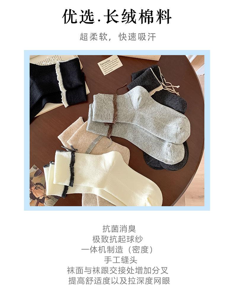Otoño e Invierno Calcetines de Mujer Dulces de Algodón Dividido con Solapa Whare y Borde Plegable Estilo Japonés de Media Caña
