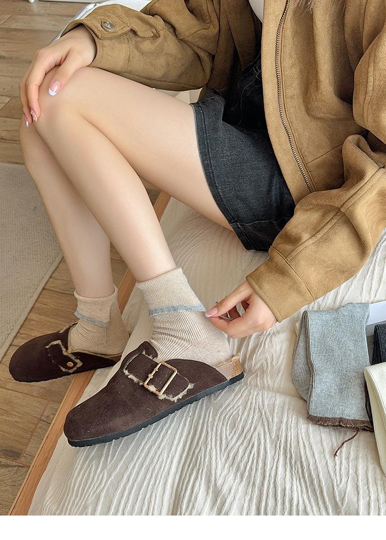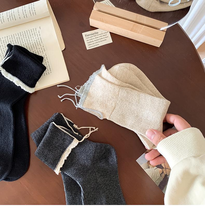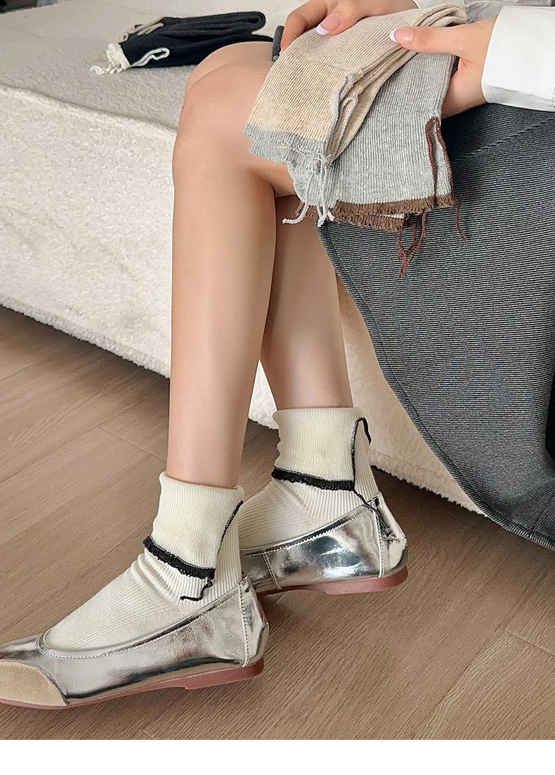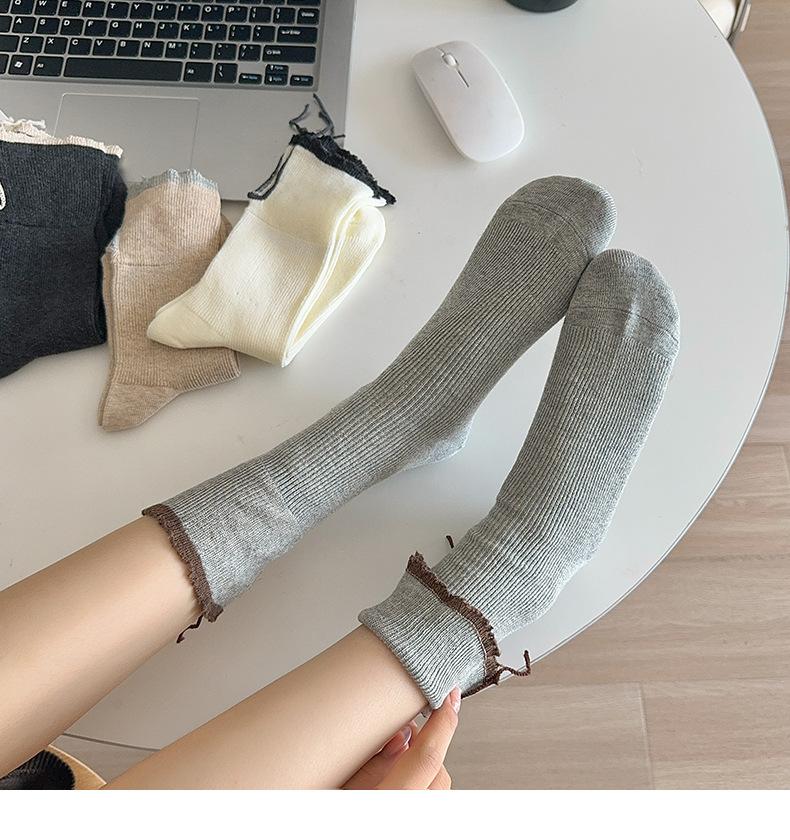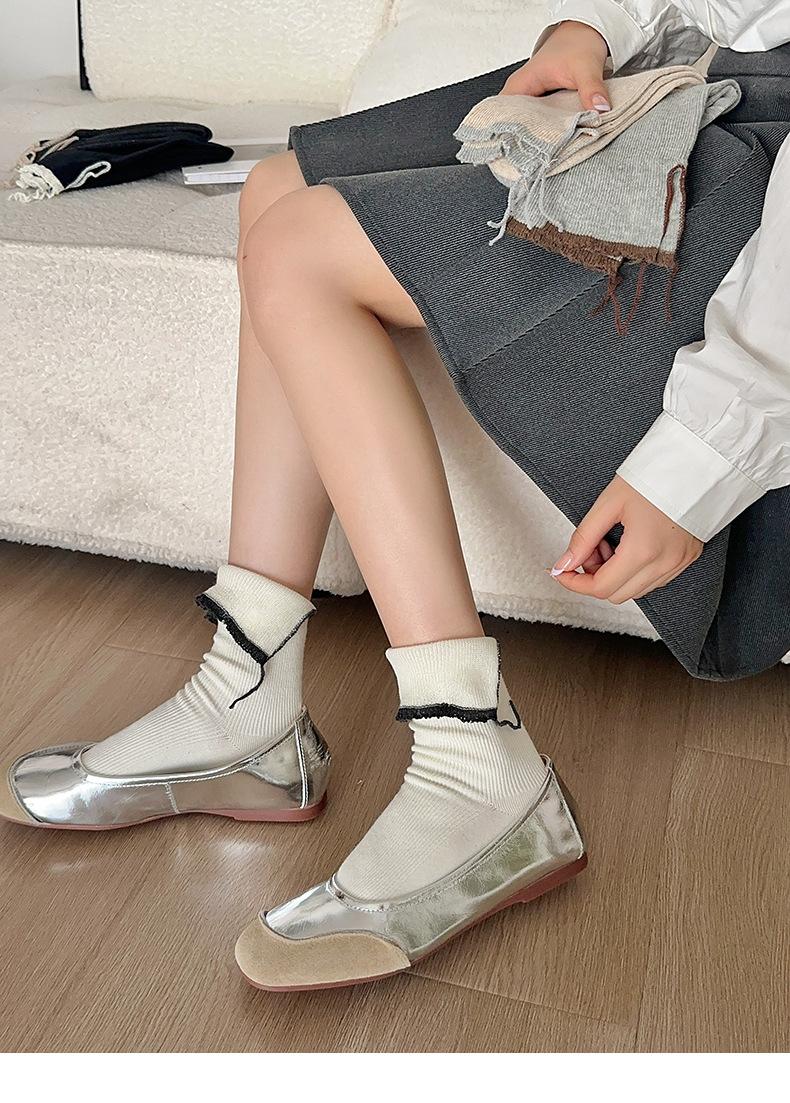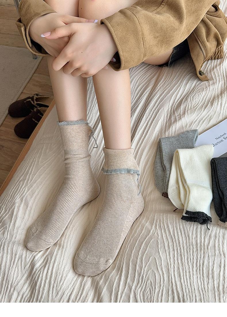 Otoño e Invierno Calcetines de Mujer Dulces de Algodón Dividido con Solapa Whare y Borde Plegable Estilo Japonés de Media Caña