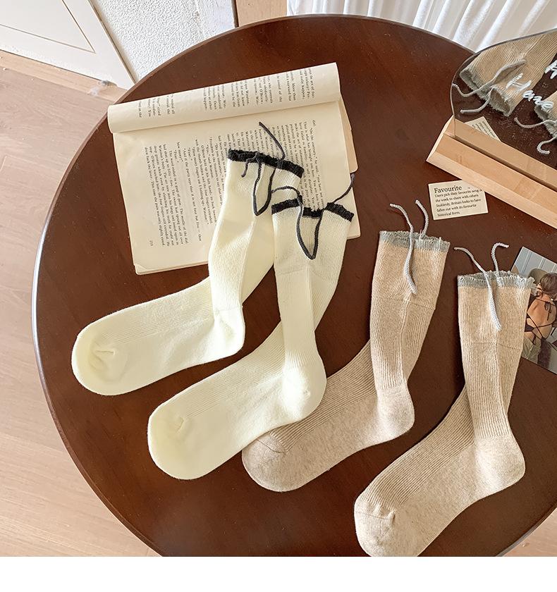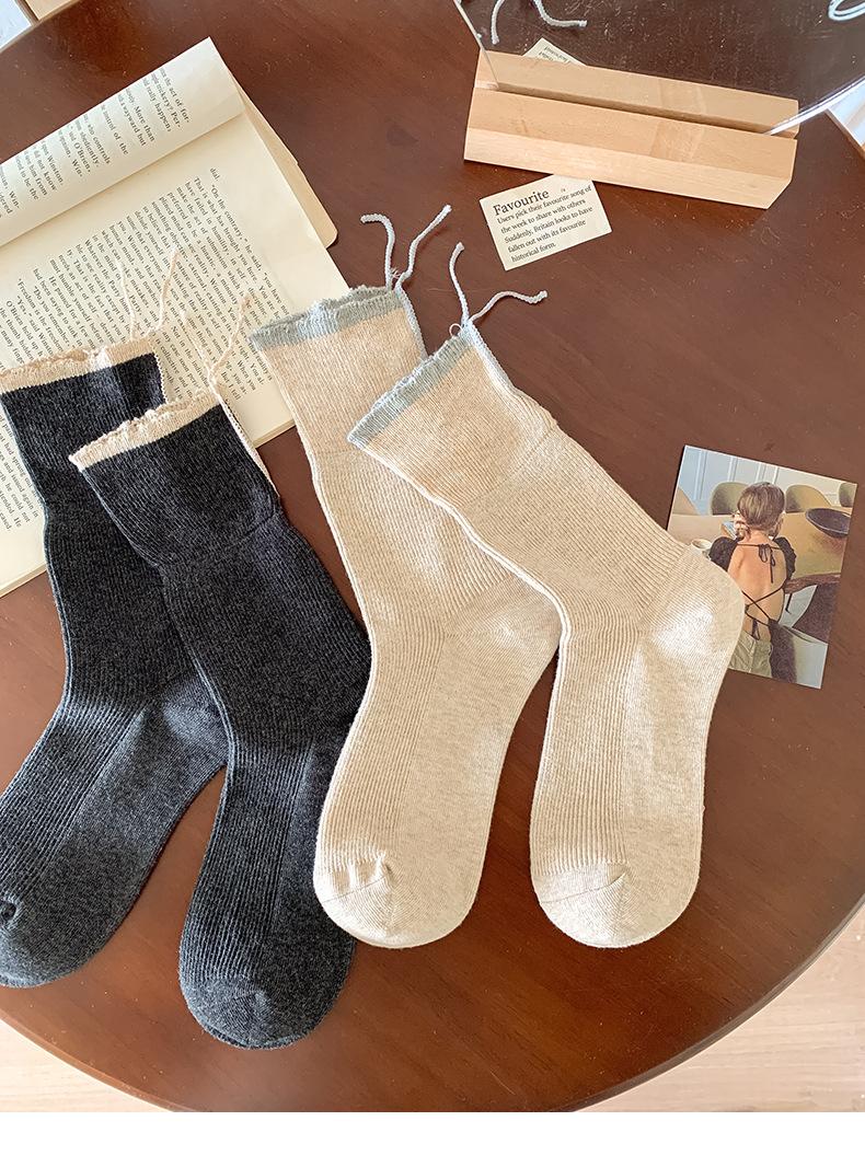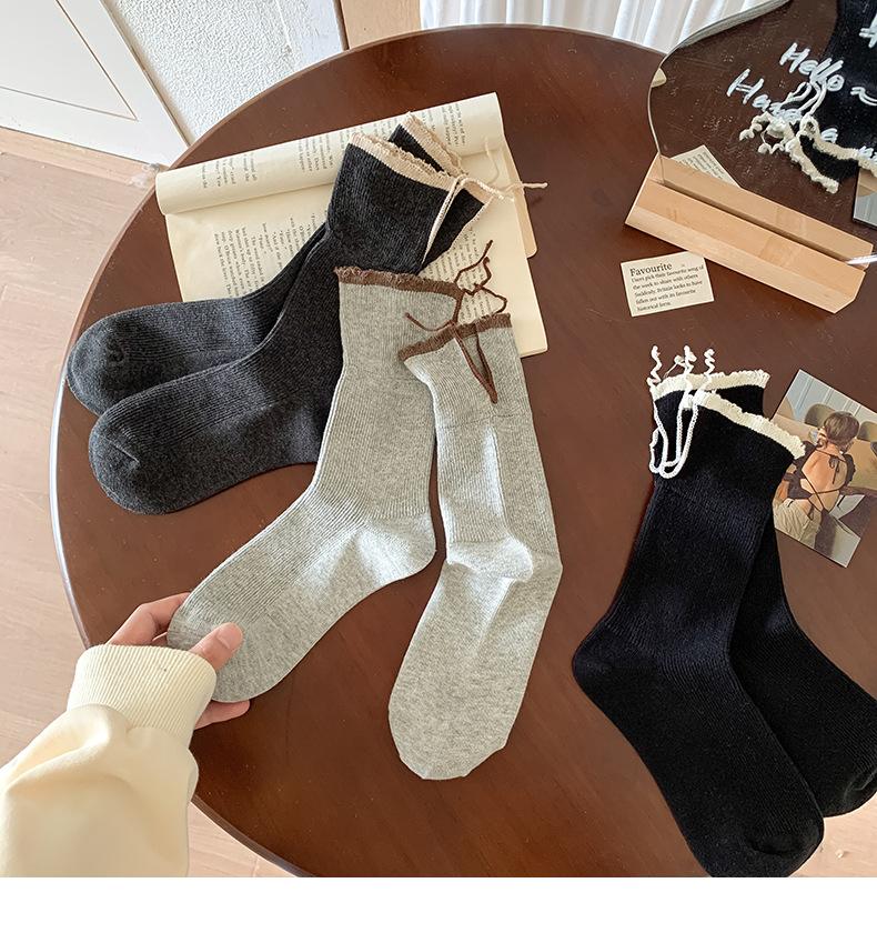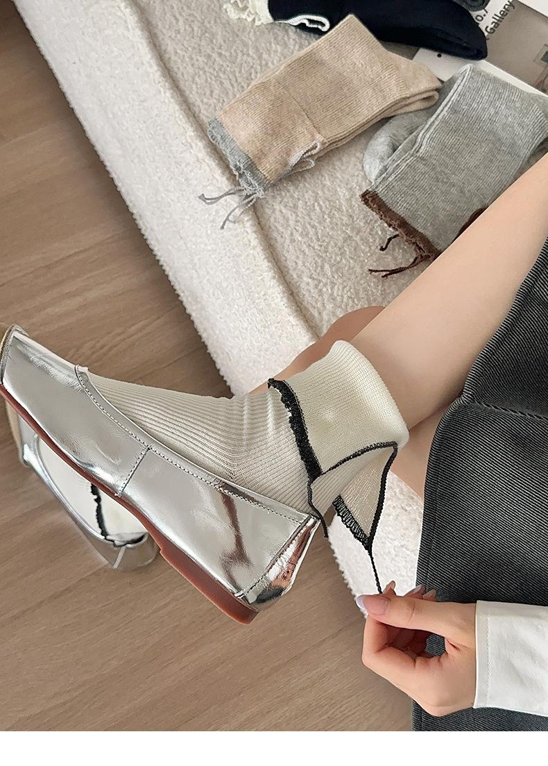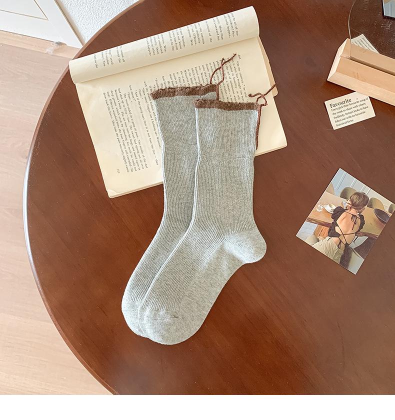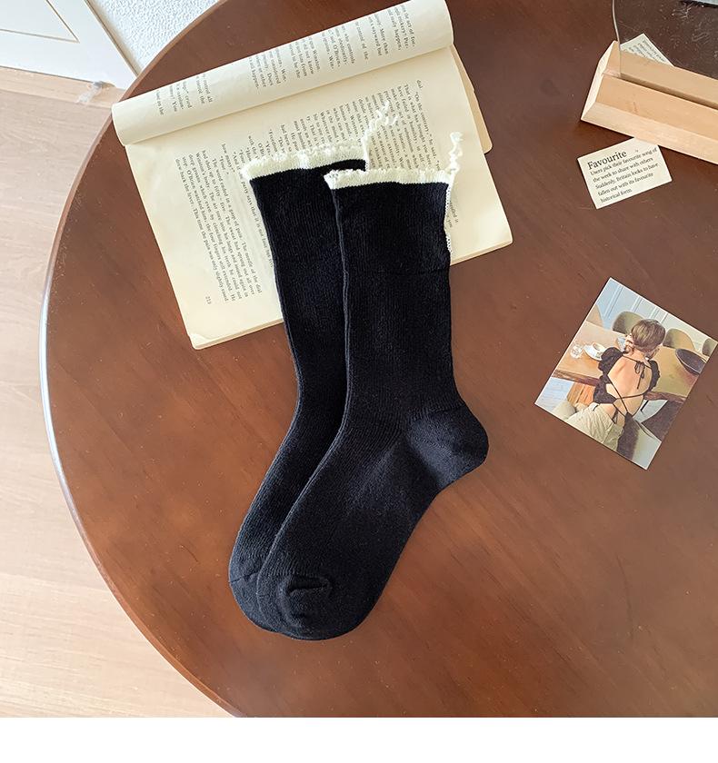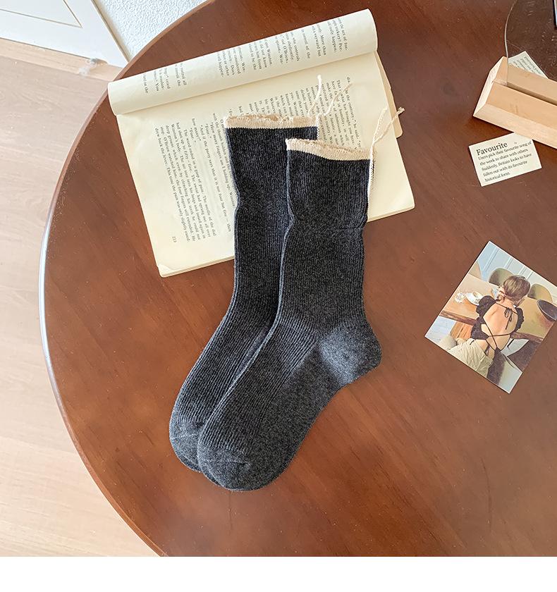 Otoño e Invierno Calcetines de Mujer Dulces de Algodón Dividido con Solapa Whare y Borde Plegable Estilo Japonés de Media Caña
