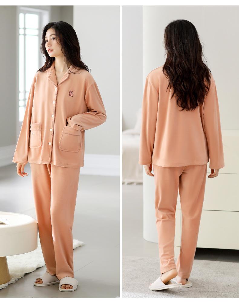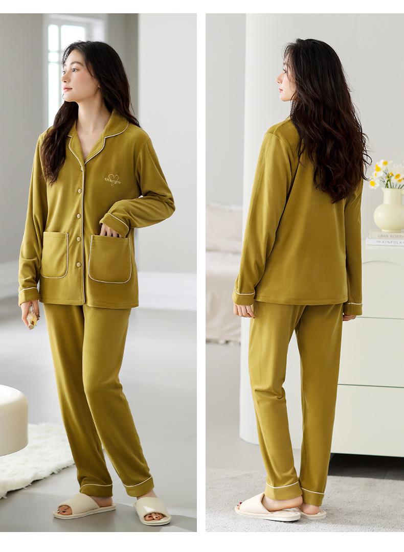 Pijama de terciopelo de invierno para mujer, cárdigan grueso de manga larga, traje sencillo, antiestático, informal, cálido, ropa de hogar para mujer
