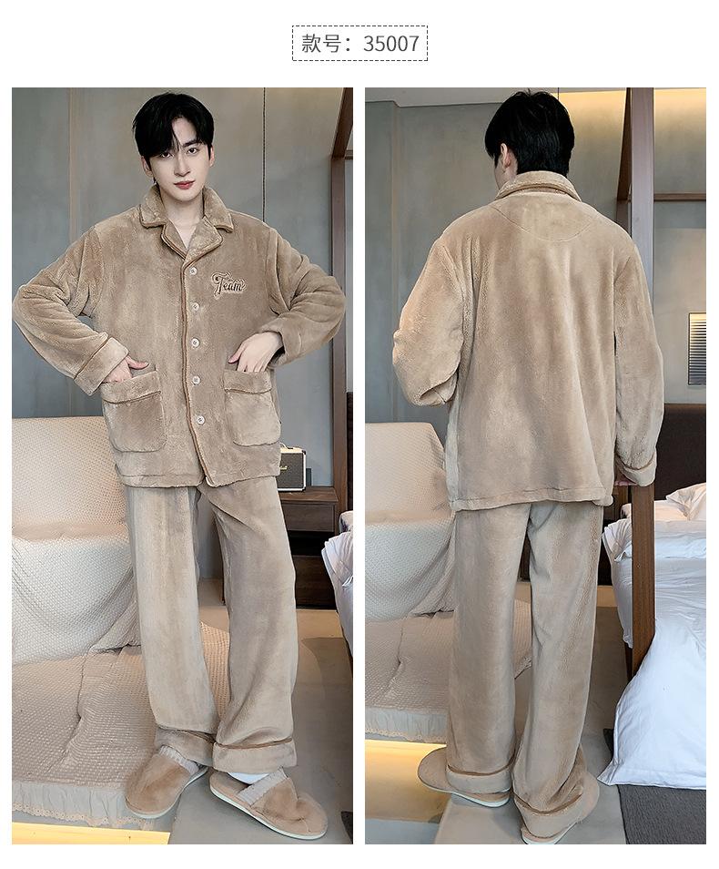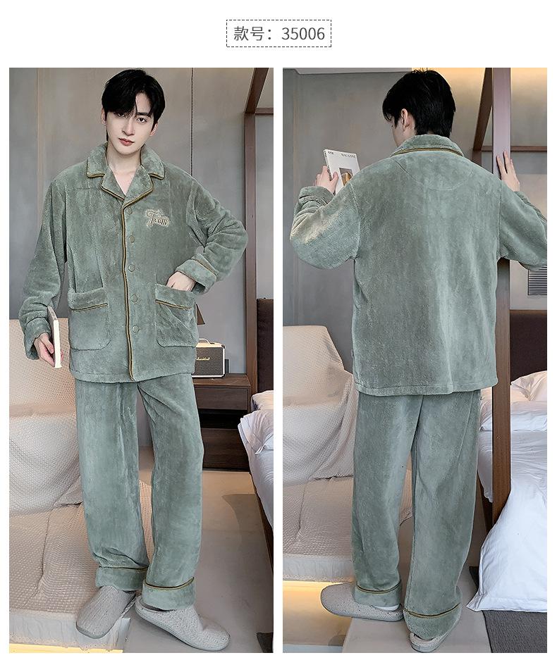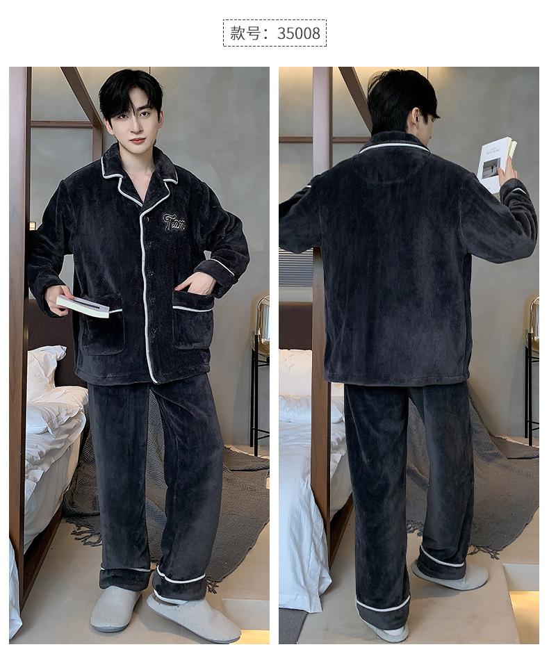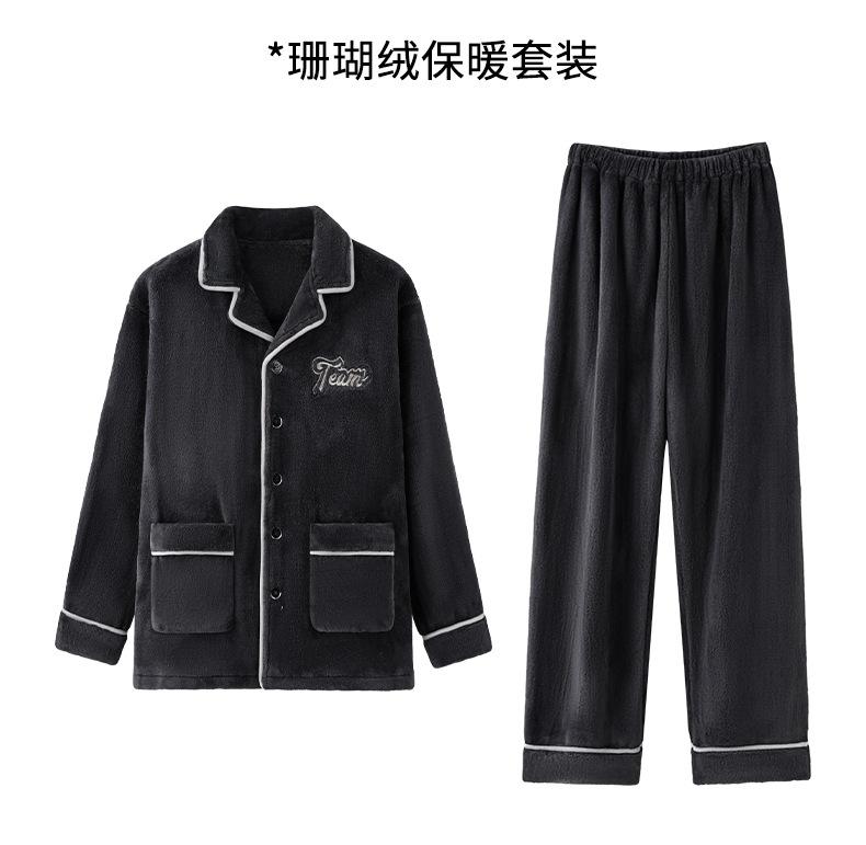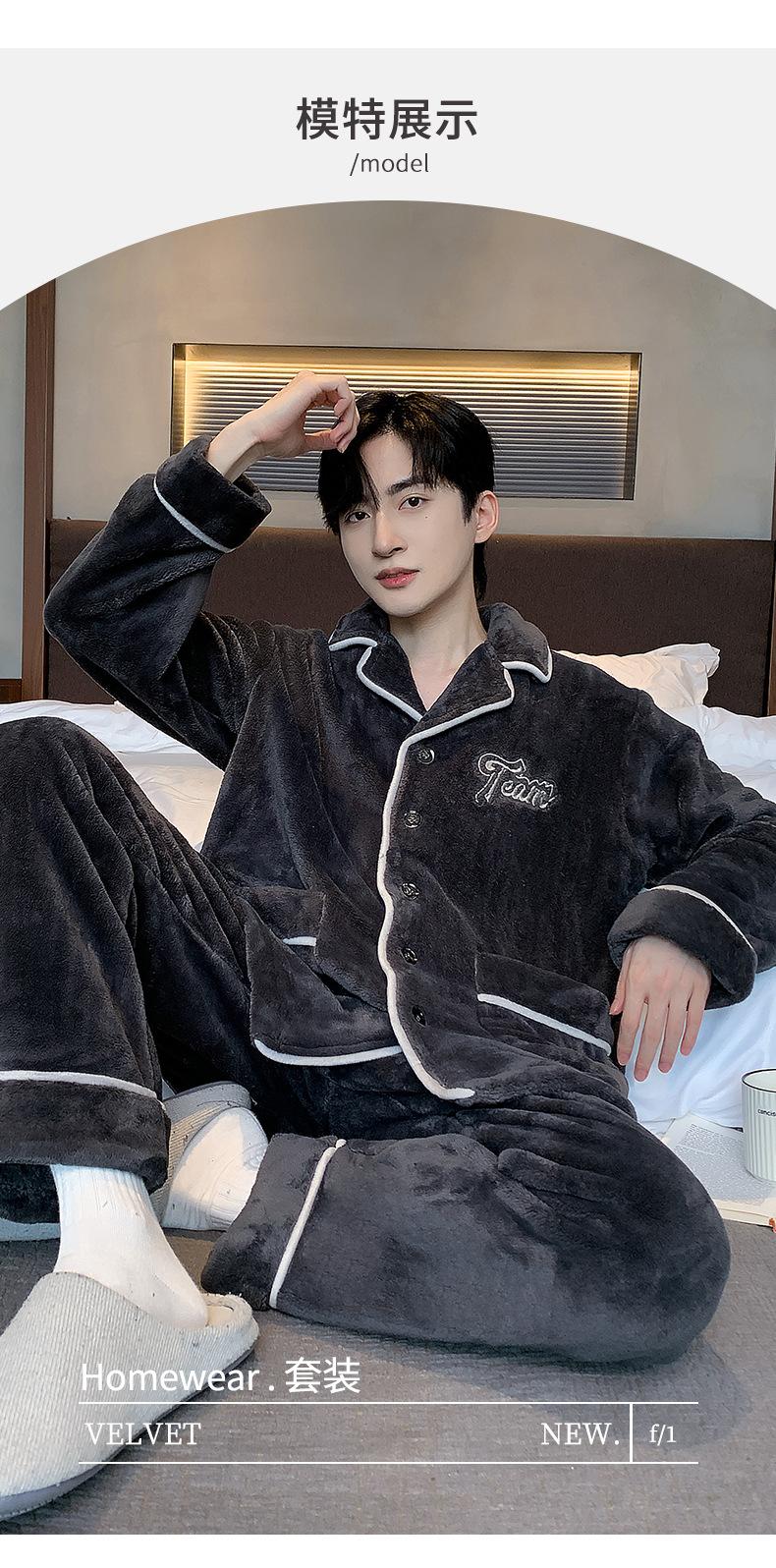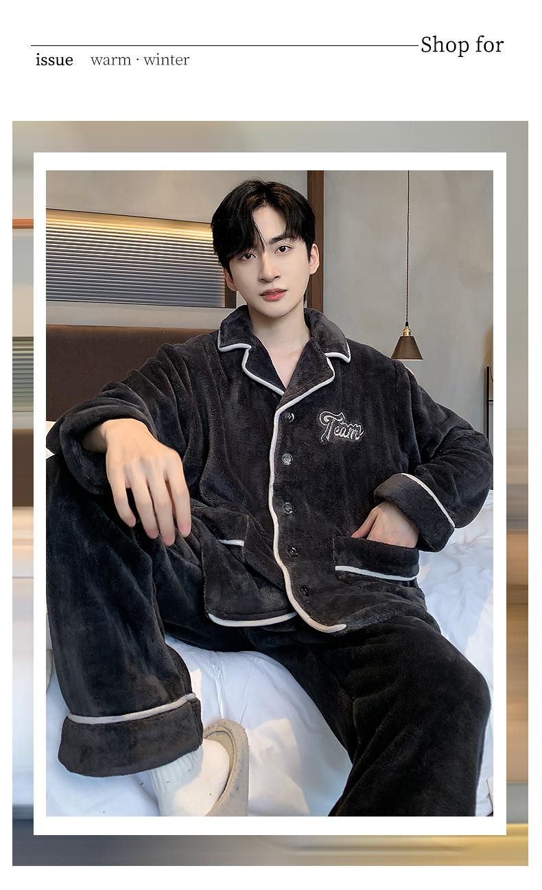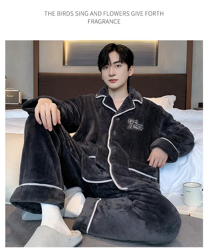 Pijamas para hombre, otoño e invierno, forro polar coral, grueso, cálido, talla extra grande, suelto, exterior, estilo simple, ropa para el hogar.
