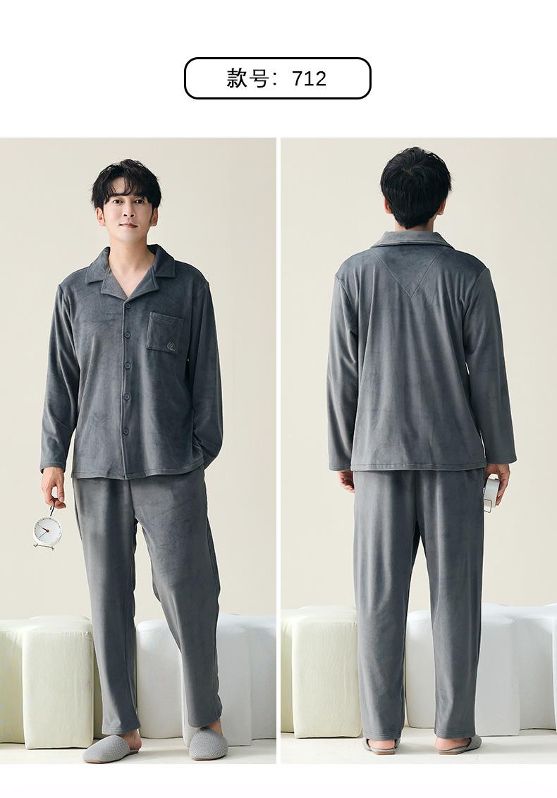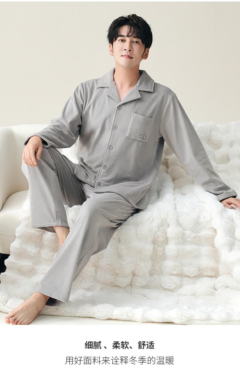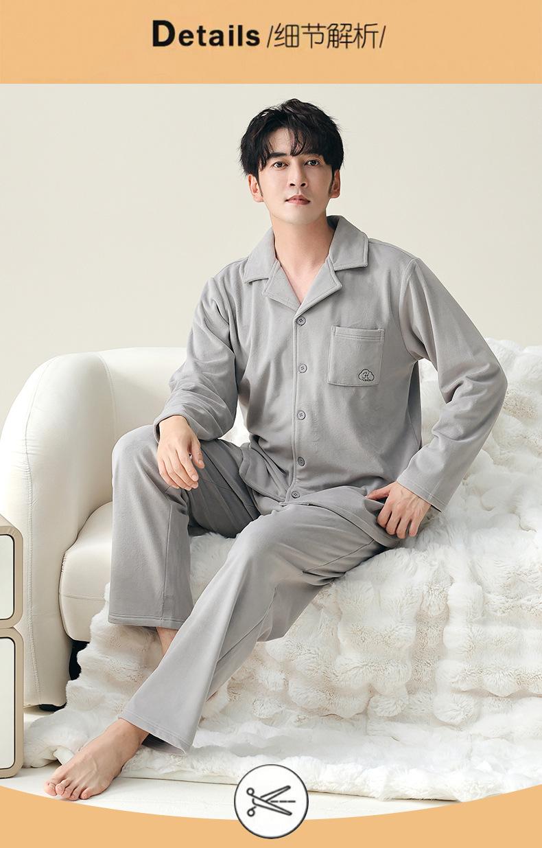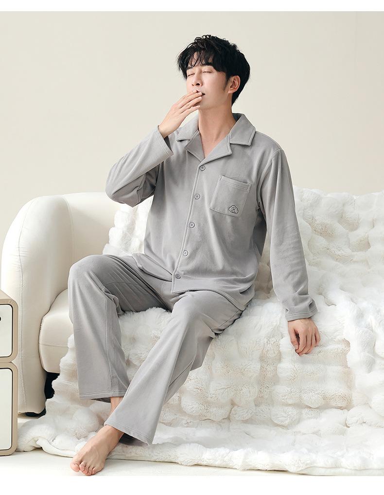 Otoño e invierno nuevos pijamas terciopelo de isla de mar para hombre manga larga forrado de vellón traje cálido ropa casual para el hogar se puede usar invierno