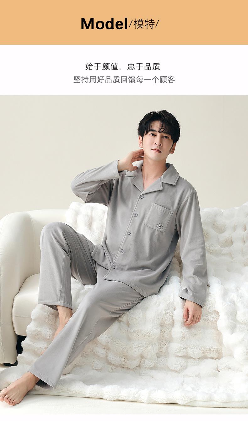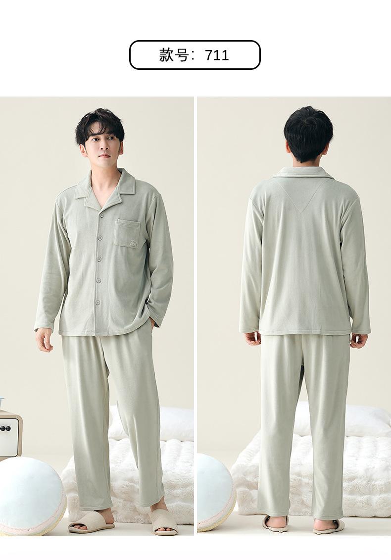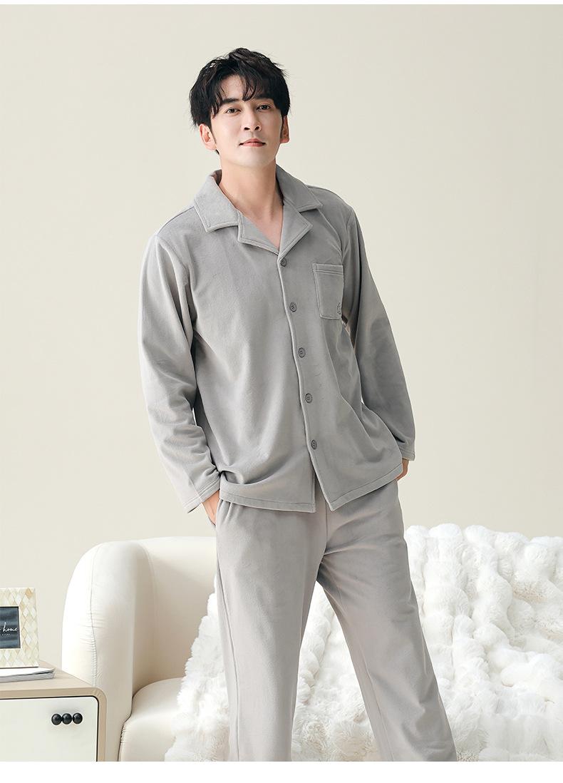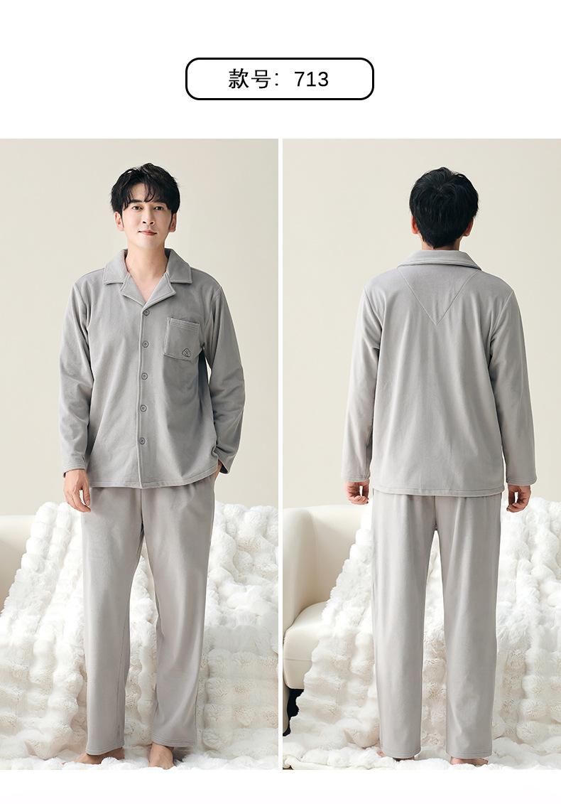 Otoño e invierno nuevos pijamas terciopelo de isla de mar para hombre manga larga forrado de vellón traje cálido ropa casual para el hogar se puede usar invierno