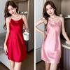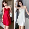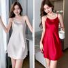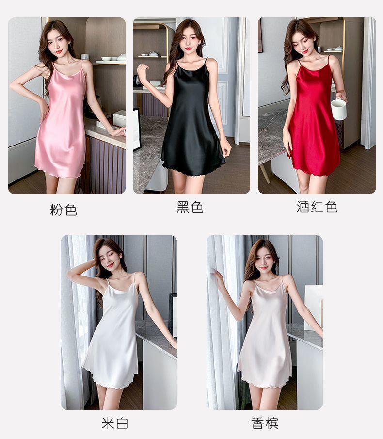 Camisón de seda helada con tirantes de satén de seda, espalda hermosa, sexy, accesible, de lujo, fino, sedoso, pijama para mujer, falda corta suelta y fresca