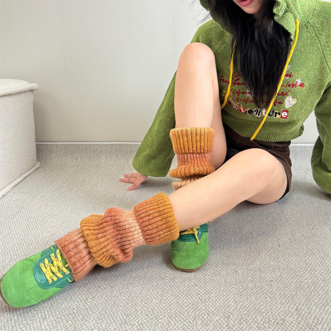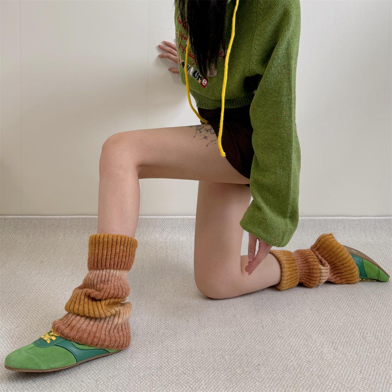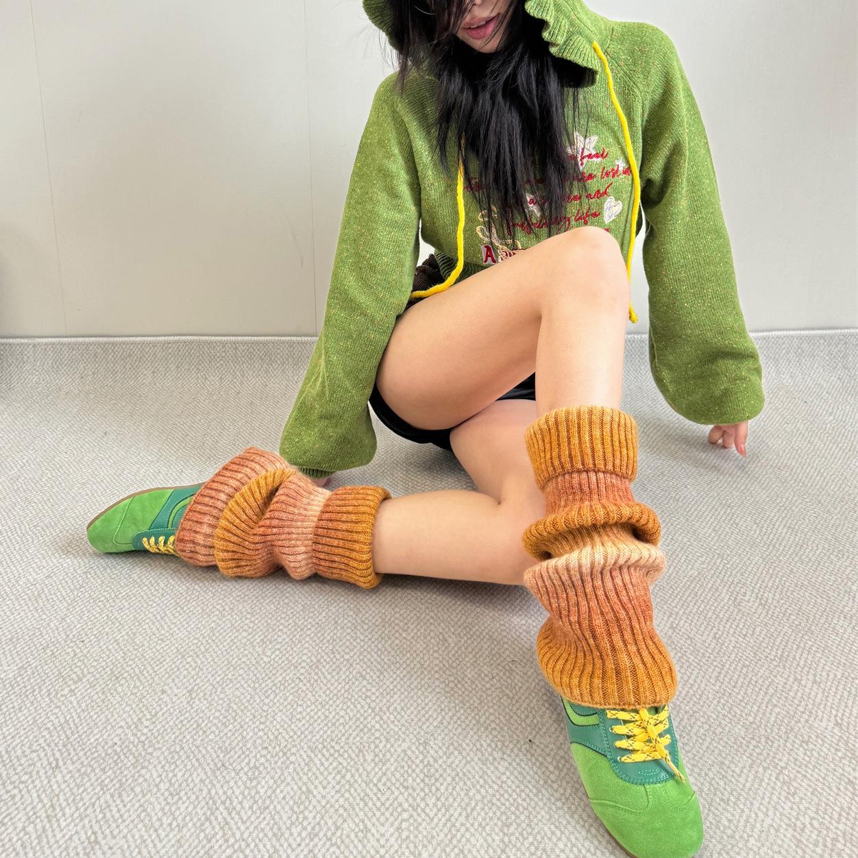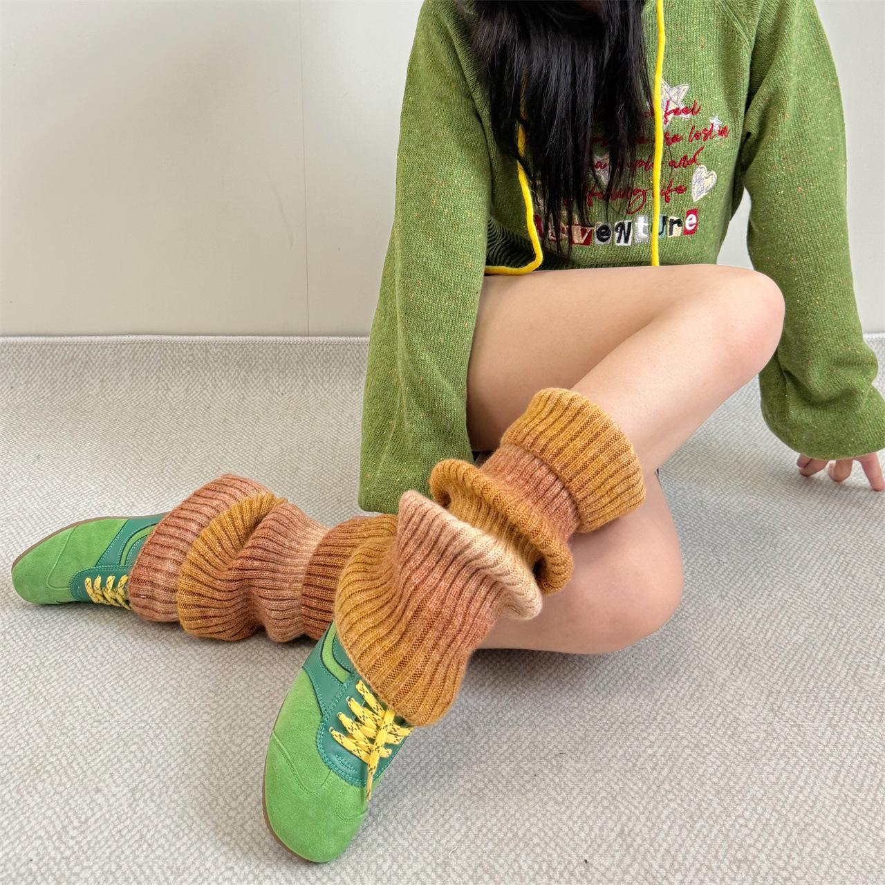 Otoño e Invierno Nueva Moda Contraste Cálido Suave Lana Degradado Cubrepiernas Combinable Dobladillo Adelgazante Pierna Calcetín Apilado Cubre para Mujer