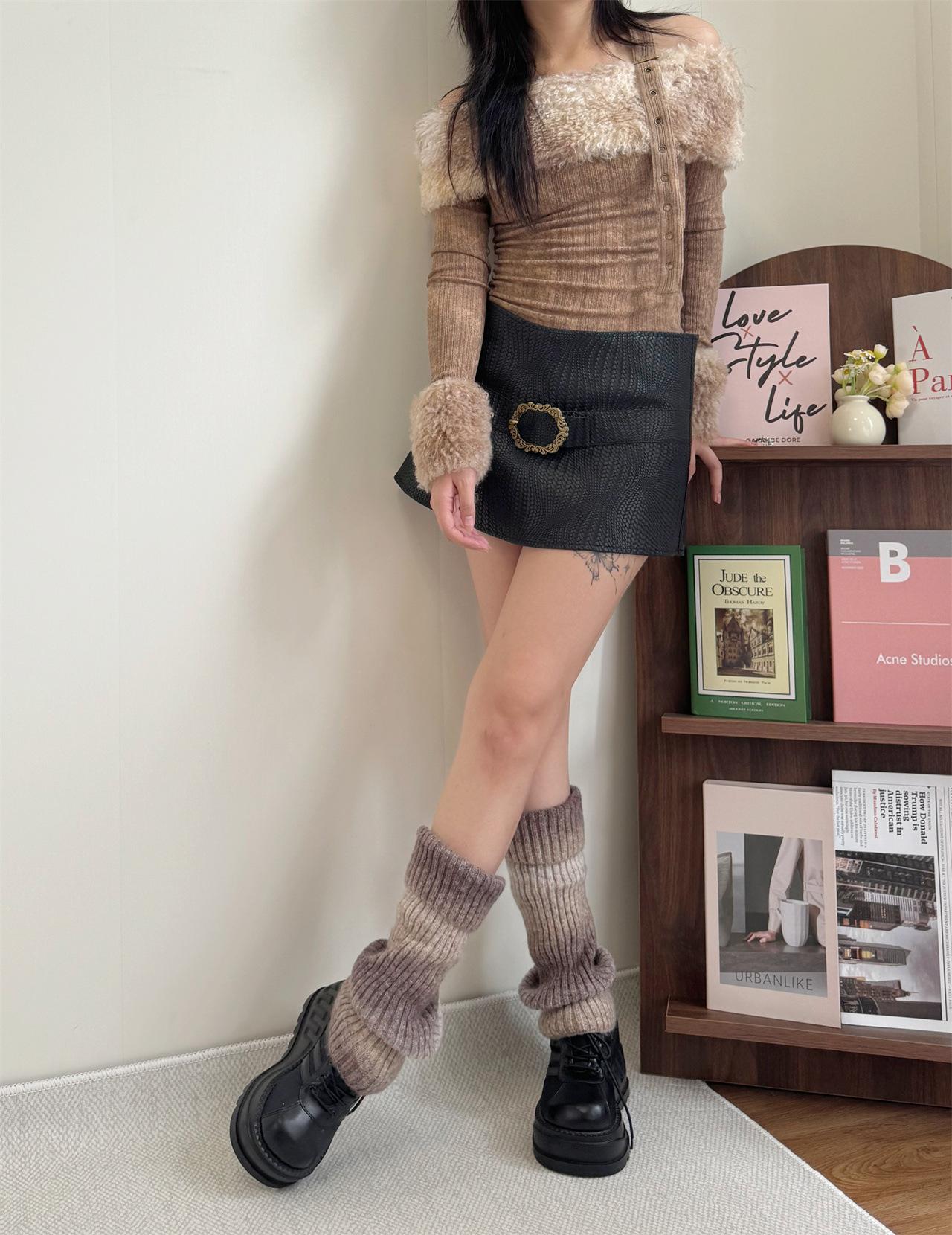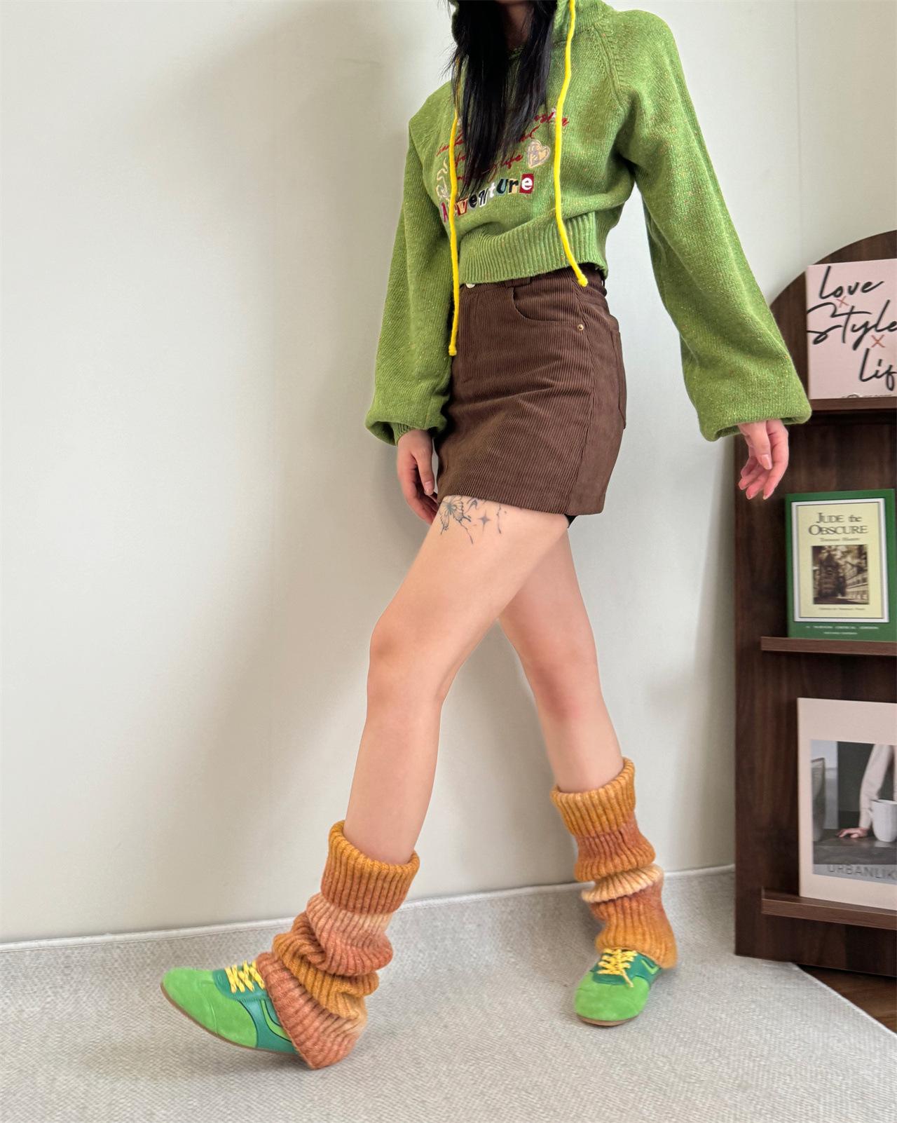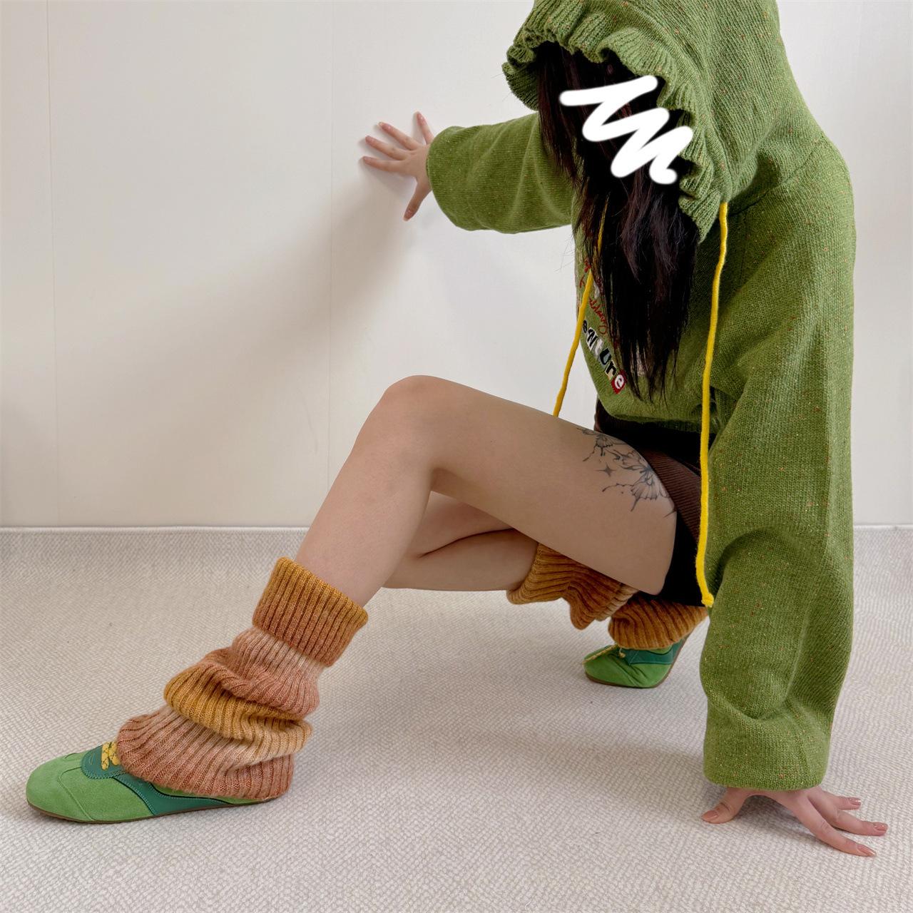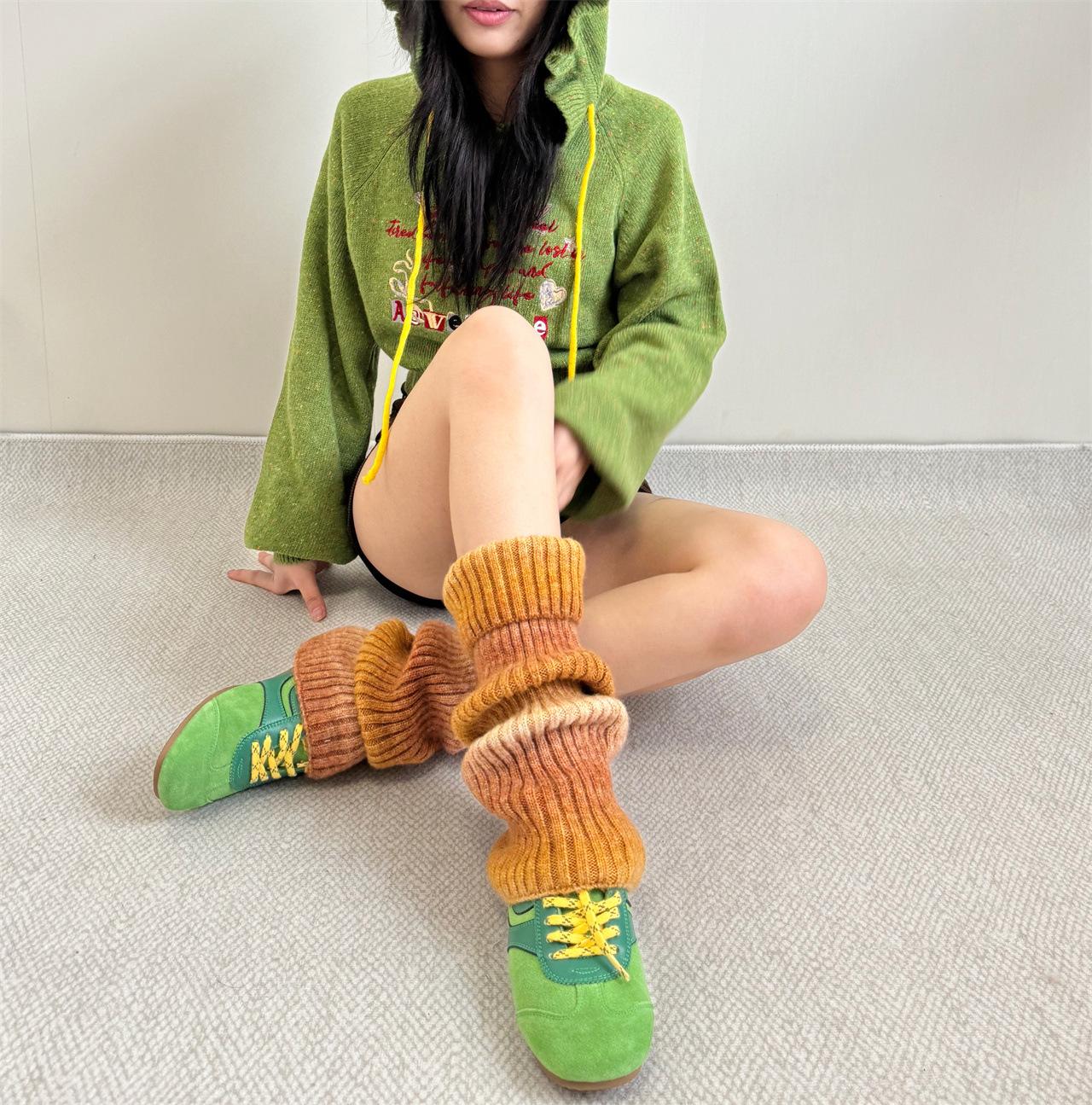 Otoño e Invierno Nueva Moda Contraste Cálido Suave Lana Degradado Cubrepiernas Combinable Dobladillo Adelgazante Pierna Calcetín Apilado Cubre para Mujer