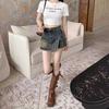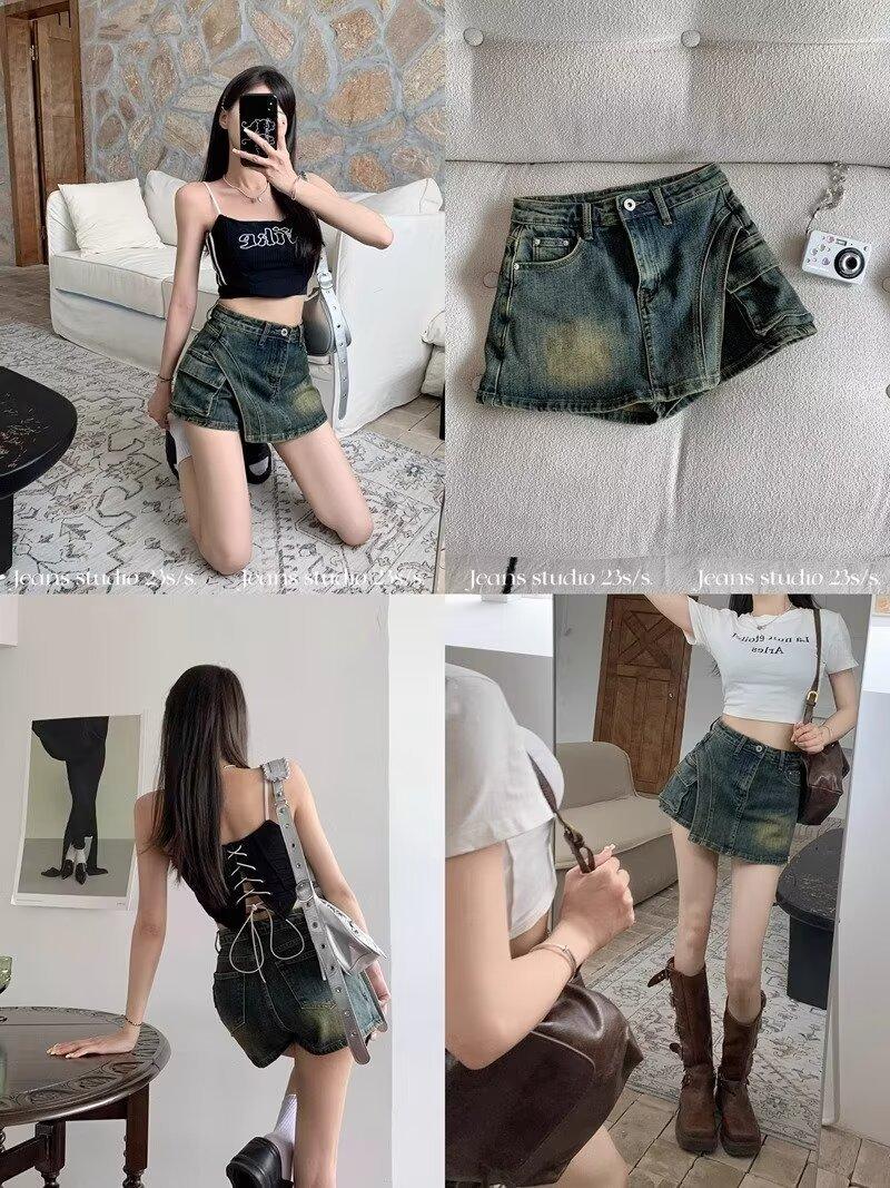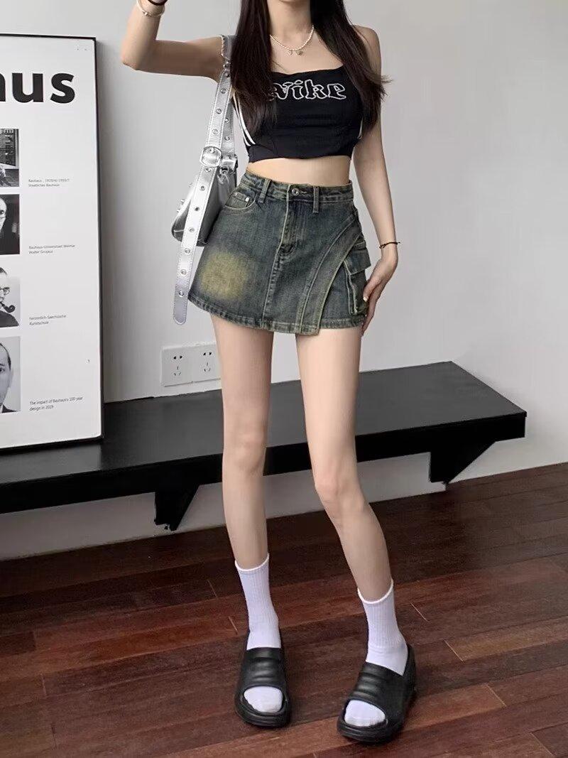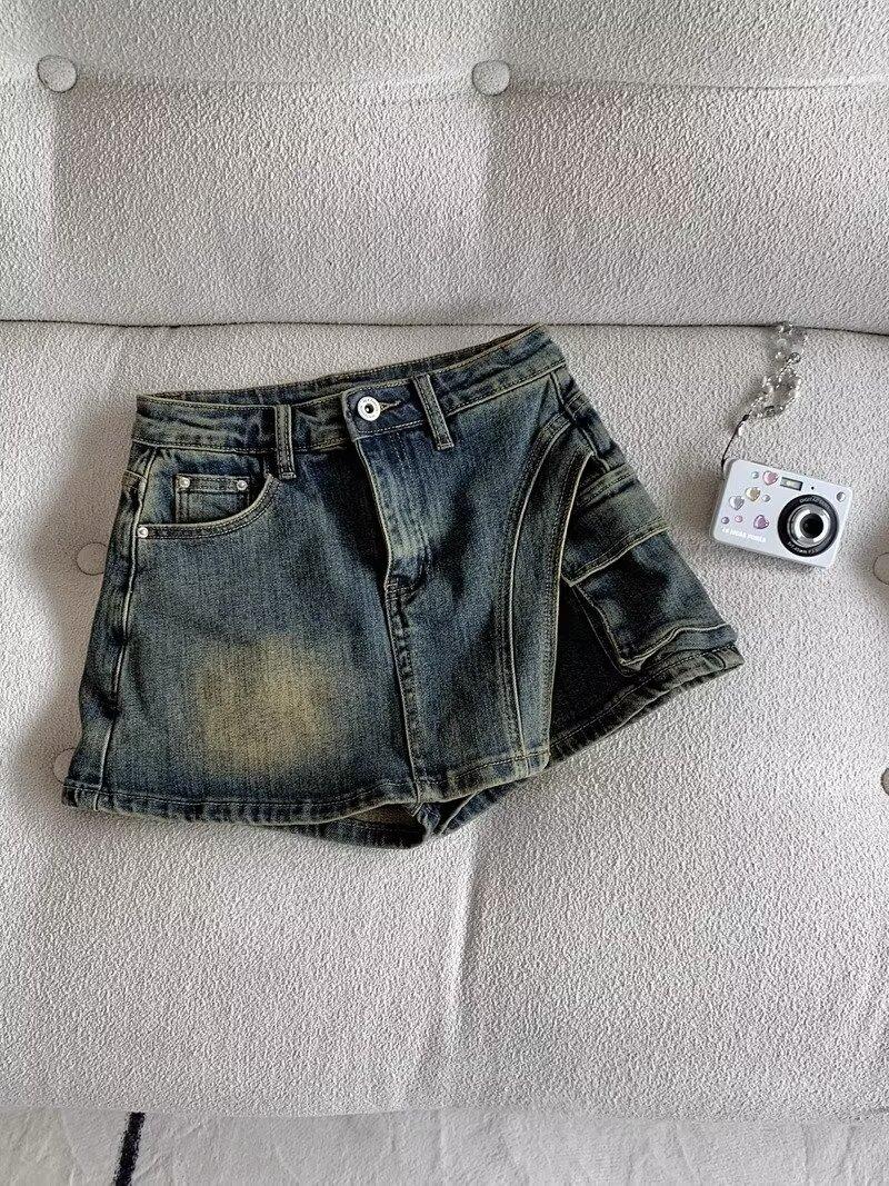 Falda corta de mezclilla de cintura alta irregular con sentido del diseño para mujer, verano nueva, corte ajustado, chica hot, ropa de trabajo, pantalón corto anti-exposición