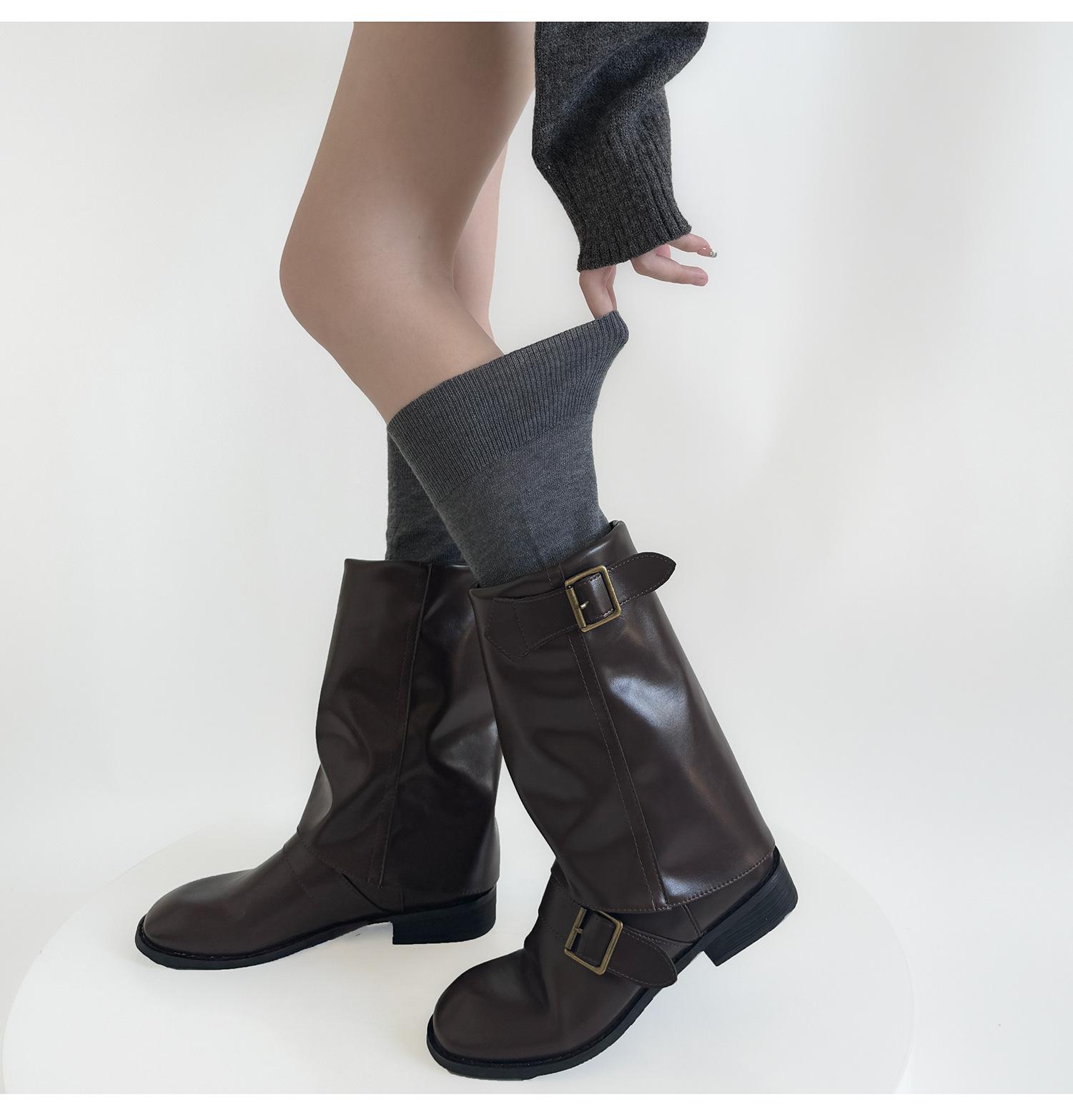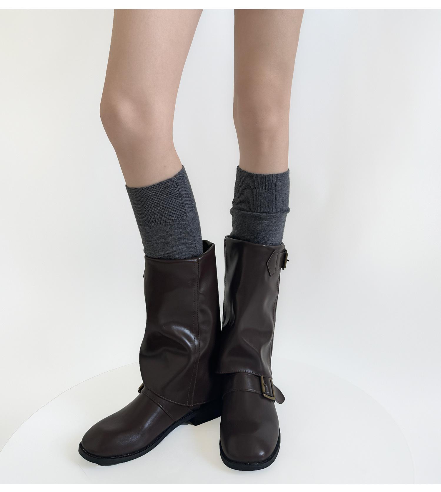 Otoño e Invierno Nuevo Gris Aguja Fina Super Suave Cachemira Cubrepiernas Simple Combinable Estilo Ins Calcetín Apilado Cubrebotas